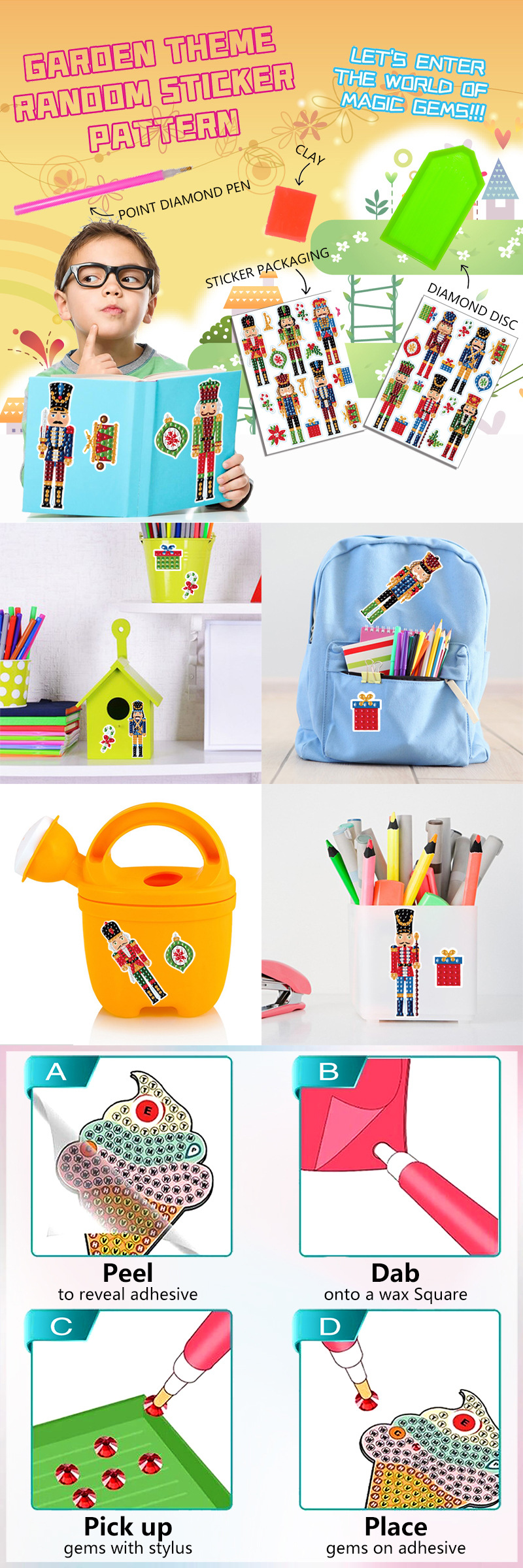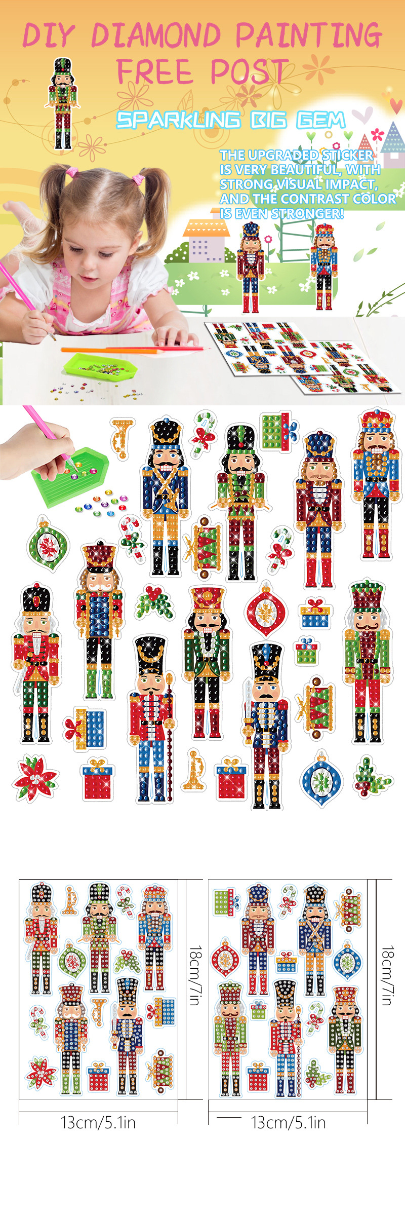 Venta caliente Cascanueces diamante pintura gratis pegatinas DIY pegatinas de pared de ladrillo pegatinas de niños pegatinas hechas a mano decorativo redondo diamante
