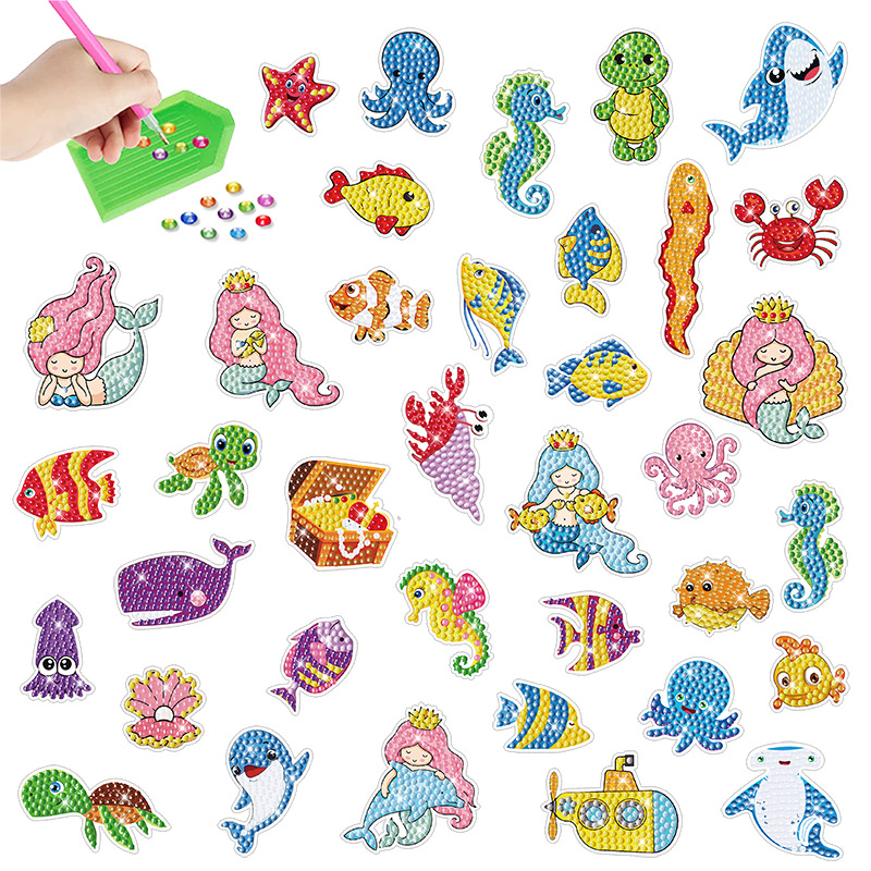 Animal marino diamante pintura gratis pegatinas DIY pintura pegatinas de pared pegatinas hechas a mano de los niños dibujos animados animal redondo diamante pegatinas