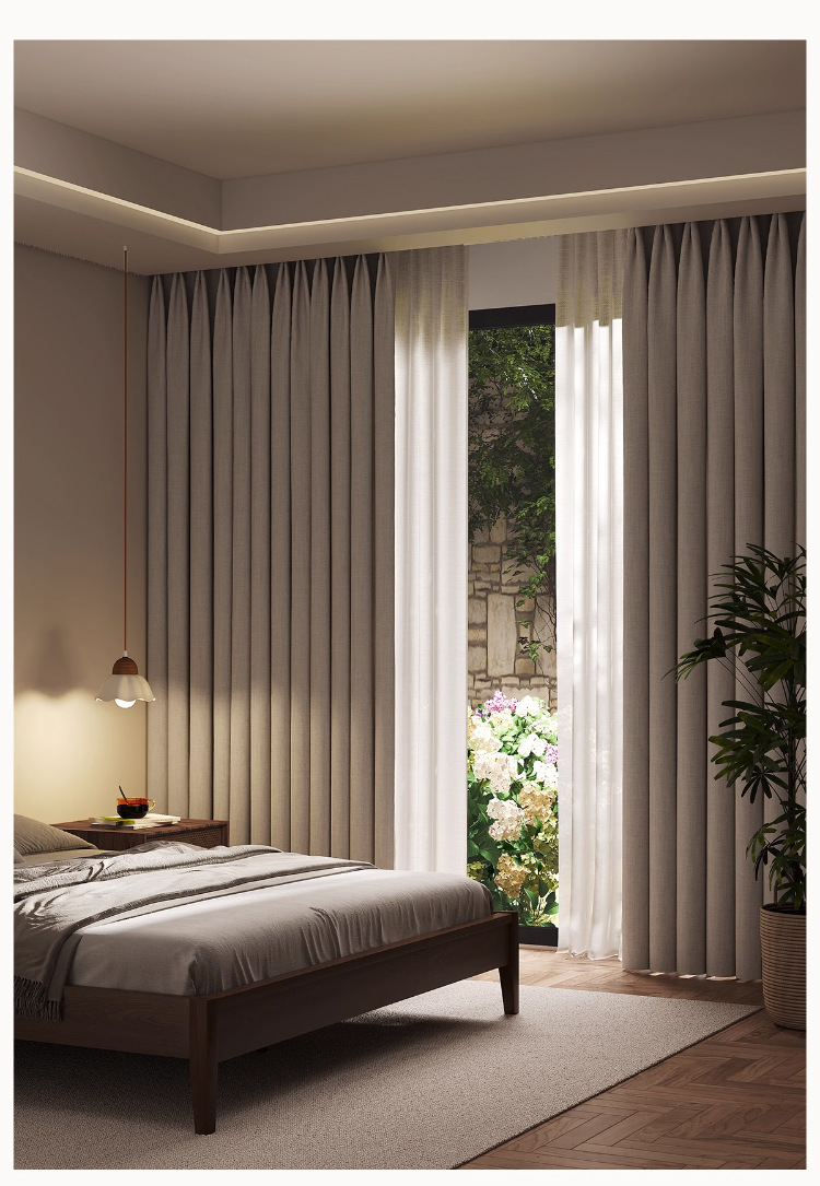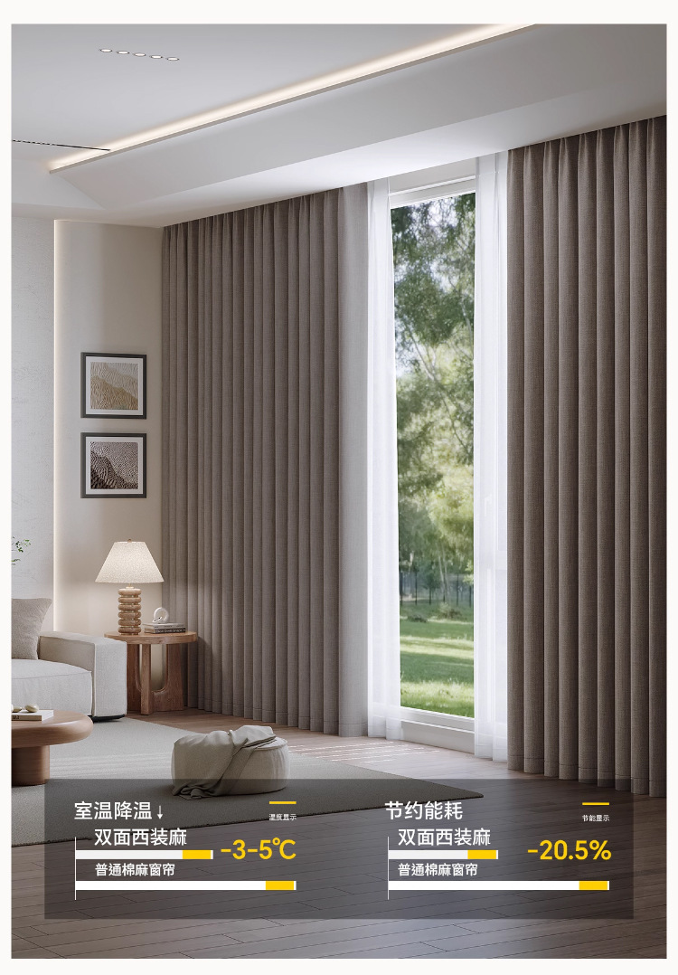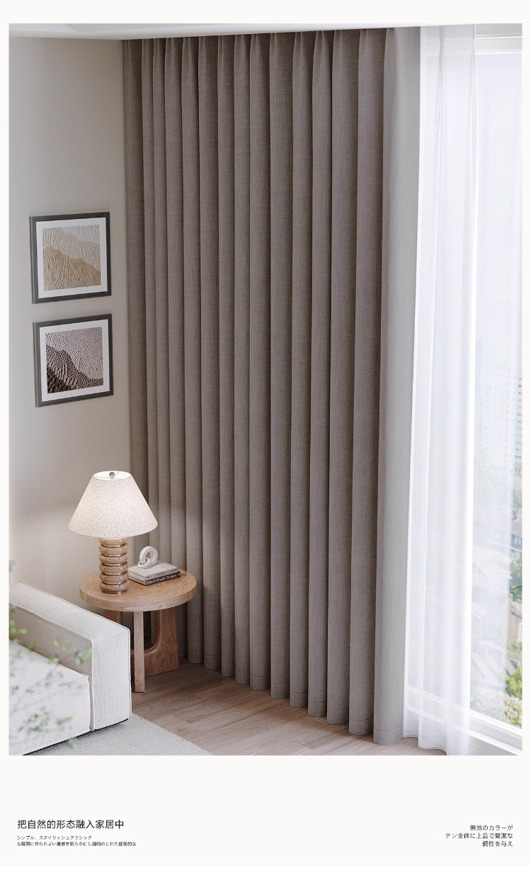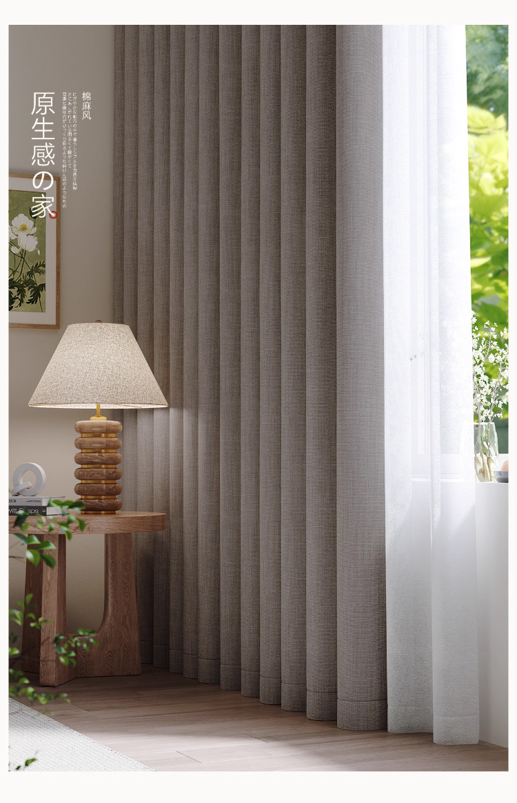 Cortina de algodón y lino de doble color, cortina de sombra completa, cortina de sombra de gancho sin perforación, sala de estar, dormitorio, cortina de sombra de sol de alta calidad, producto terminado