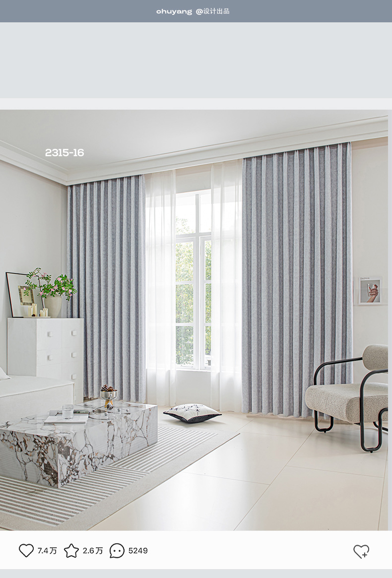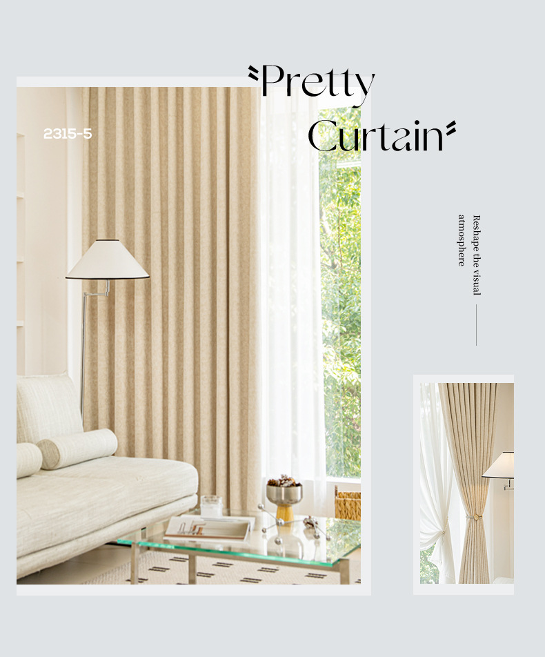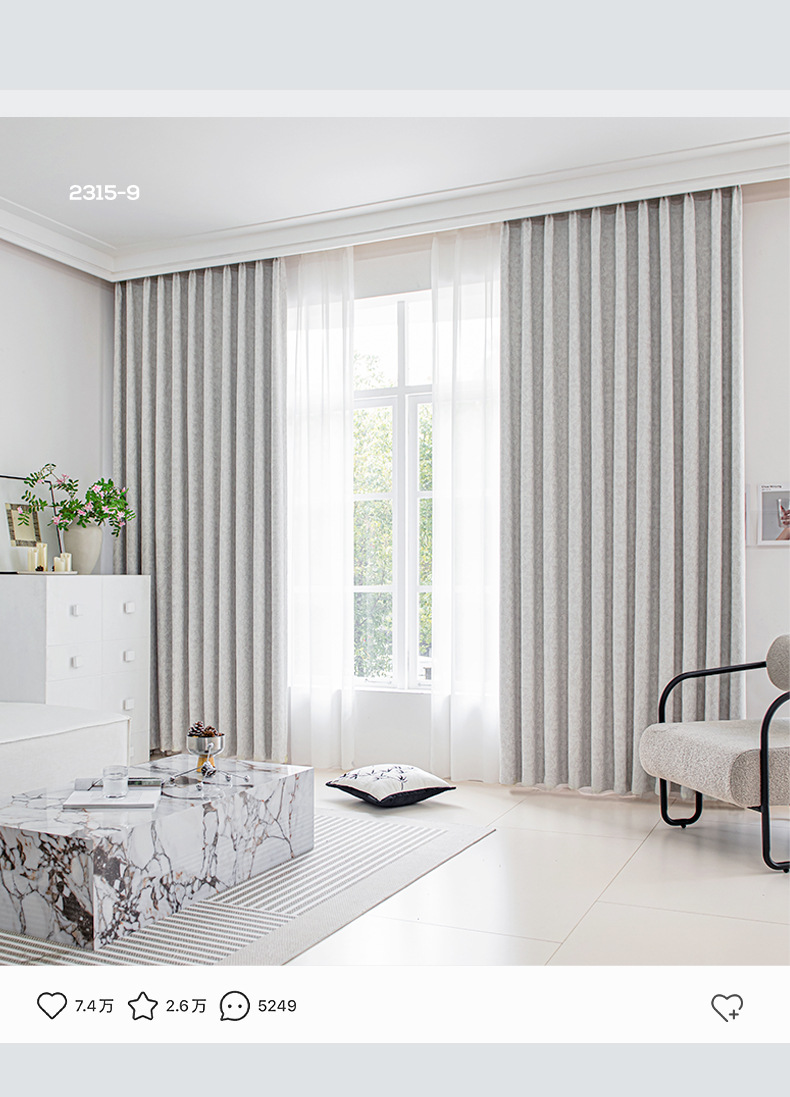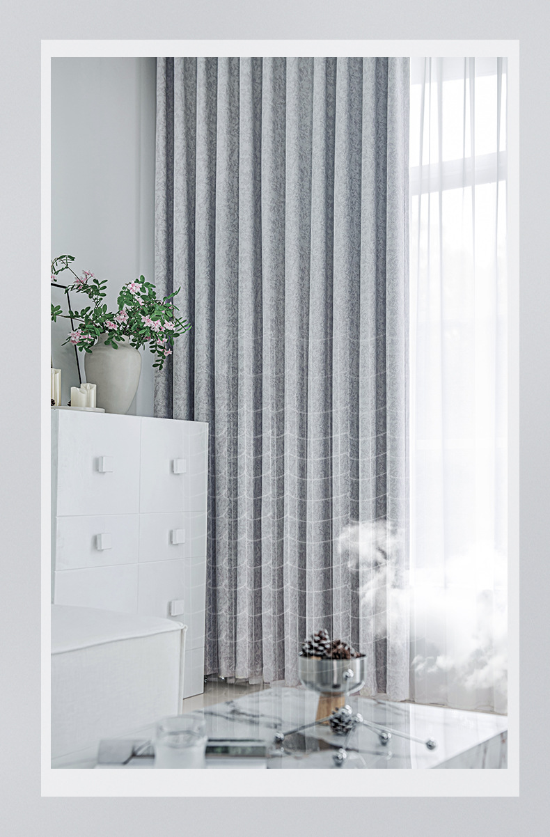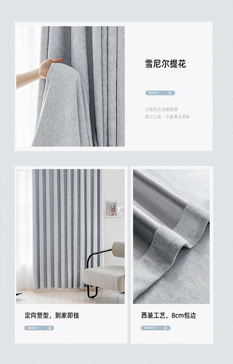 Cortina de tela de protección solar de alta sombreado productos acabados de Chenille Jacquard sala de estar comedor ventana flotante cortina de tela de alquiler cortina pequeña