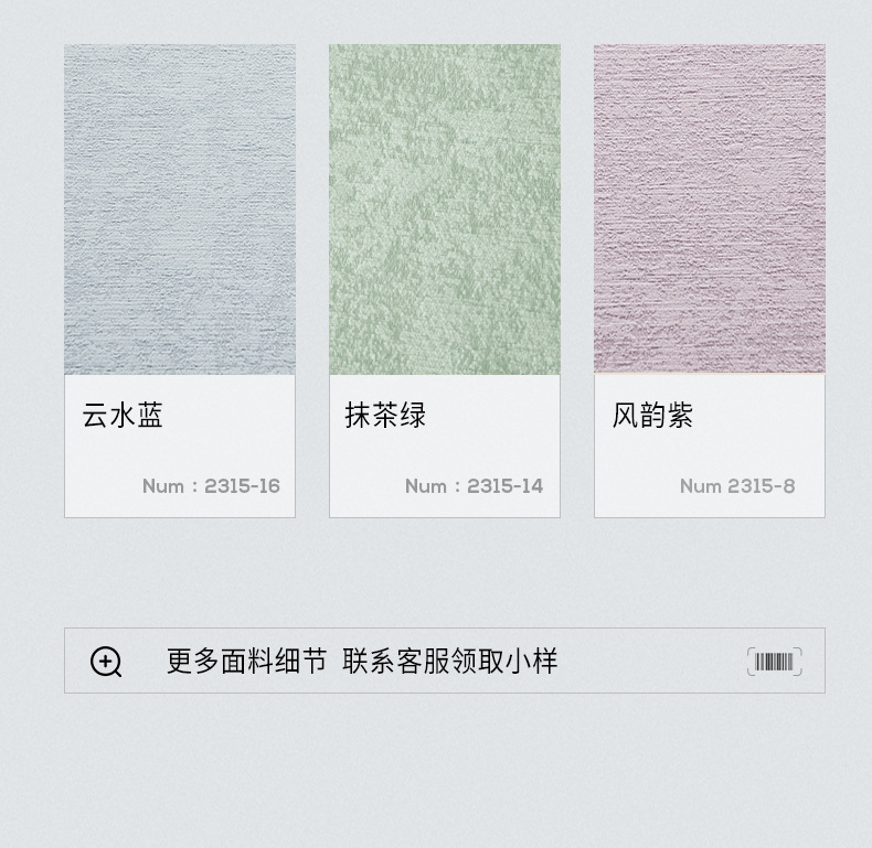 | Color | 2315 - 17 ¿ yunshui Blue (color principal), 2315 - 5 ¿ color de avena, 2315 - 13 ¿ menta cremosa, 2315 - 1 ¿ blanco batido, 2315 - 14 ¿ verde matcha, 2315 - 12 ¿ ceniza de barro marino, 2315 - 8 ¿ color púrpura, 2315 - 9 ¿ ceniza de alifán, 2315 - 7 ¿ polvo de Concha |
