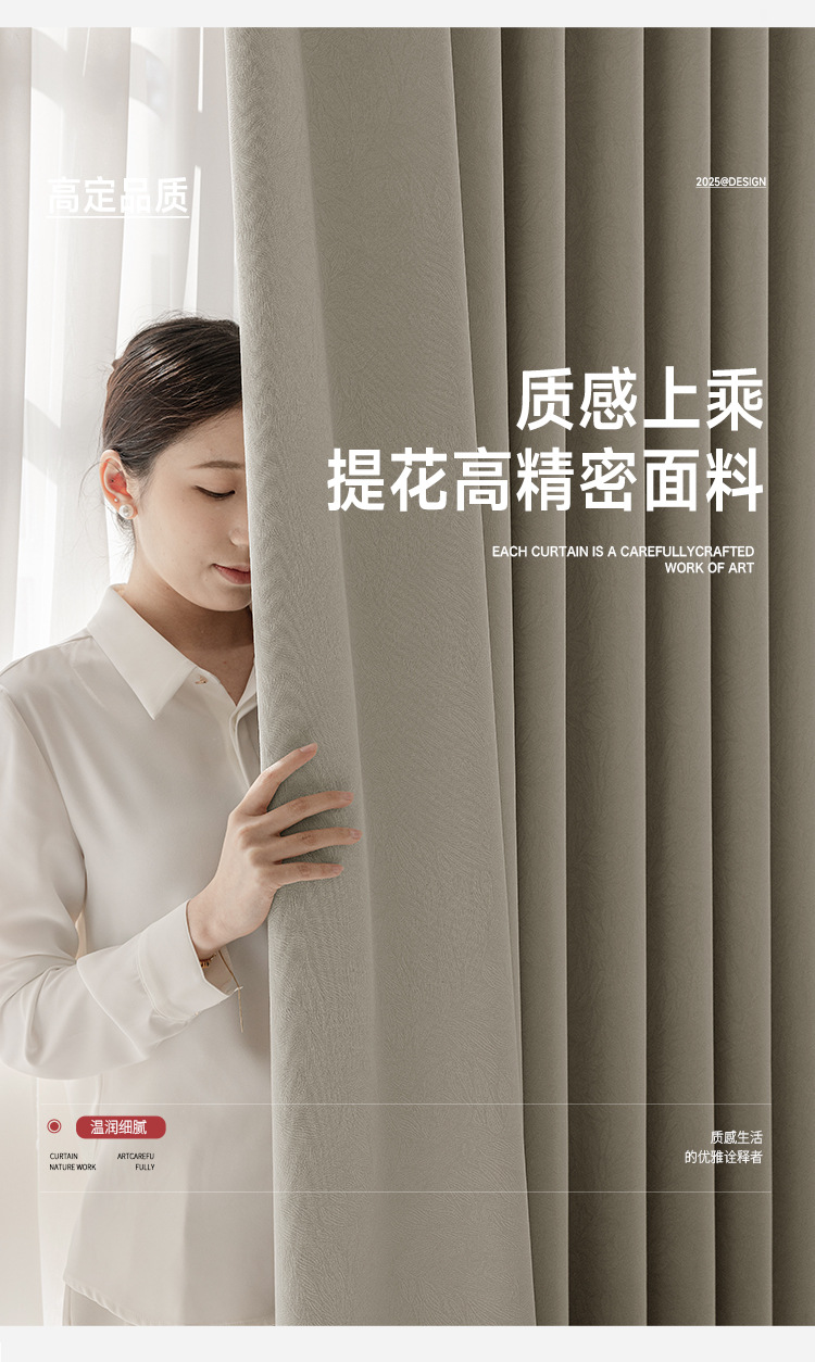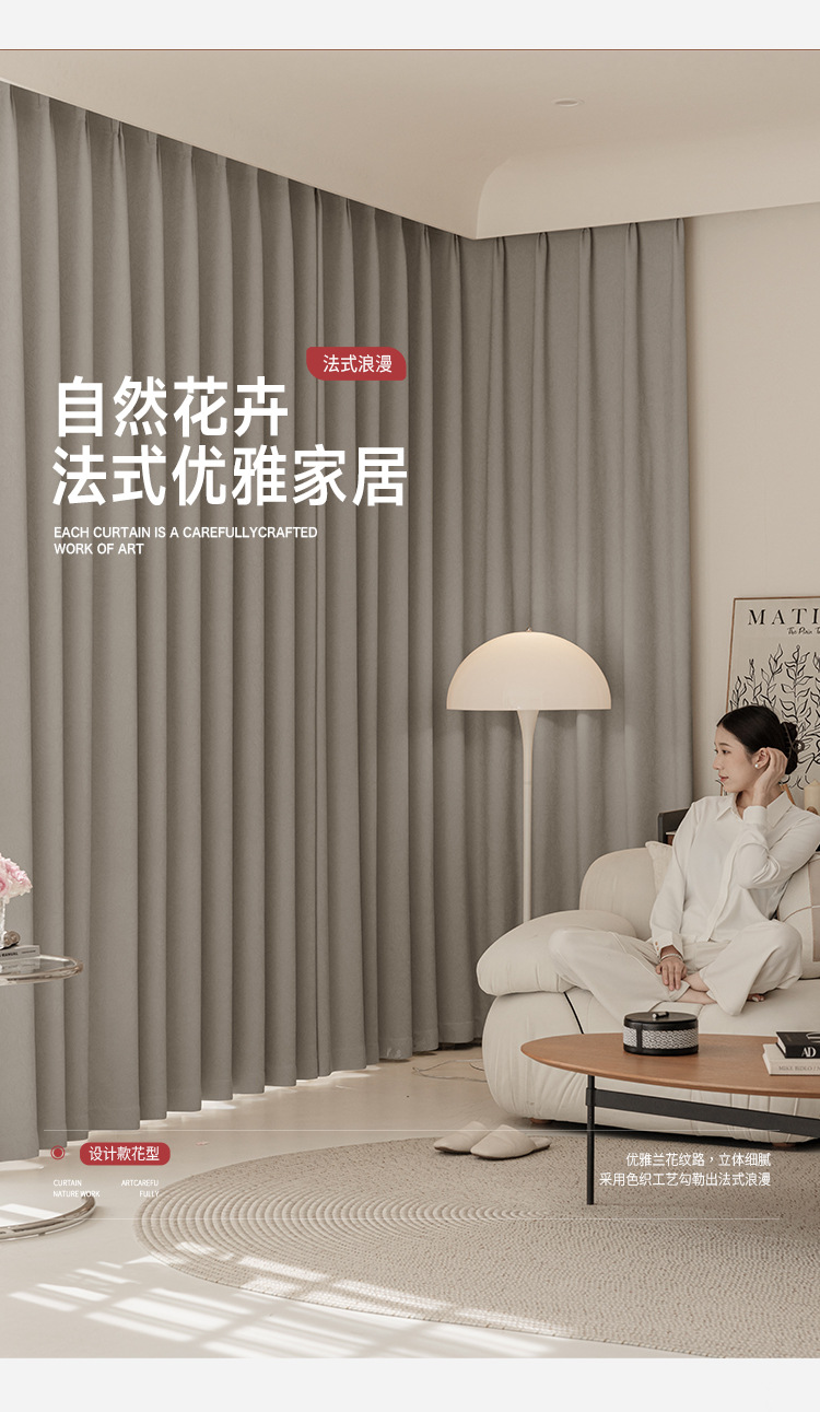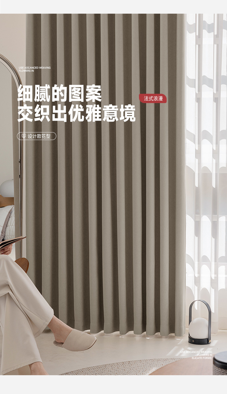 Nuevas cortinas francesas jacquard de alta precisión, totalmente opacas, habitaciones de alquiler, perforaciones gratuitas, aislamiento térmico, cortinas de protección solar, productos terminados