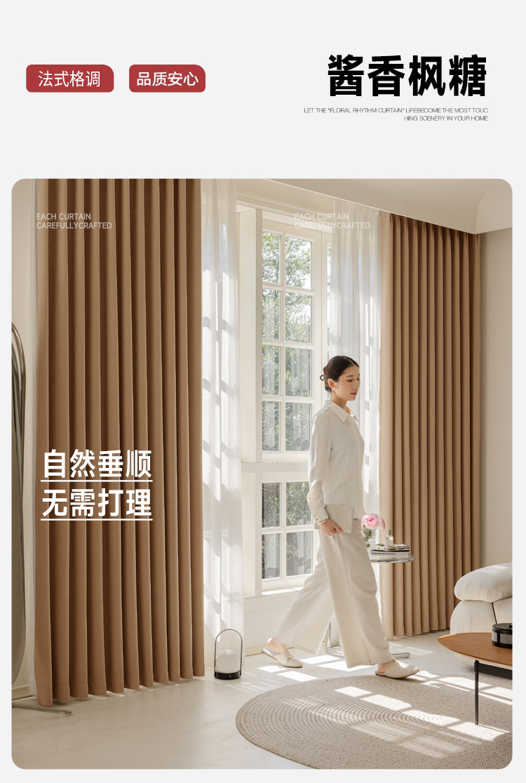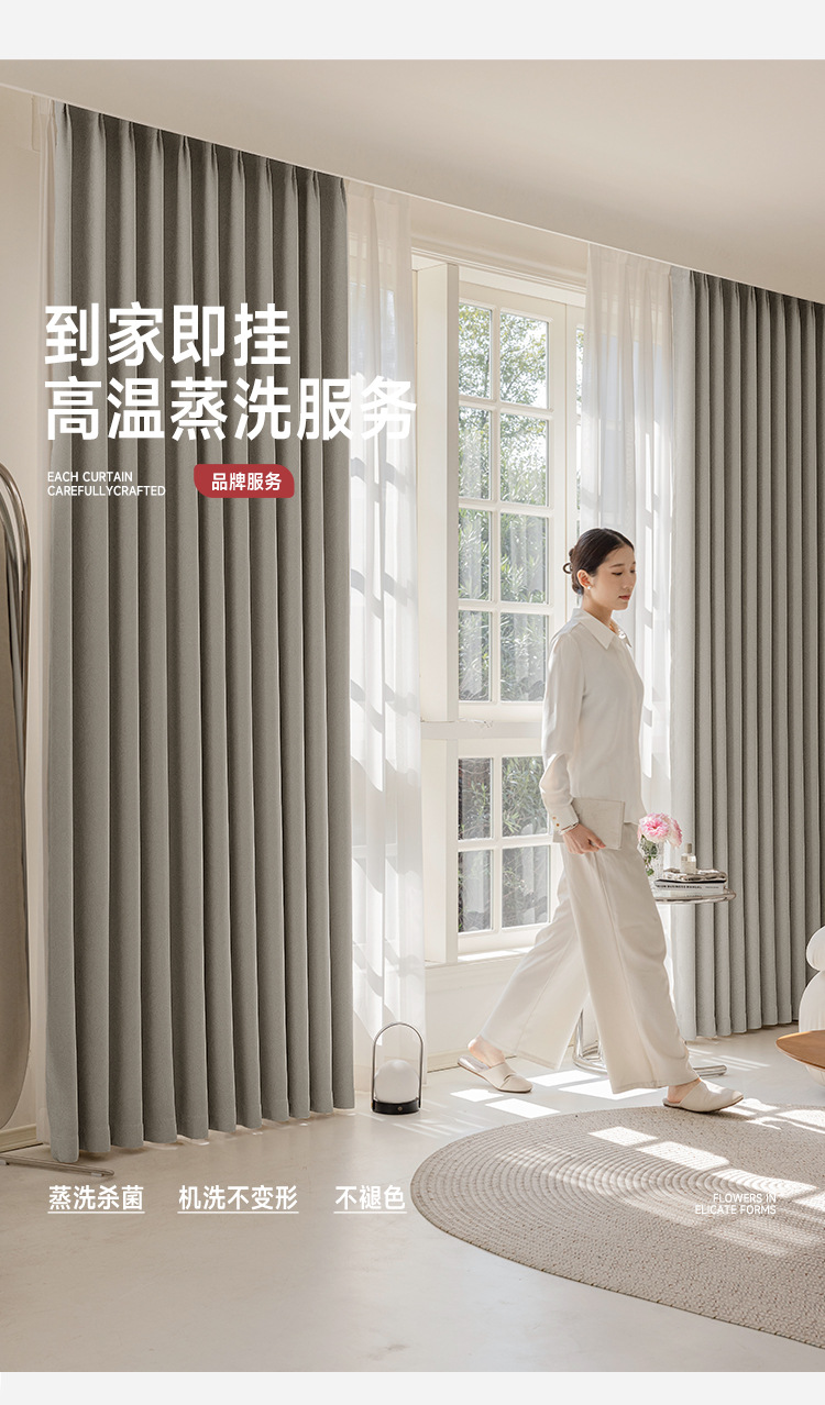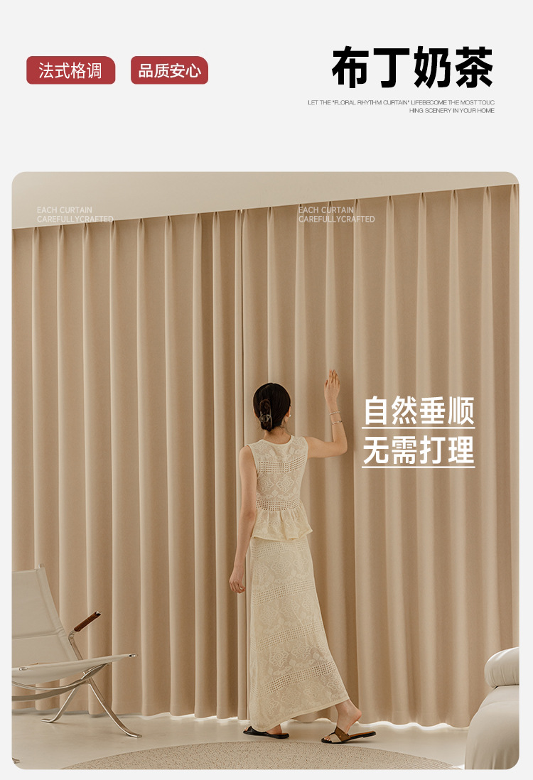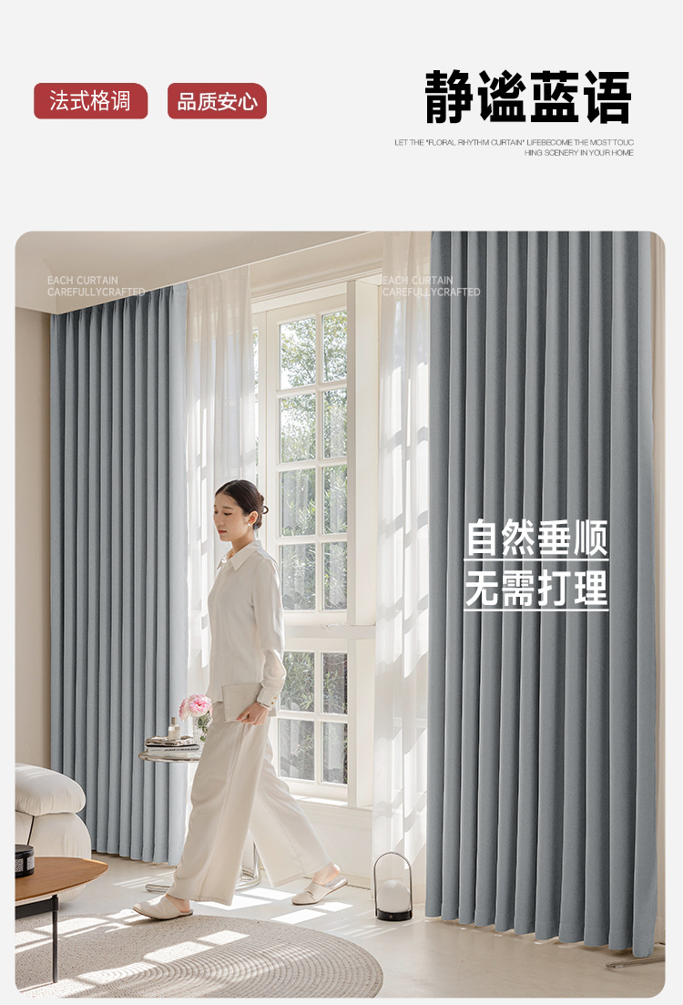 Nuevas cortinas francesas jacquard de alta precisión, totalmente opacas, habitaciones de alquiler, perforaciones gratuitas, aislamiento térmico, cortinas de protección solar, productos terminados