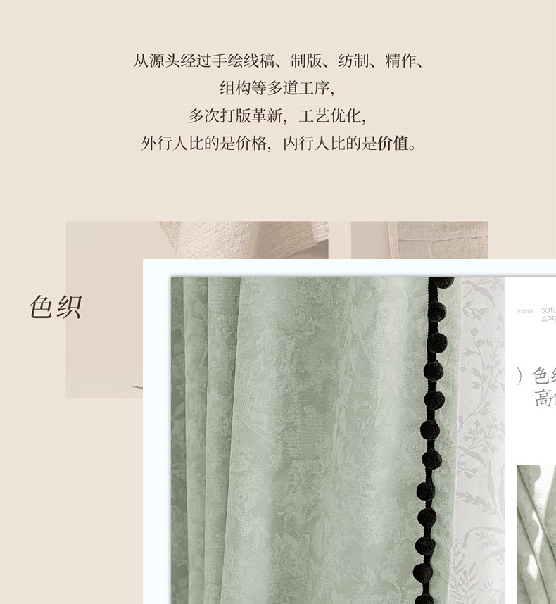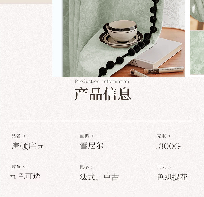 Retro Jacquard francés Chenille cortina de alta sombración dormitorio sala de estar balcón Shaoxing Keqiao cortina de lujo ligera productos terminados