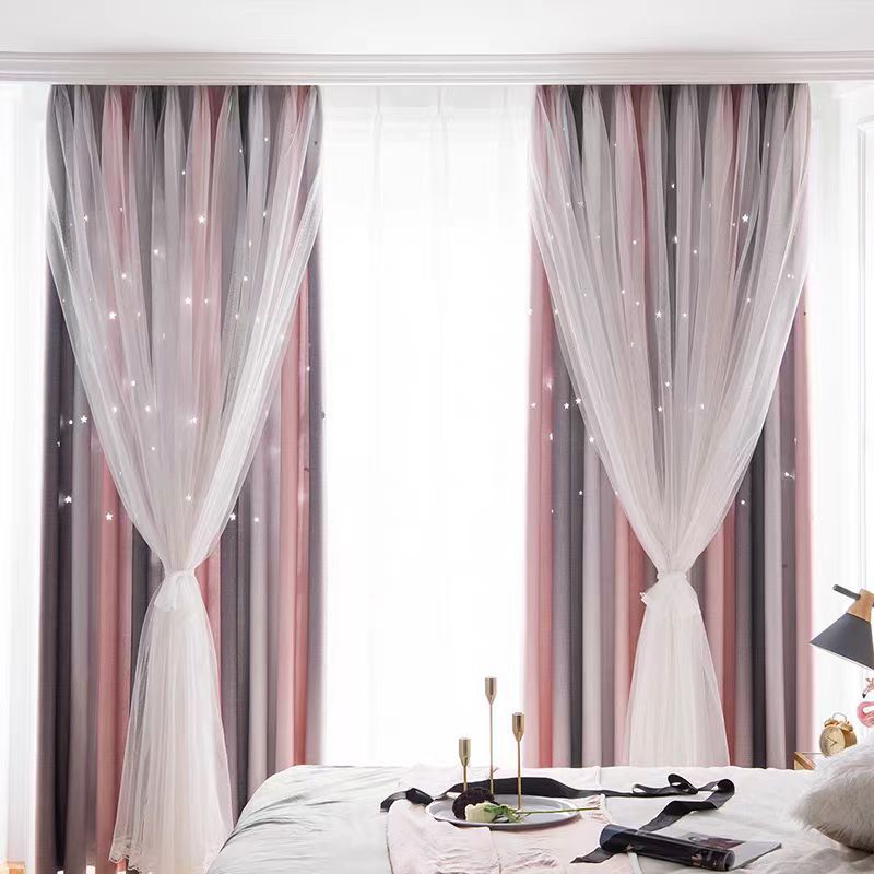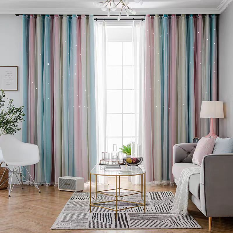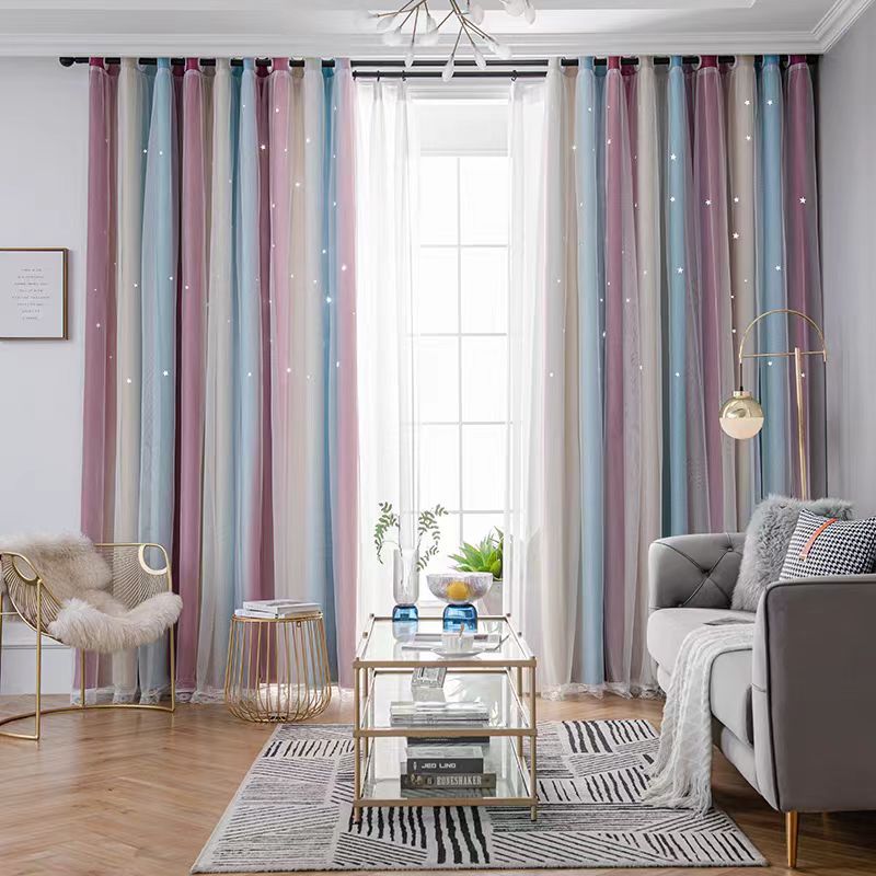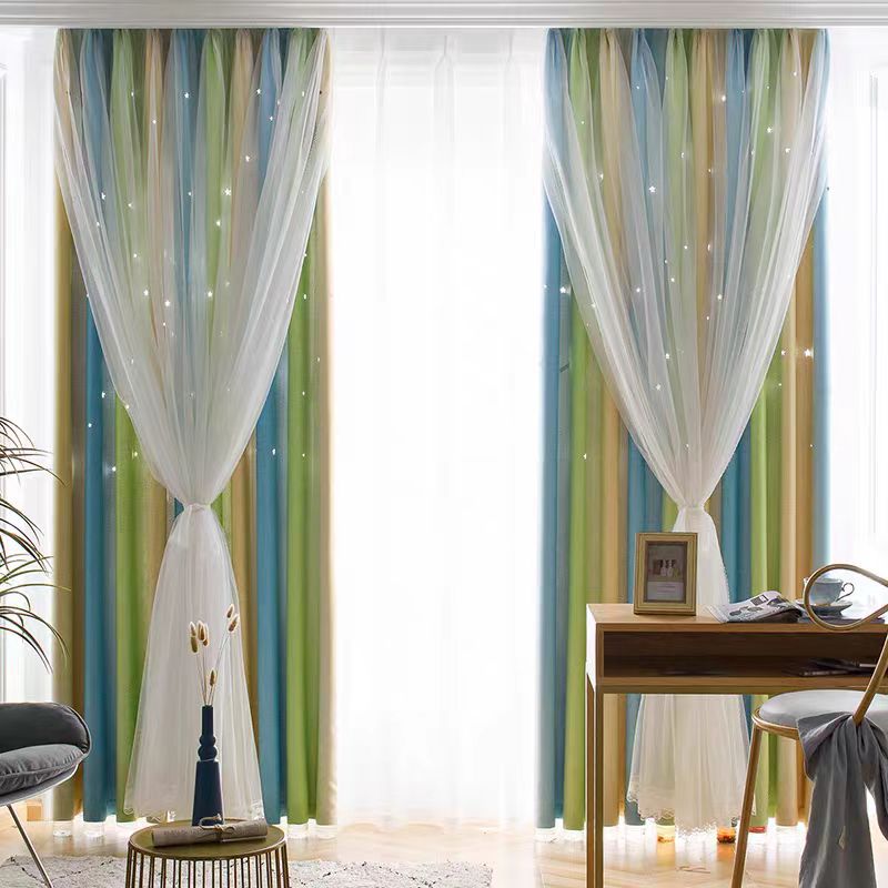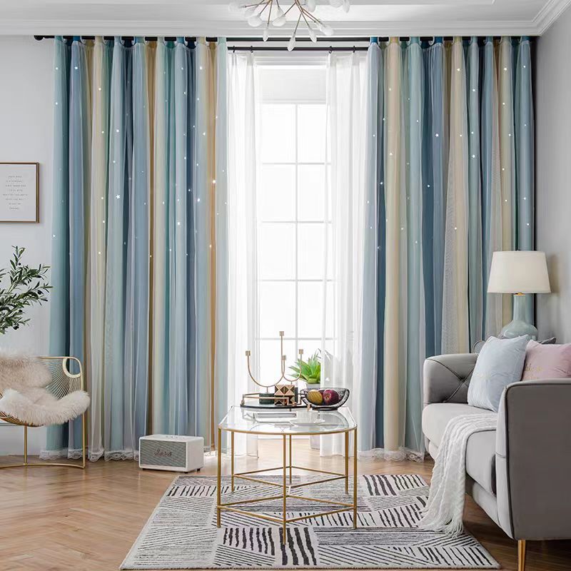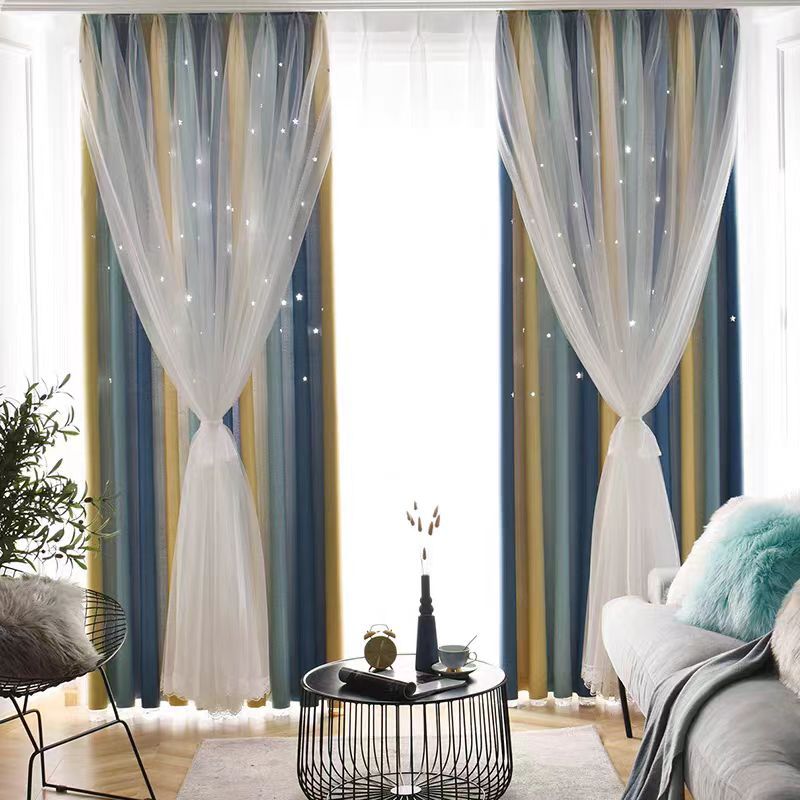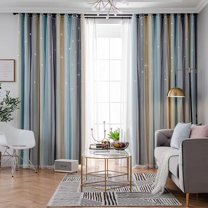 comercio exterior transfronterizo doble rayas graduadas huecas estrellas cortina tela de tela de sombreado acabado fábrica directa de cortinas