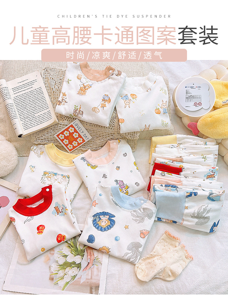 Conjunto de ropa interior para niños otoño nuevo bebé peinado algodón puro bebé cintura alta protección del vientre ropa de otoño pantalones largos ropa para niños