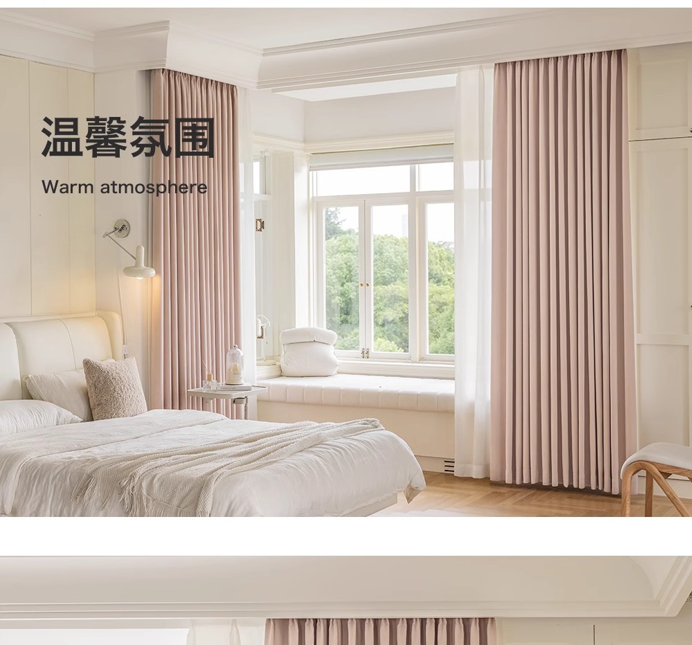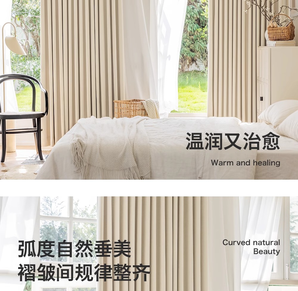 Cream viento chenilla cortina terminada tela opacas dormitorio sala de estar sombrilla protección solar Shaoxing Keqiao cortina sin agujeros