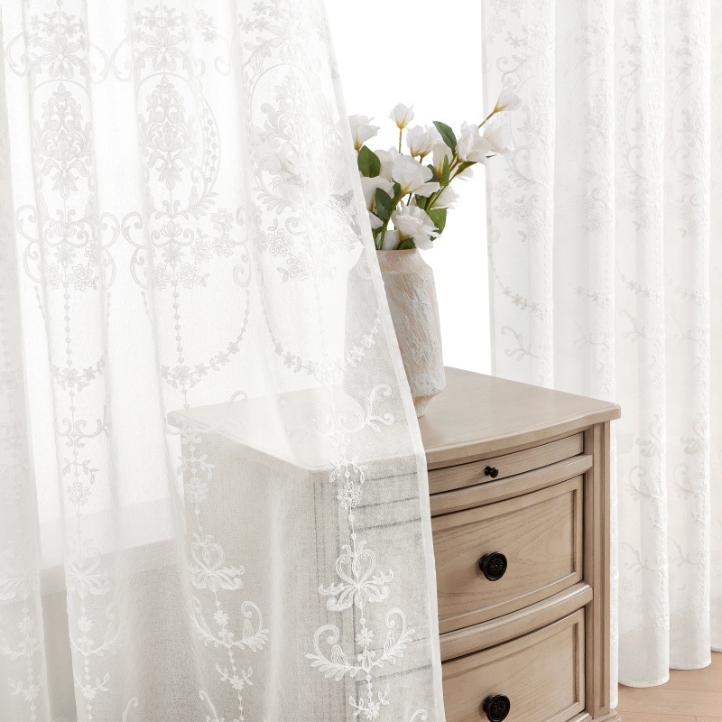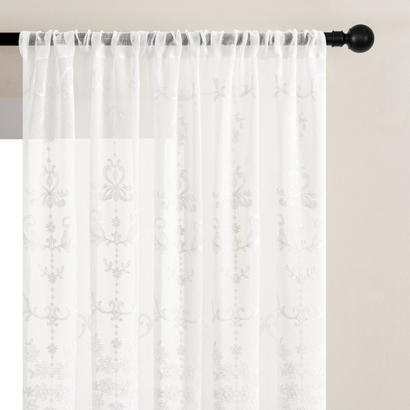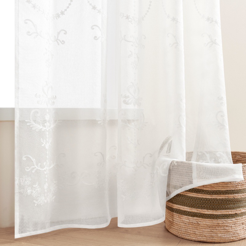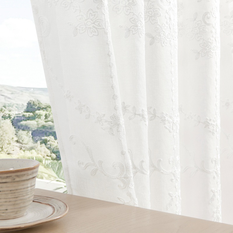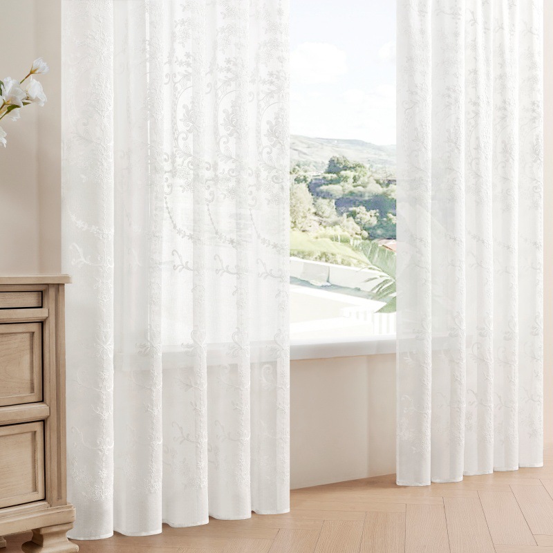 Espejo de flores de color blanco colorido cortina de ventana transparente adecuada para el balcón de la sala de estar largo flores dormitorio cortinas de comercio exterior transfronterizas