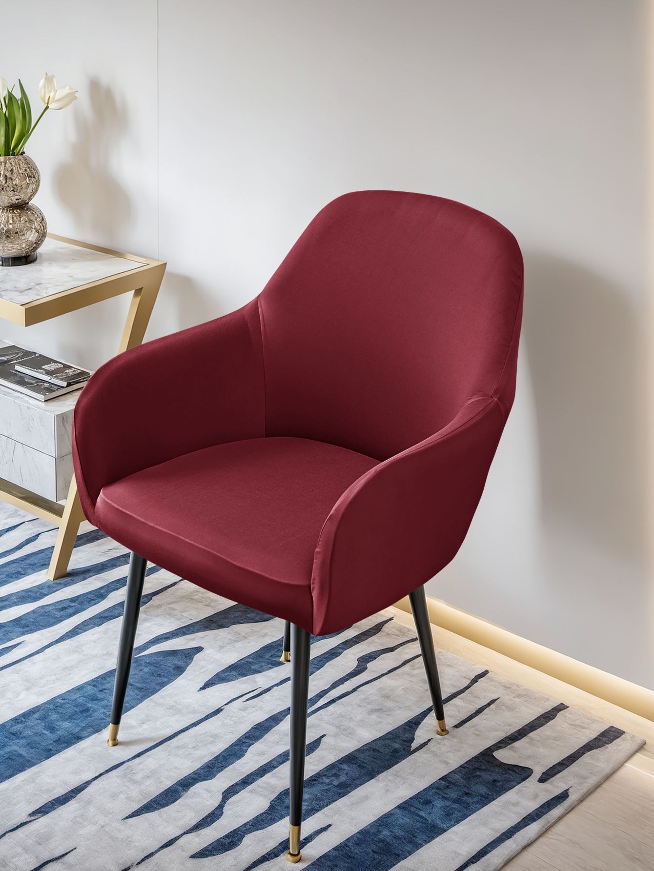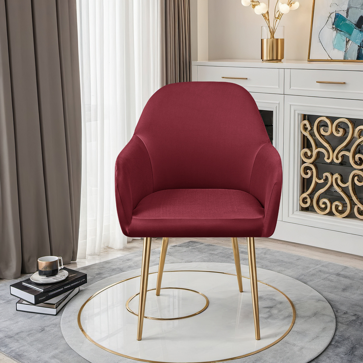 Transfronterizo 75D seda de leche impermeable nueva cubierta de silla curva reposabrazos altos cubierta de silla elástica de forma especial cubierta de silla de comedor de hotel TEMU