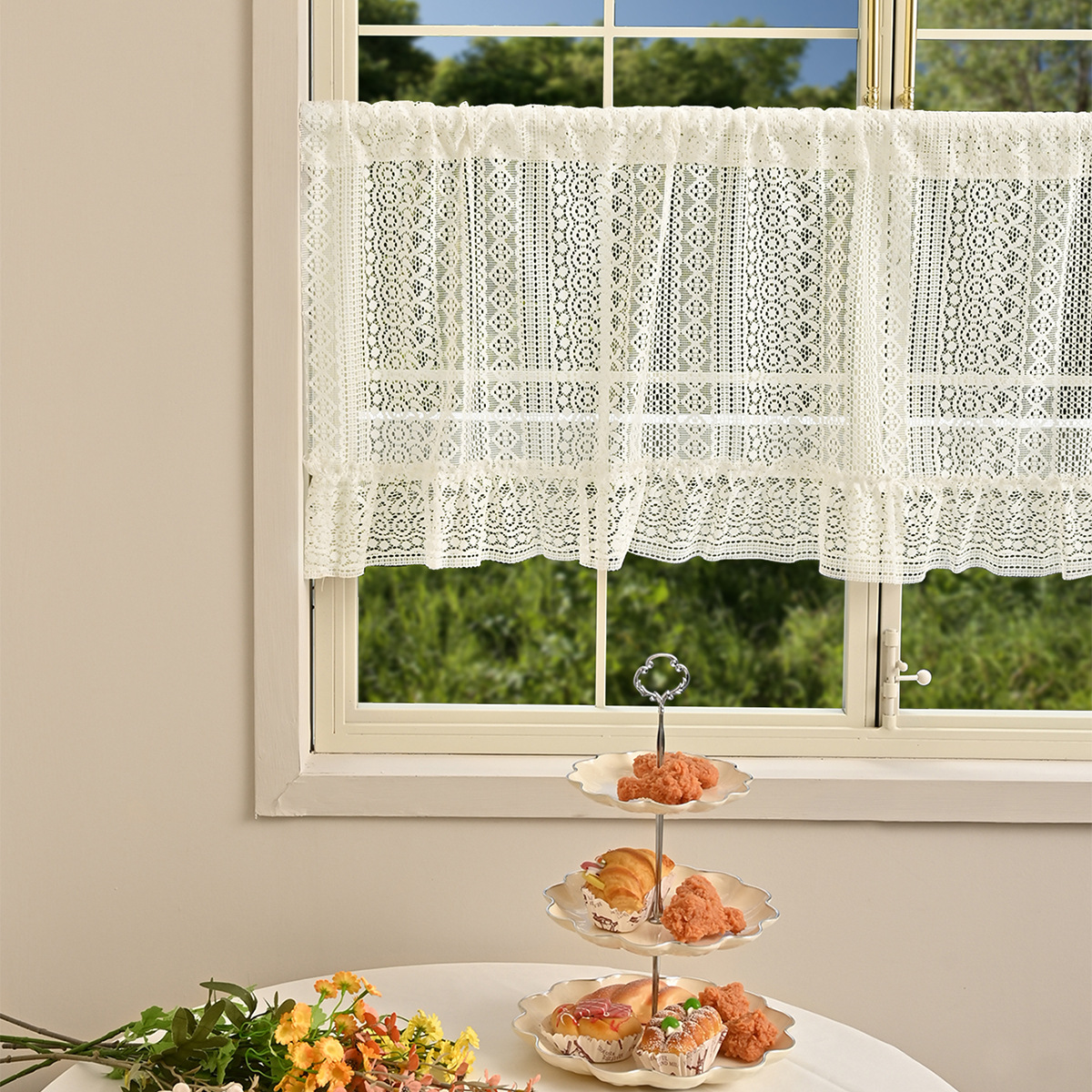 Fronteriza Herringbone de encaje de ventana Herringbone de encaje inferior barra de penetración cortina de cocina cortina cortina cortina de café TEMU