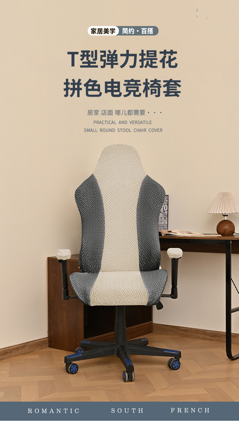 Jacquard transfronterizo en forma de T estriado de color, cubierta de silla de deporte elástica general a prueba de polvo, cubierta de silla de juego de Internet