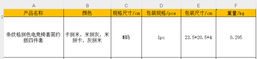 | Número de artículo | Juego de cuatro piezas de la versión simple de la cubierta del asiento de deportes electrónicos de color a cuadros a rayas |