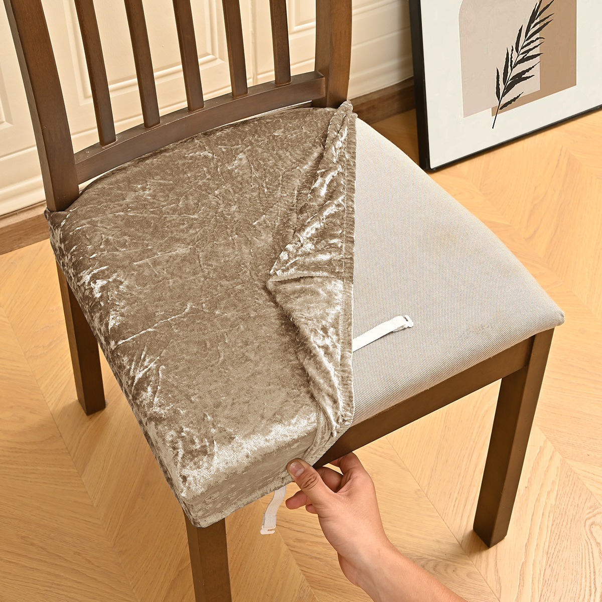 Amazon elástico oro veludo doble taburete elástico cubierta con lengua de hebilla cubierta de cojín de silla antideslizante cubierta de comedor de hotel