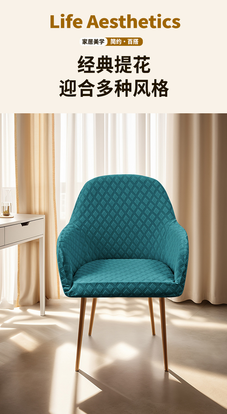 Transfronterizos elásticos jacquard rango nuevo cubierta de silla arqueada reposabrazos altos elásticos de forma especial cubierta de silla de comedor de hotel SHEIN en stock