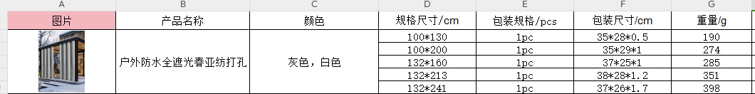| Número de artículo | Perforación de cortinas impermeables en chunyafang |