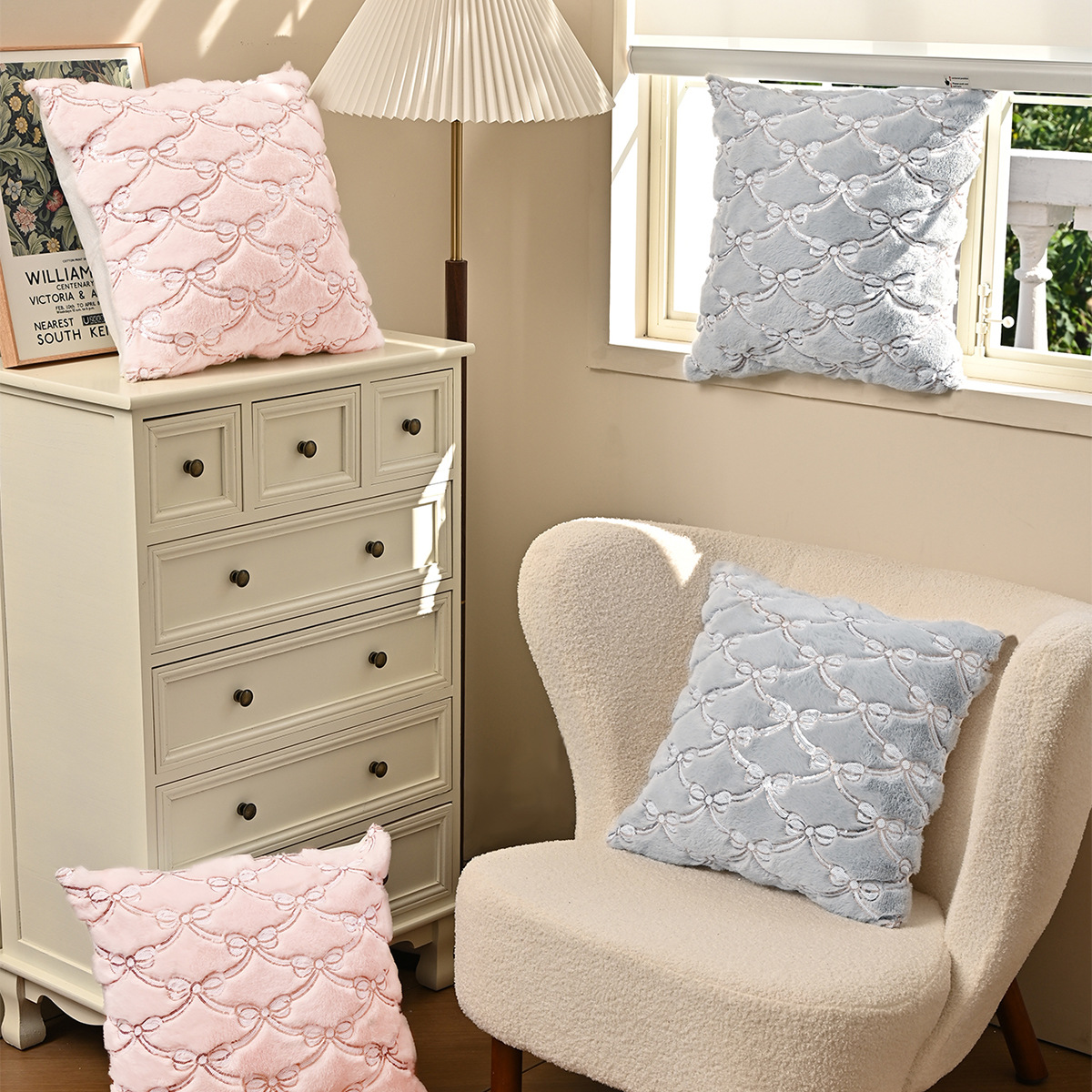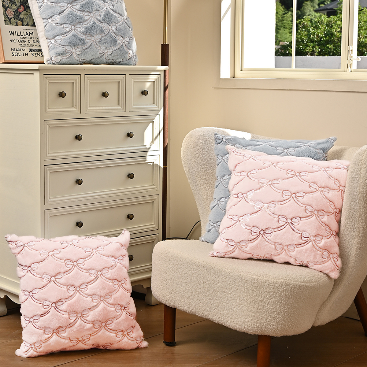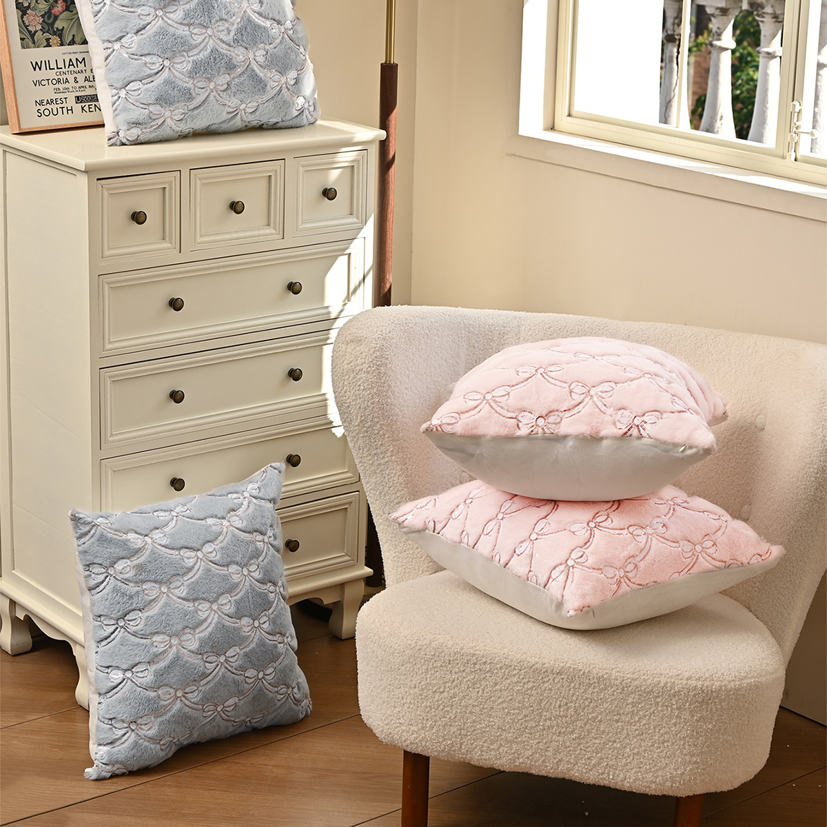 Cross-border amor doble arco almohada cubierta universal simple peluche sequinilla almohada cubierta sofá de oficina cubierta de cintura
