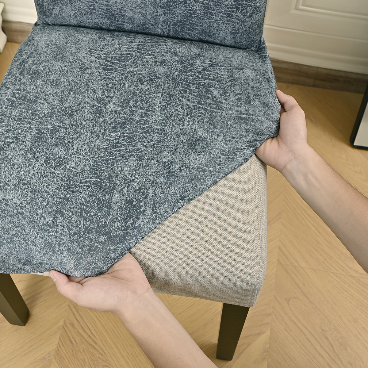 Amazon transfronterizo elástico esmerilado imitación PU cubierta de silla impermeable Retro sensación hotel cubierta de silla a prueba de polvo TEMU
