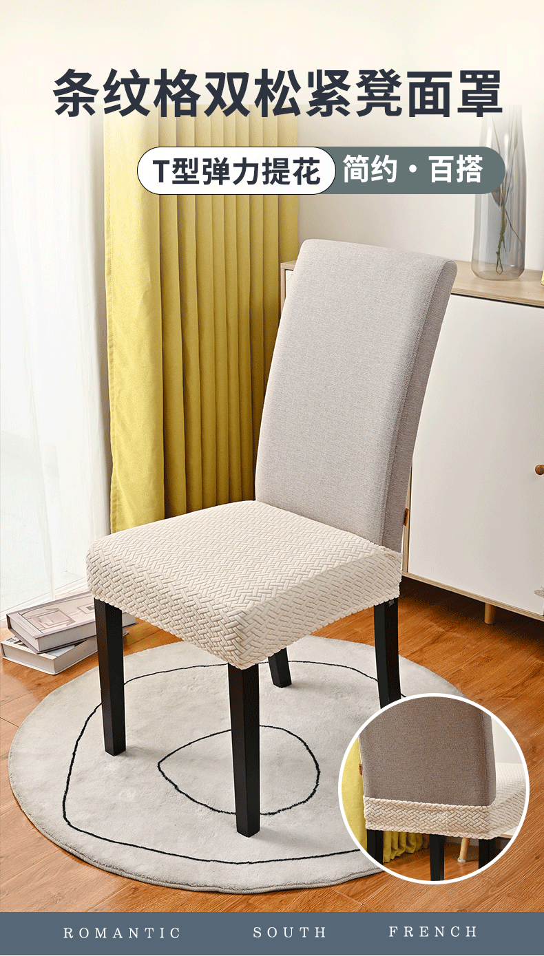 Transfronterizo T-striped taburete elástico doble cubierta de cubierta de silla jacquard elástica cubierta de silla de comedor de hotel en stock