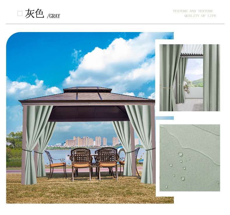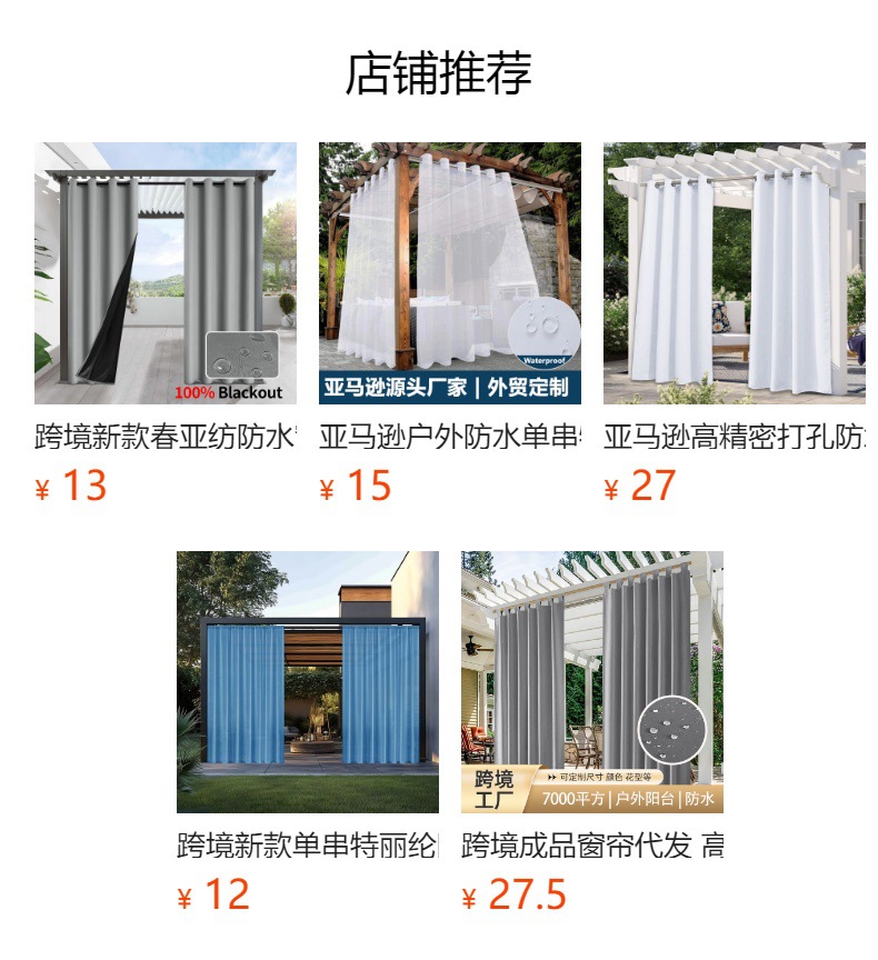Amazon Cortina impermeable de cáñamo para exteriores, protección solar para balcón, tela de cortina terminada, fabricante de cortinas a prueba de lluvia de comercio exterior