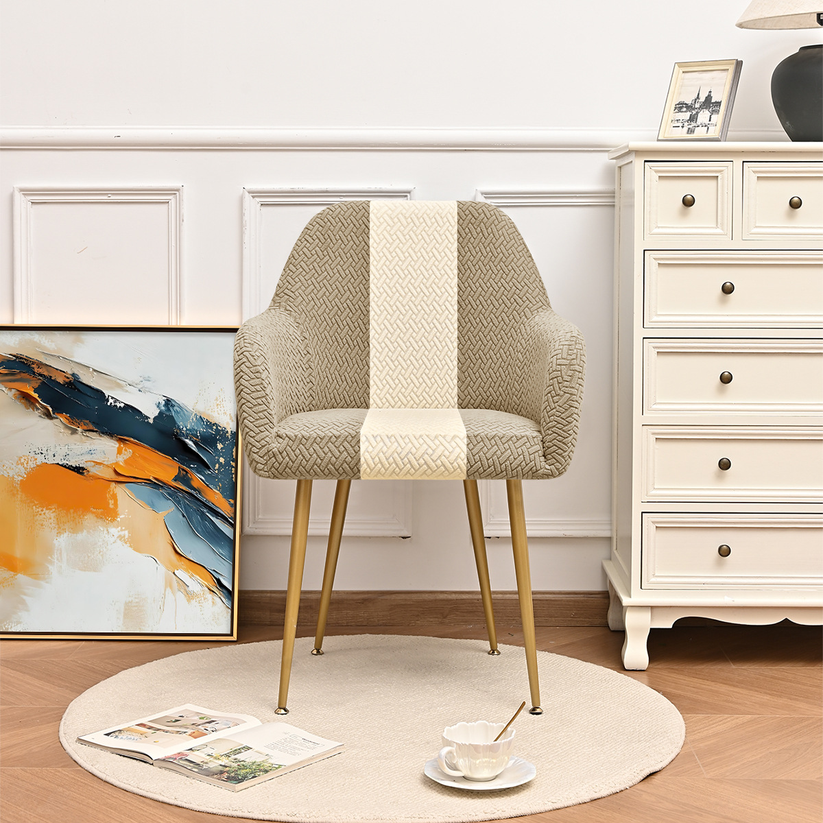 Elástico transfronterizo jacquard T-striped color nuevo cubierta de silla curva a prueba de polvo alto reposabrazos de forma especial cubierta de silla de comedor de hotel