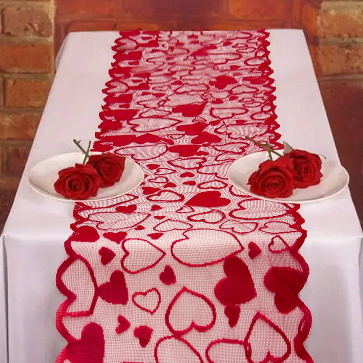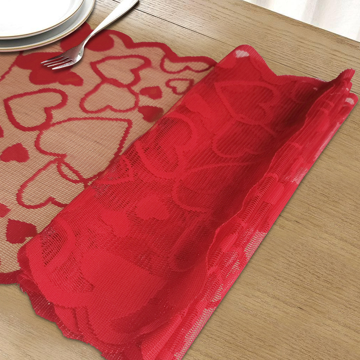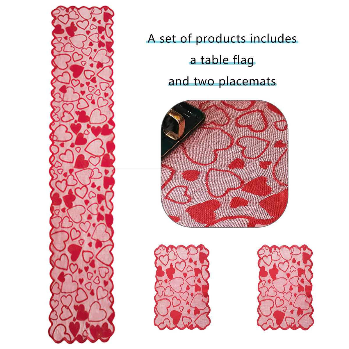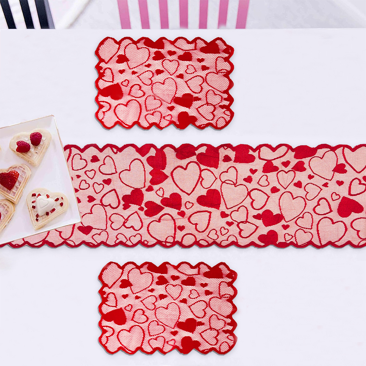 Transfronterizos de urdimbre encaje amor día de San Valentín tabla de mesa rectangular bandeja cojín set de decoración de vacaciones fábrica en stock
