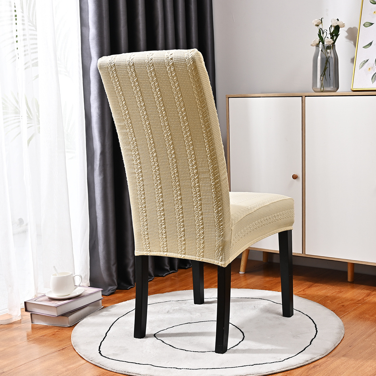 Transfronterizos sólidos elásticos jacquard silla de lino simple de alta espalda casera hotel restaurante silla cubierta al por mayor spot