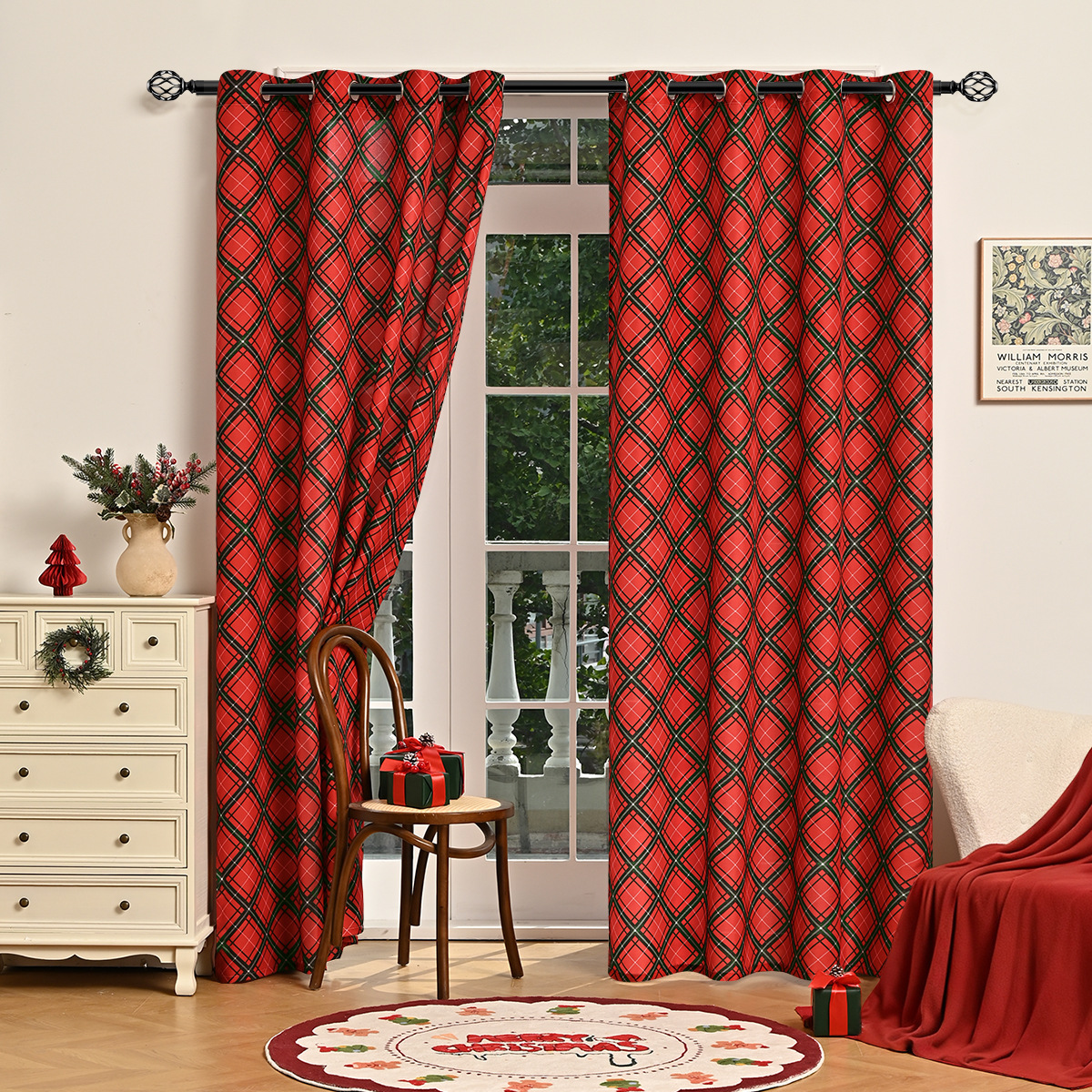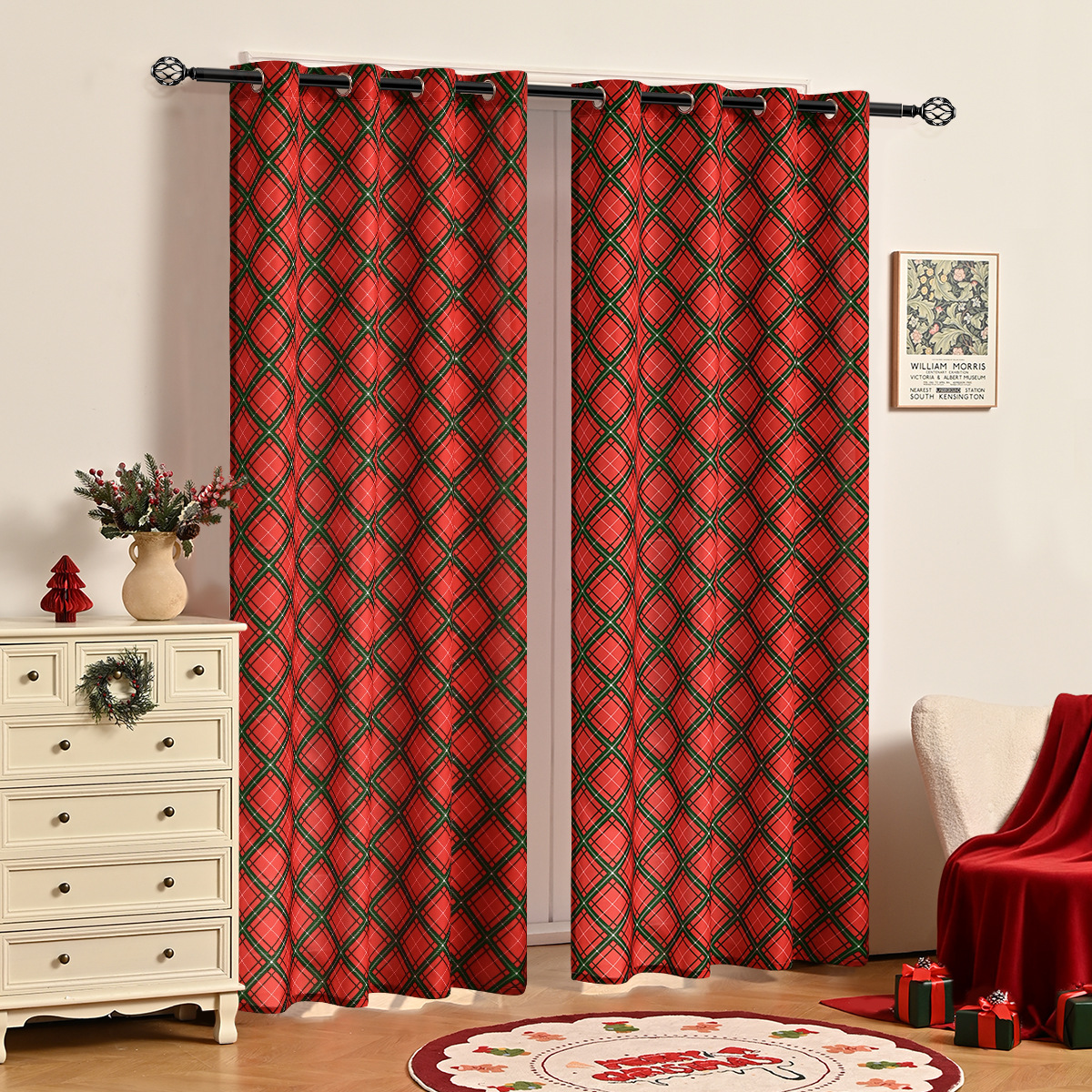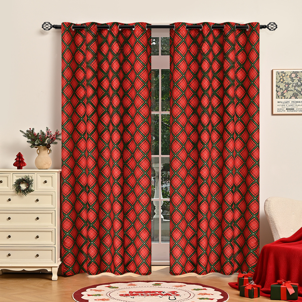 | Número de artículo | Cortinas perforadas de la Casa Dulce de Navidad / patrón de estrellas de Navidad / Magenta de Navidad |
