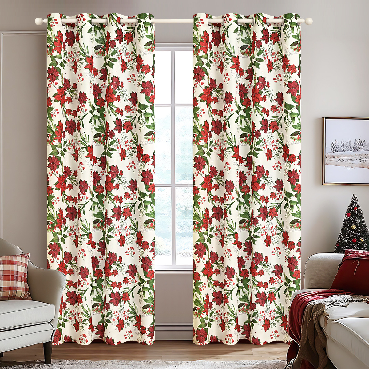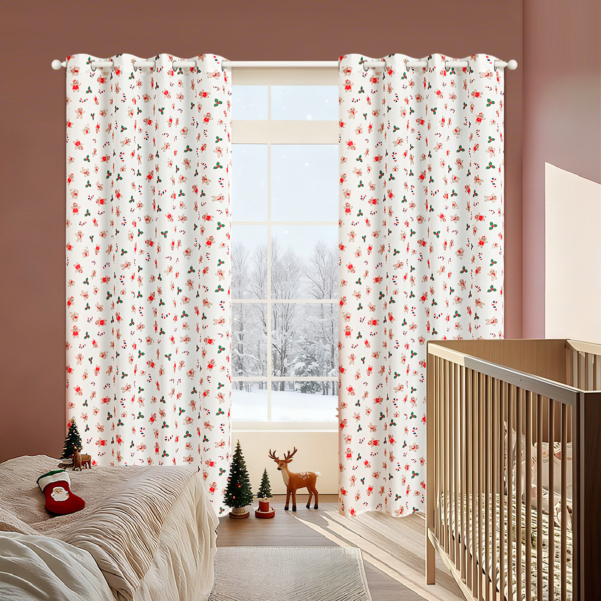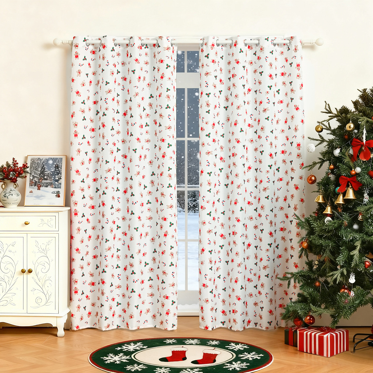 Nuevas cortinas de Navidad impresas transfronterizas cortinas cortinas cortinas de Navidad de decoración de TEMU