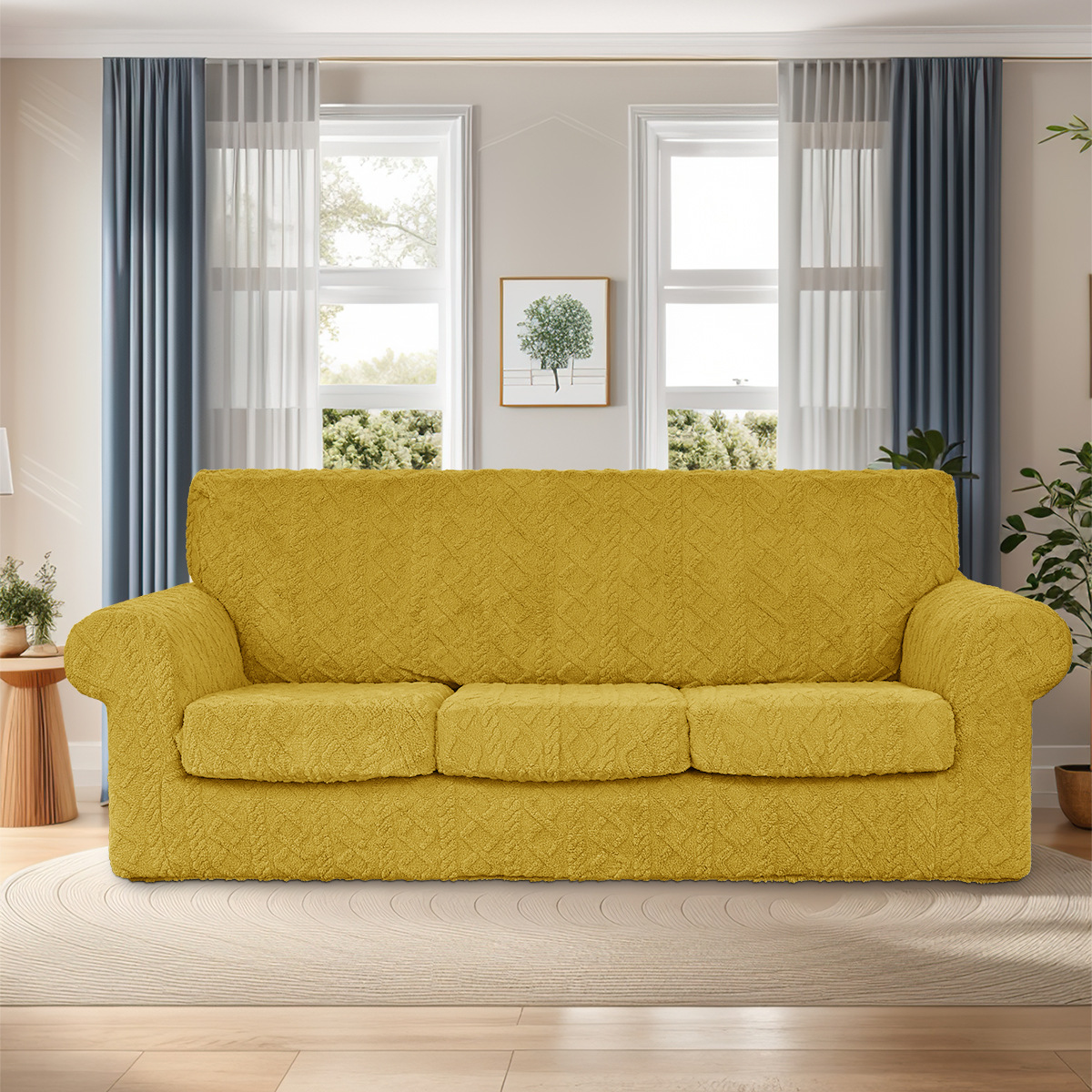 | Número de artículo | Trenzado de torsión Jacquard de un solo lado tipo cinco piezas + cubierta del sofá del cojín |