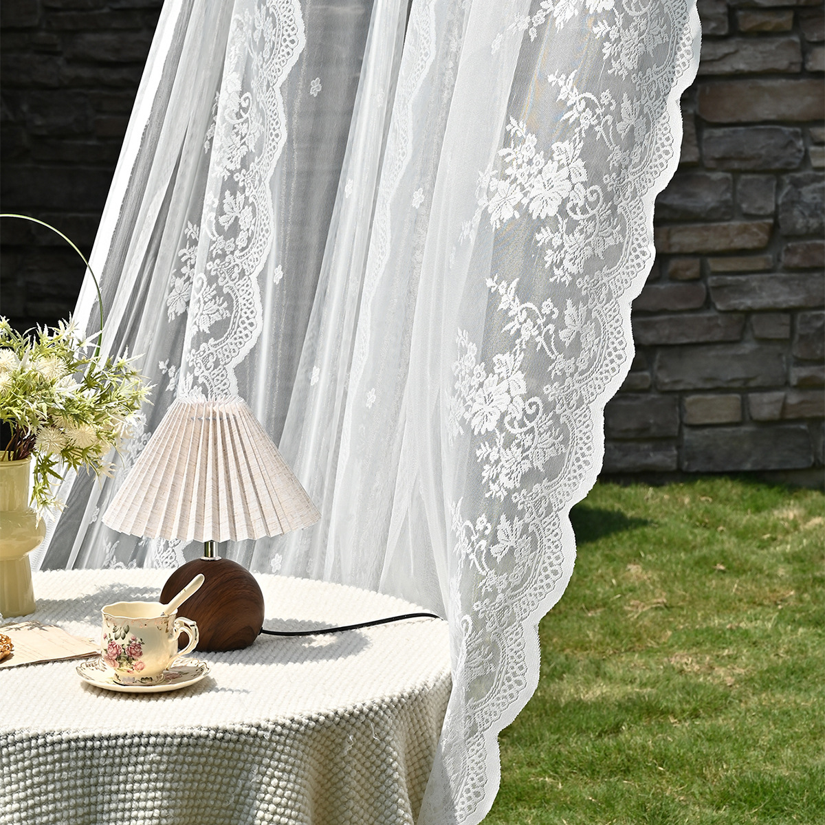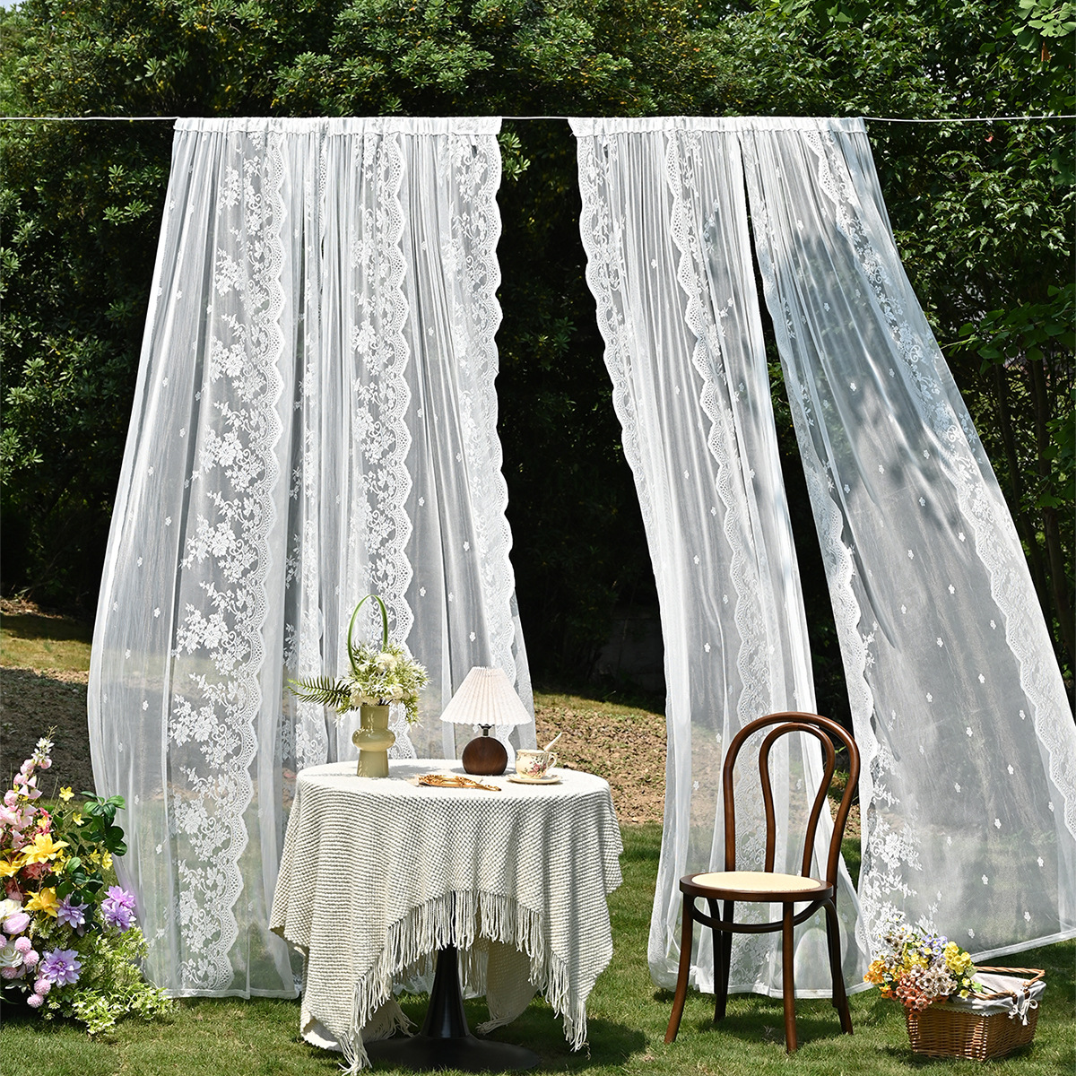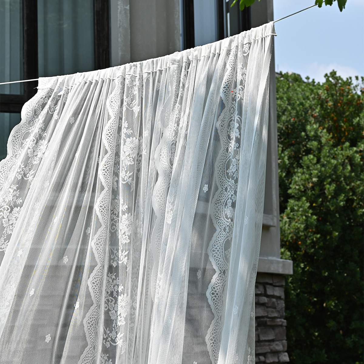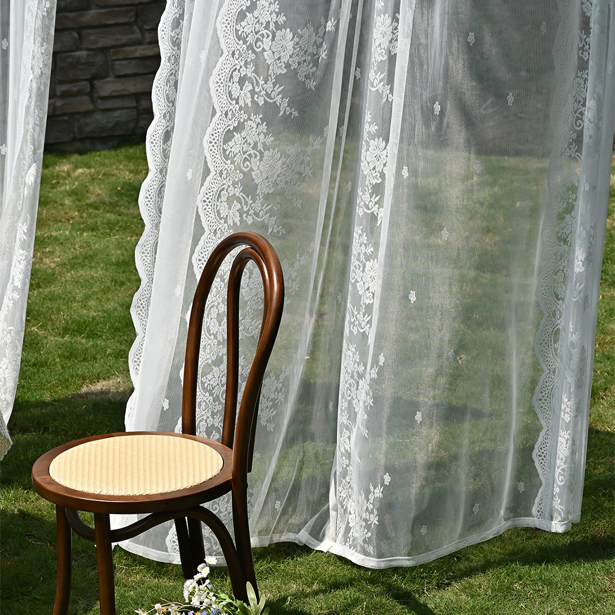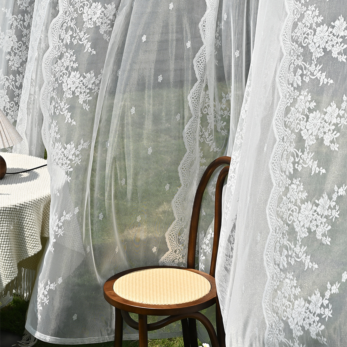 Amazon 2PC/Set Encaje por urdimbre Encaje vertical de doble fila Encaje Cortina de cortina semi-opacable al aire libre pastoral