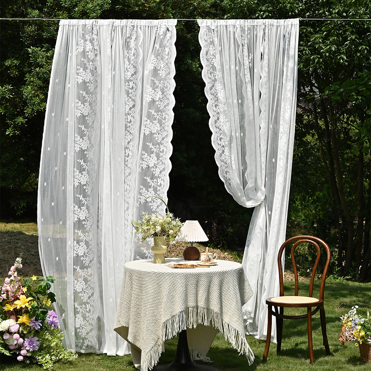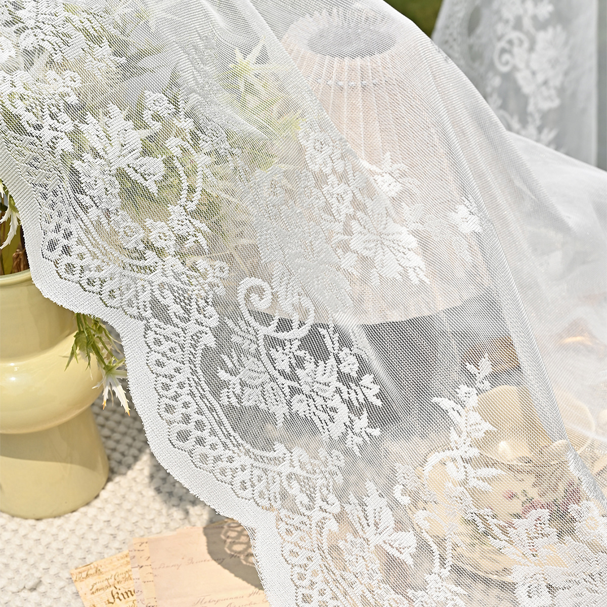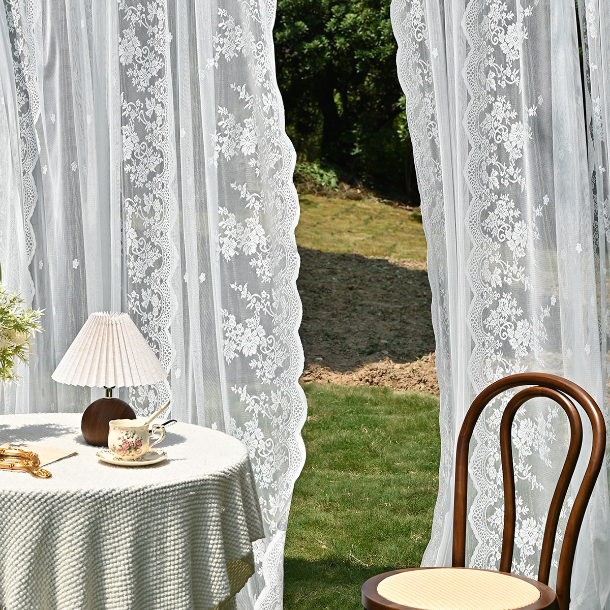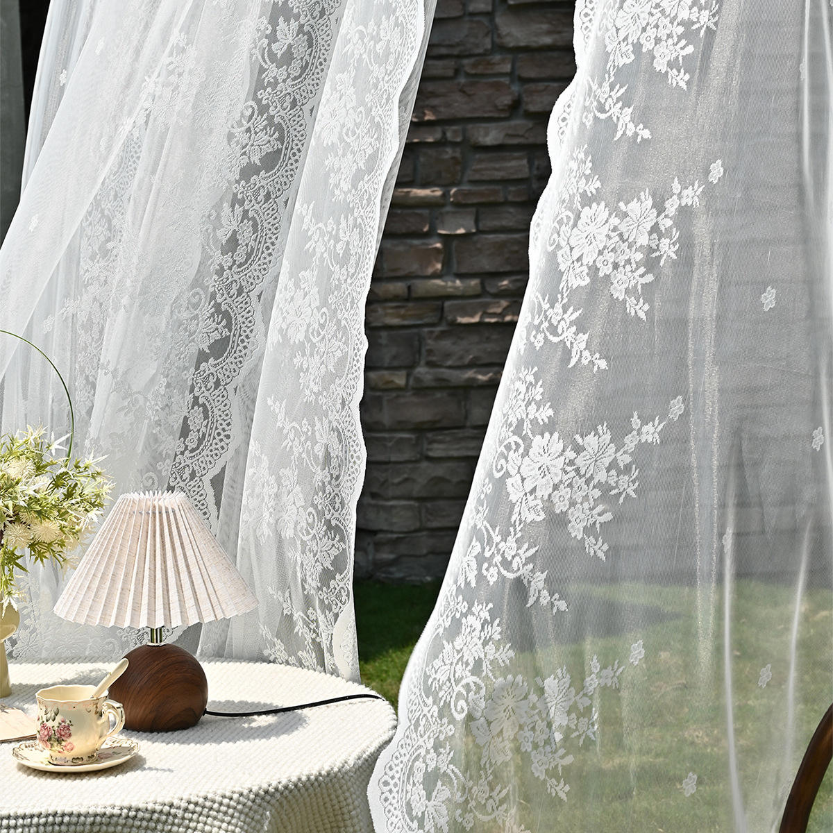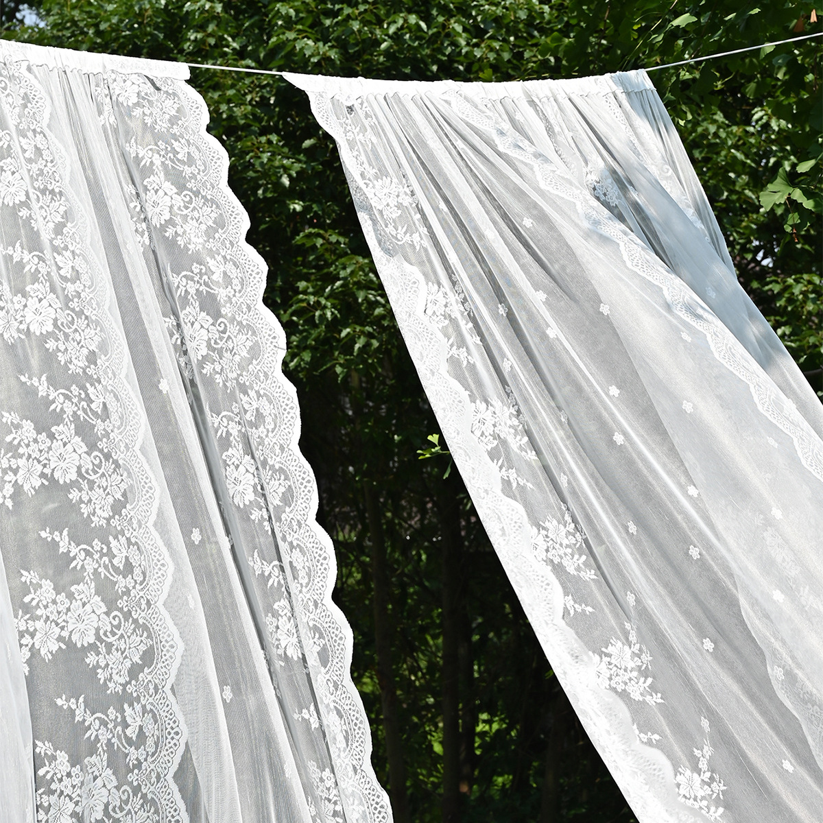 Amazon 2PC/Set Encaje por urdimbre Encaje vertical de doble fila Encaje Cortina de cortina semi-opacable al aire libre pastoral