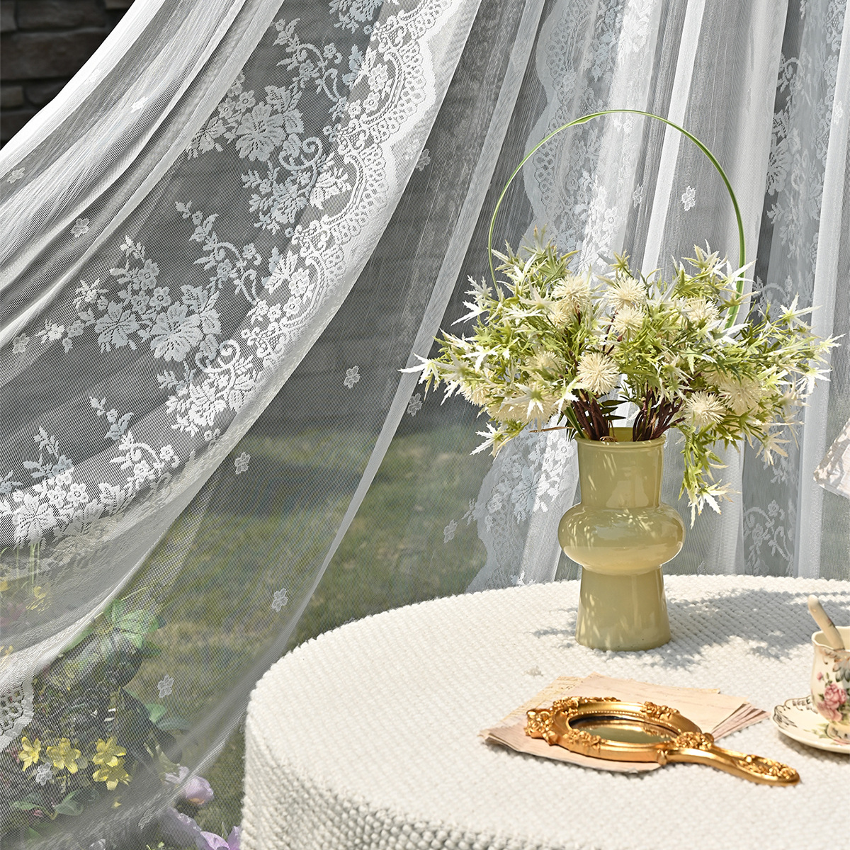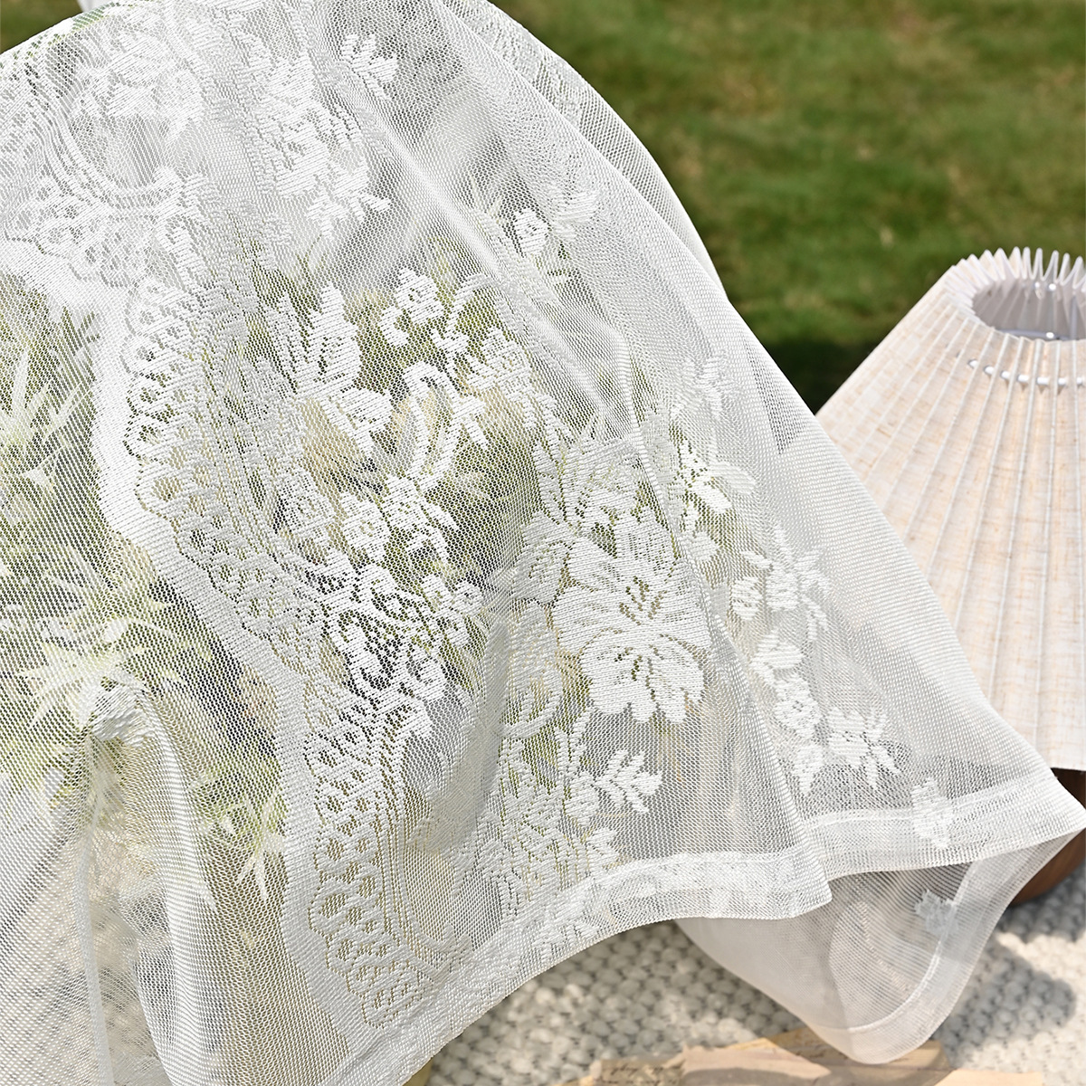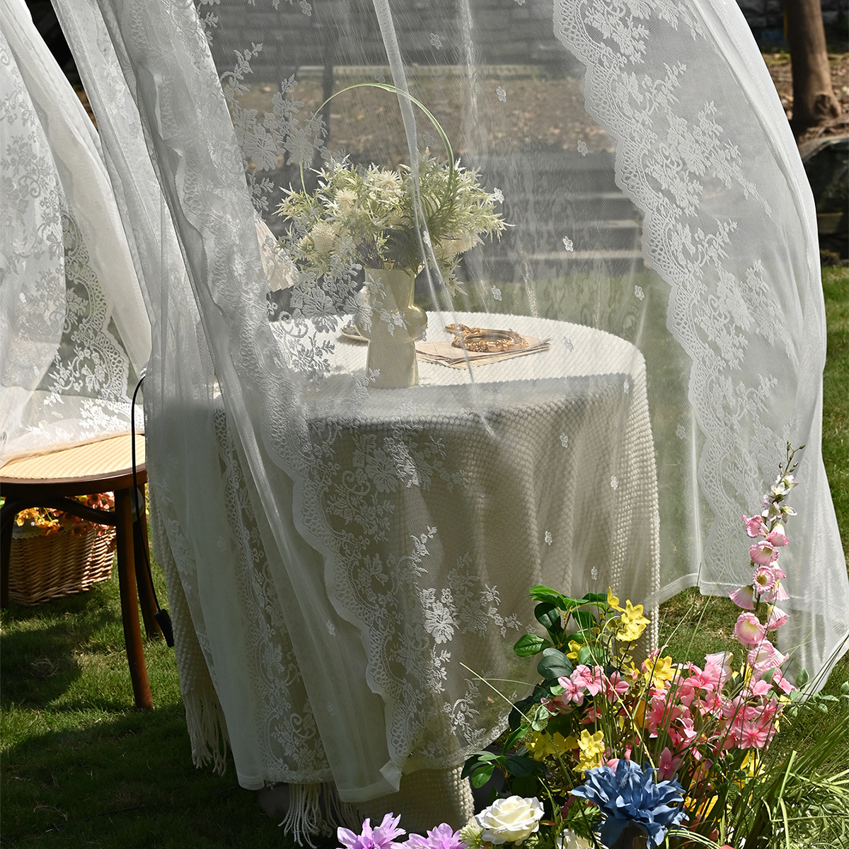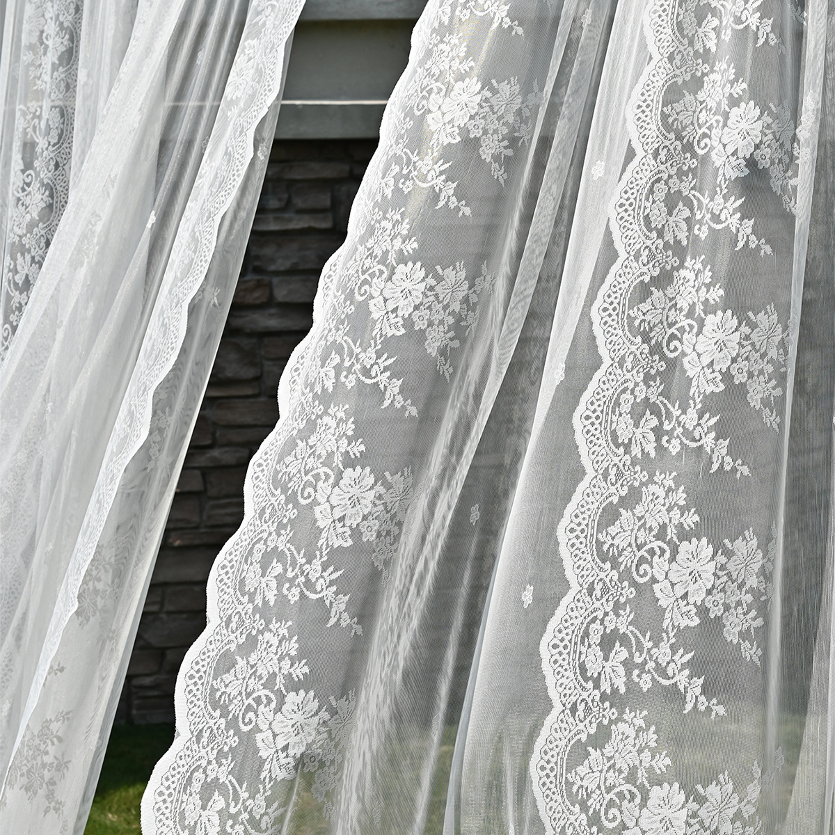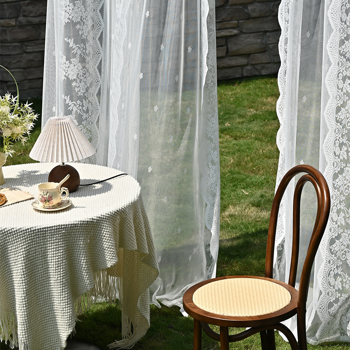 Amazon 2PC/Set Encaje por urdimbre Encaje vertical de doble fila Encaje Cortina de cortina semi-opacable al aire libre pastoral