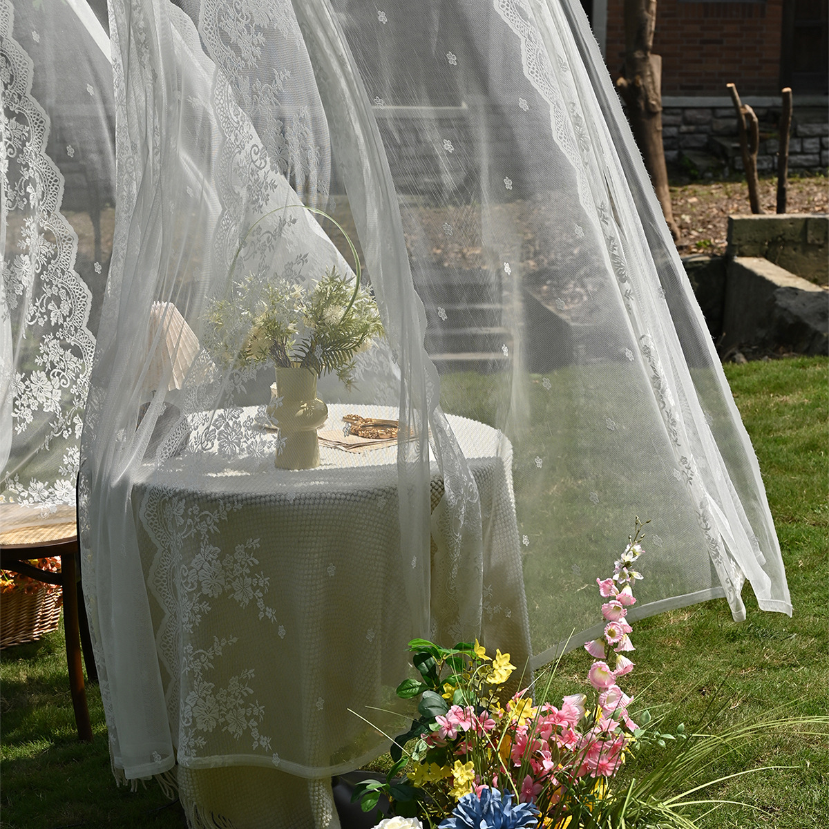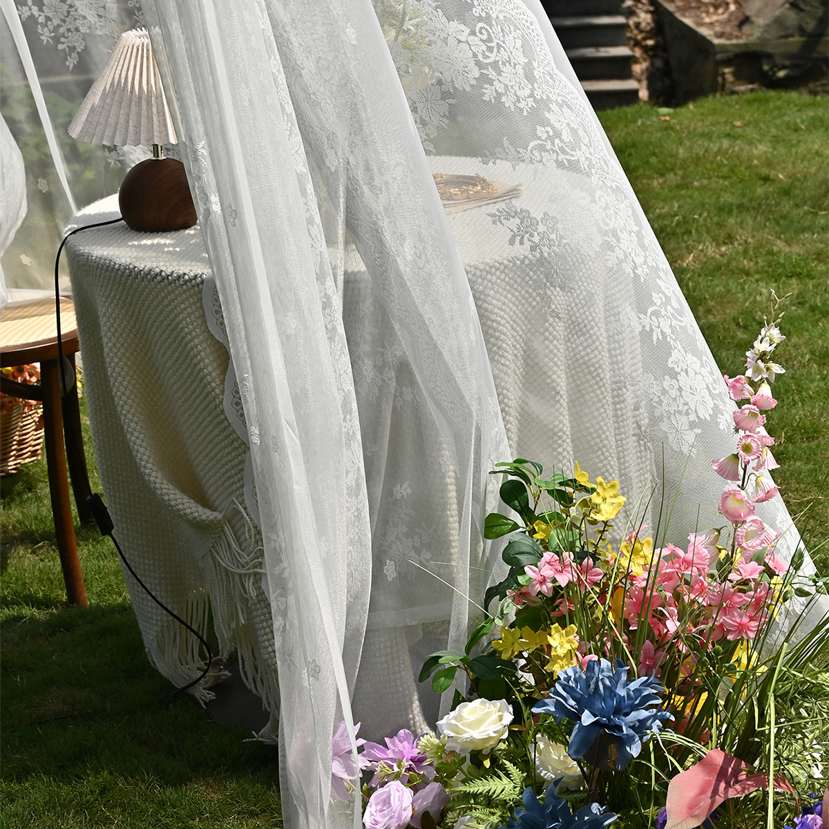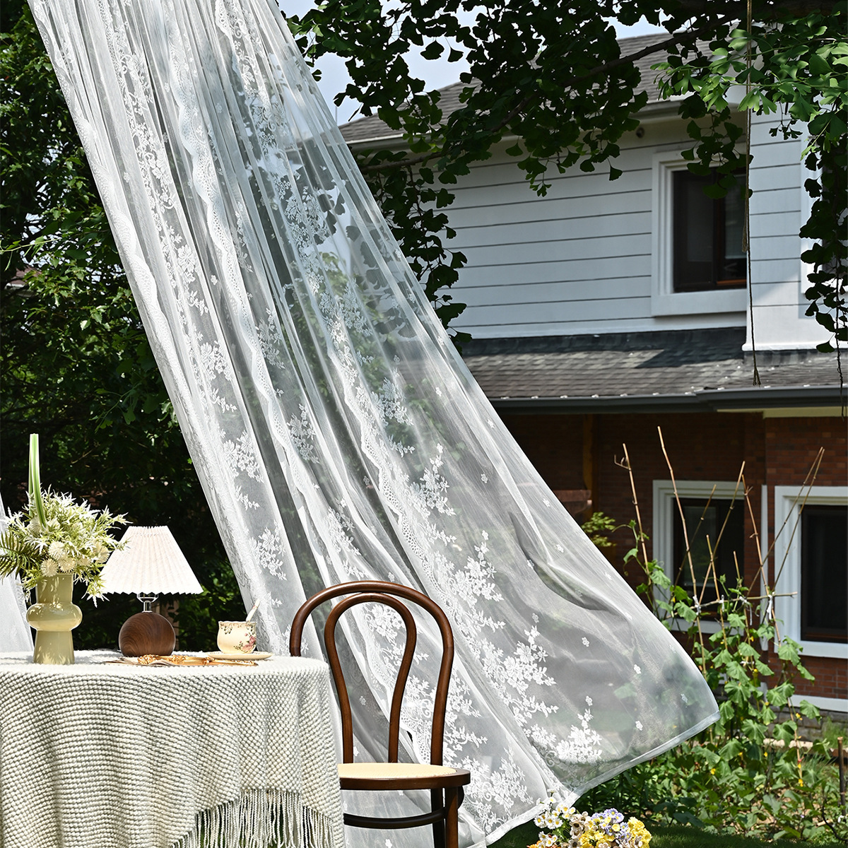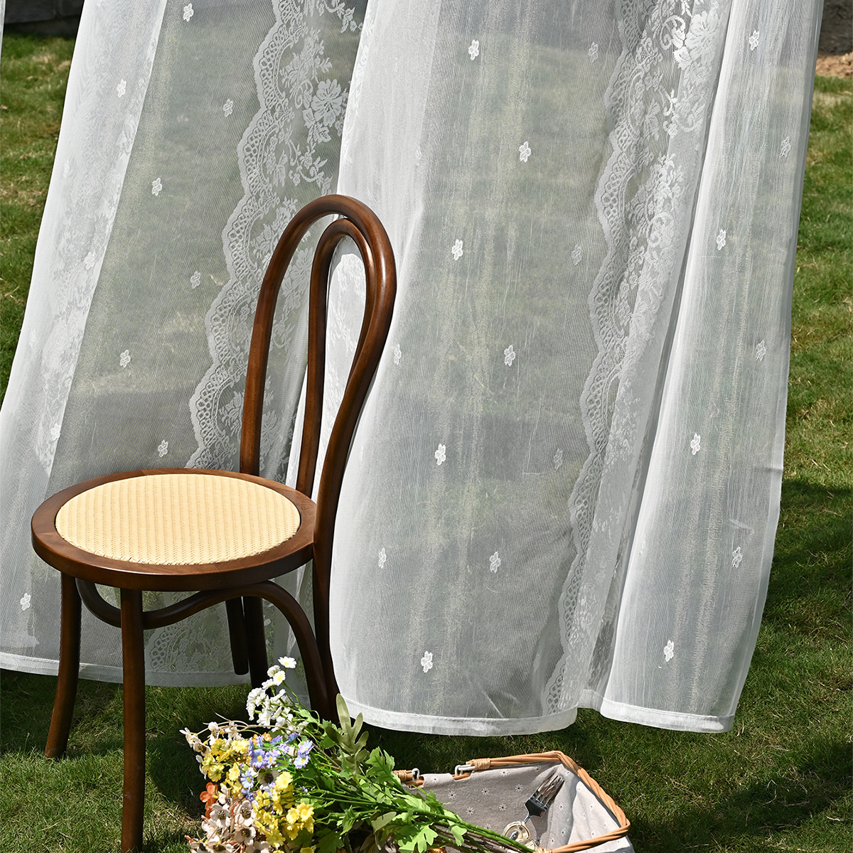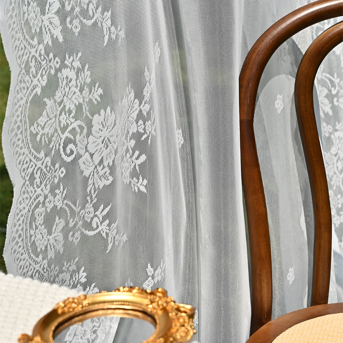 Amazon 2PC/Set Encaje por urdimbre Encaje vertical de doble fila Encaje Cortina de cortina semi-opacable al aire libre pastoral