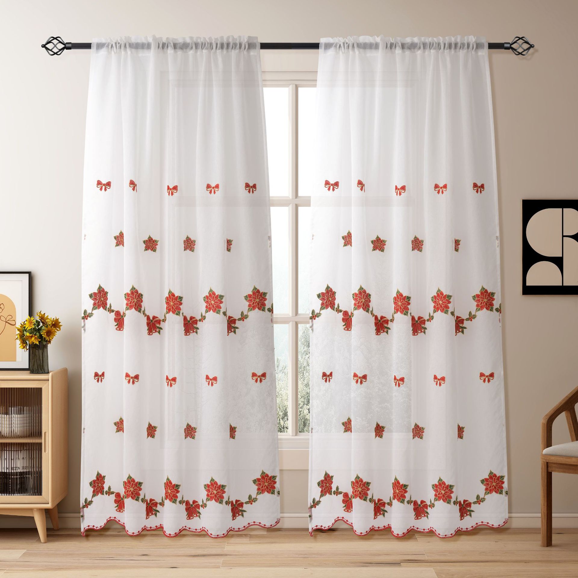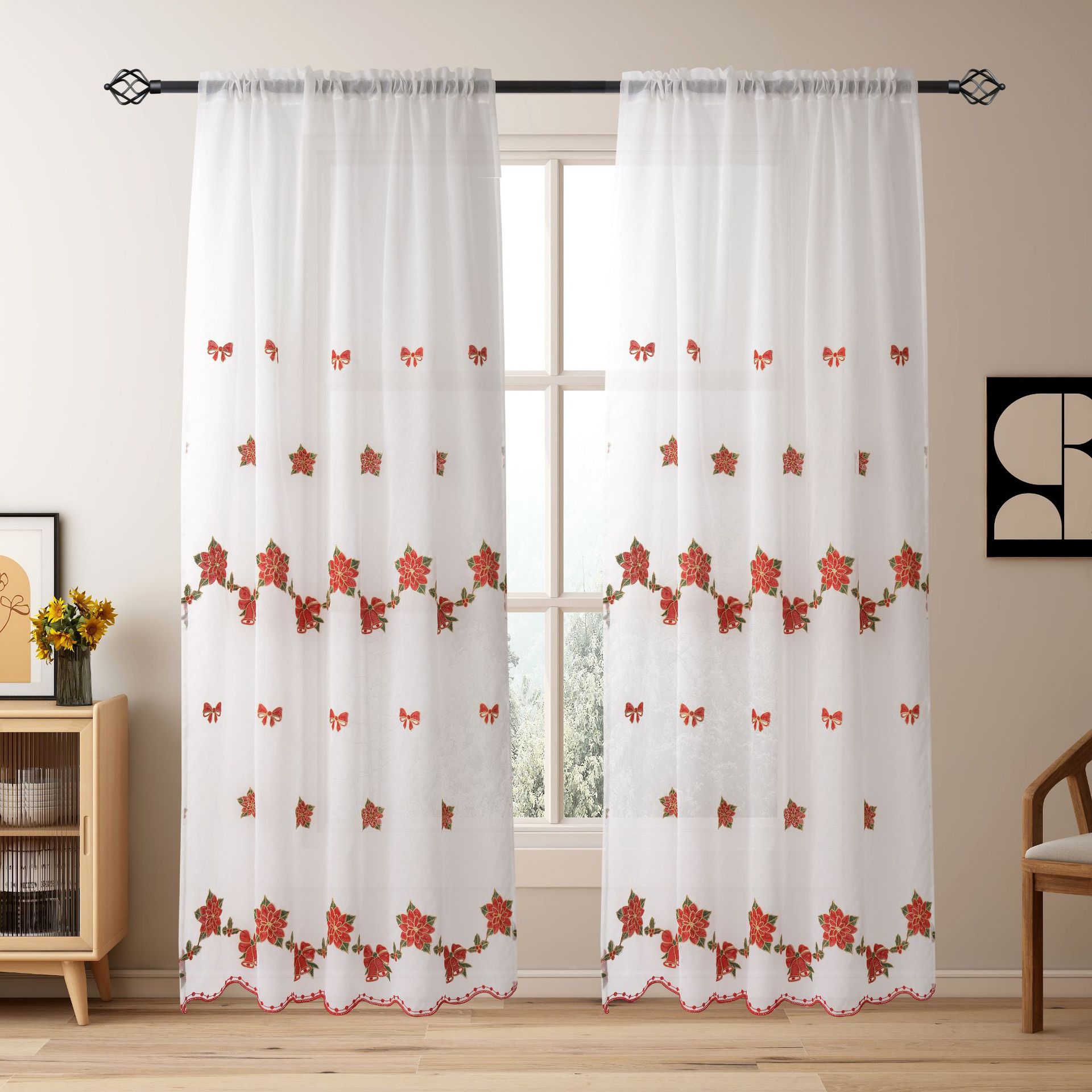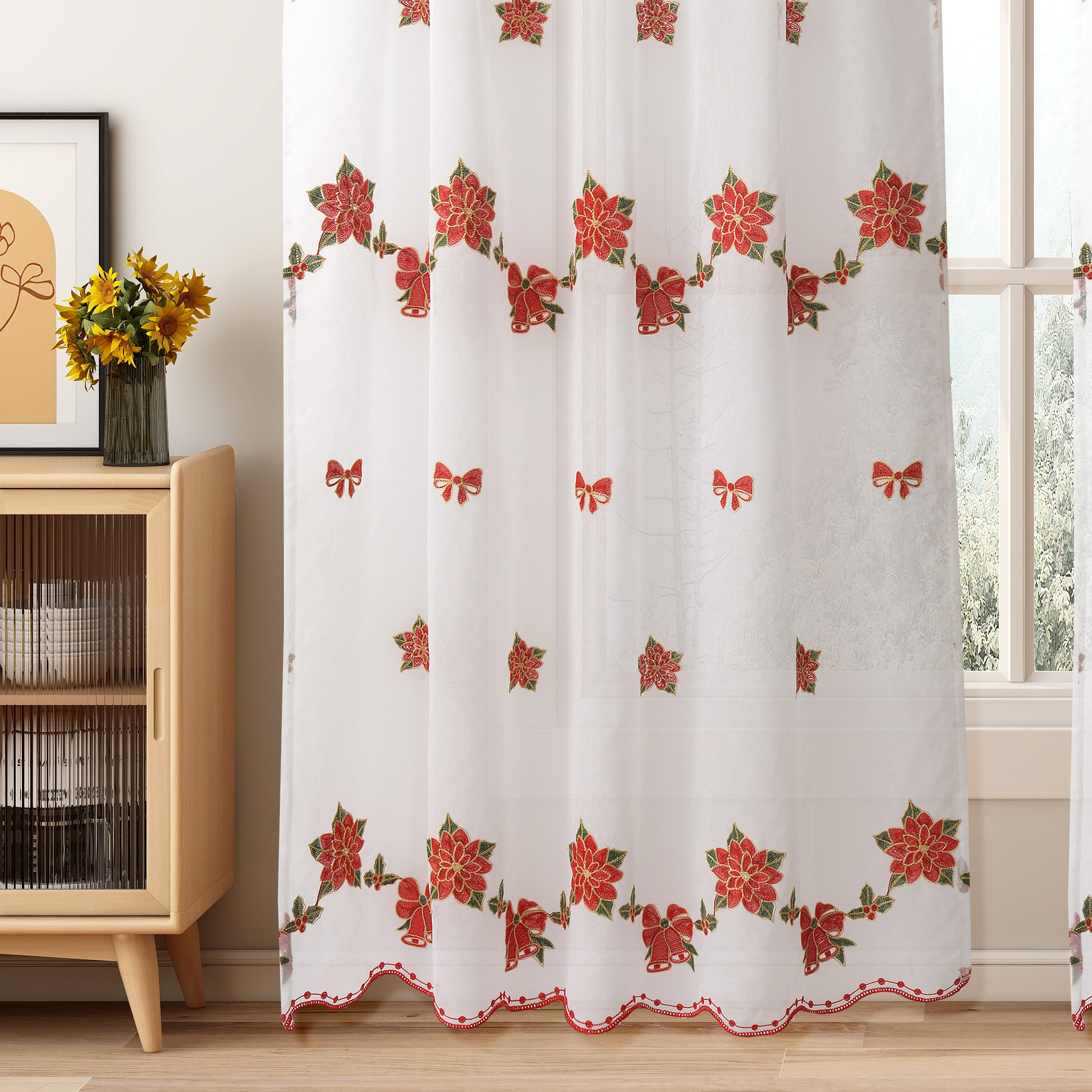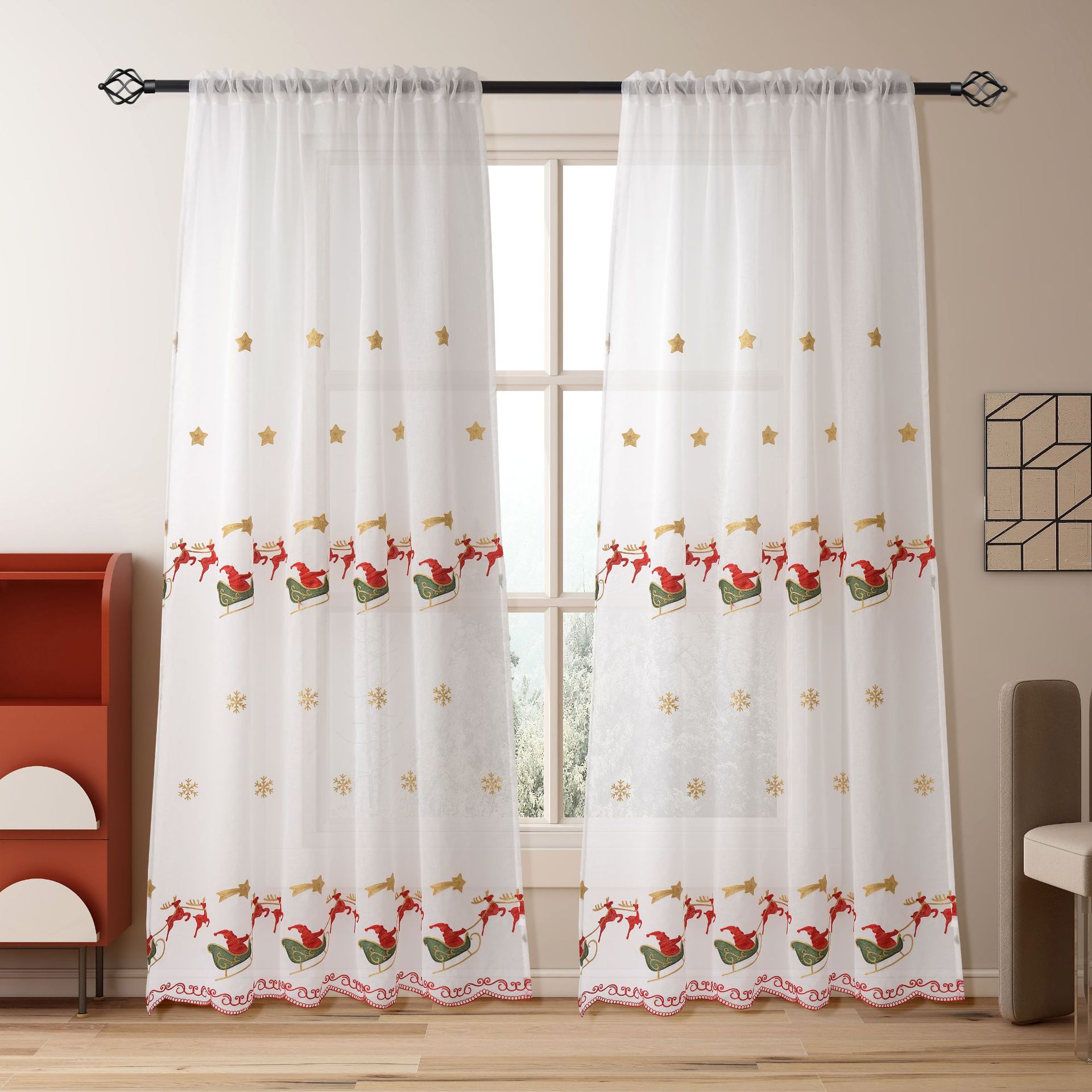 Nuevo hilo bordado de Navidad transfronterizo, cortinas de pantalla de ventana opacas, cortinas terminadas de Navidad de Amazon europeas y americanas TEMU