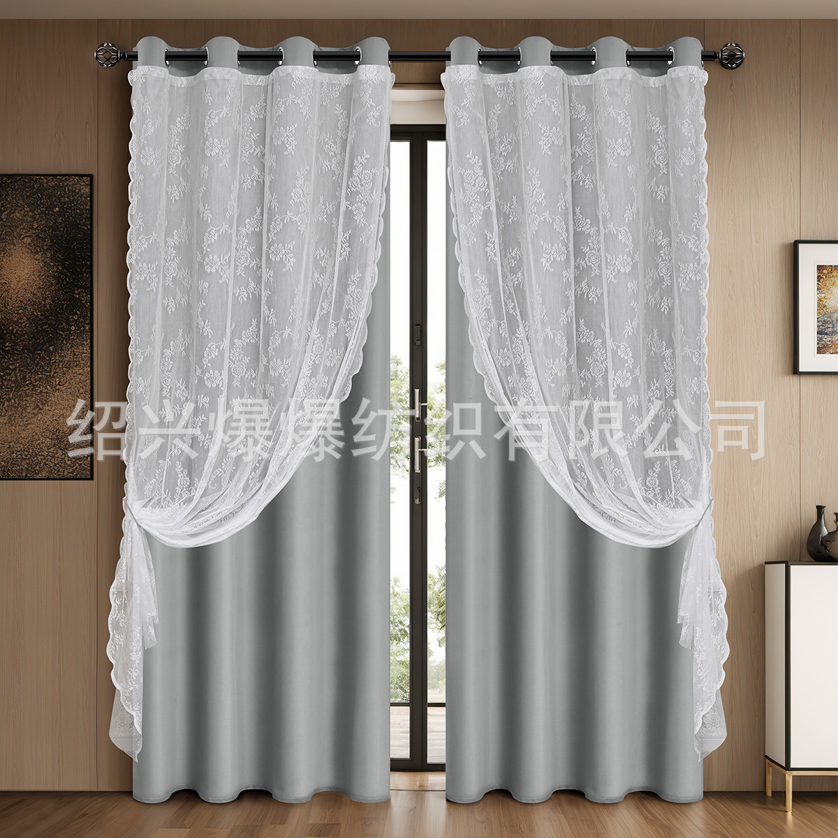 SHEIN cortinas de stock transfronterizas nuevas cortinas de encaje plano de doble capa perforadas cortinas cortinas de sombra fabricantes