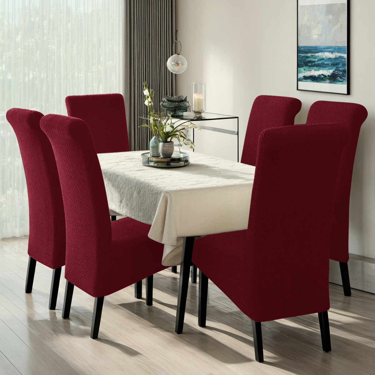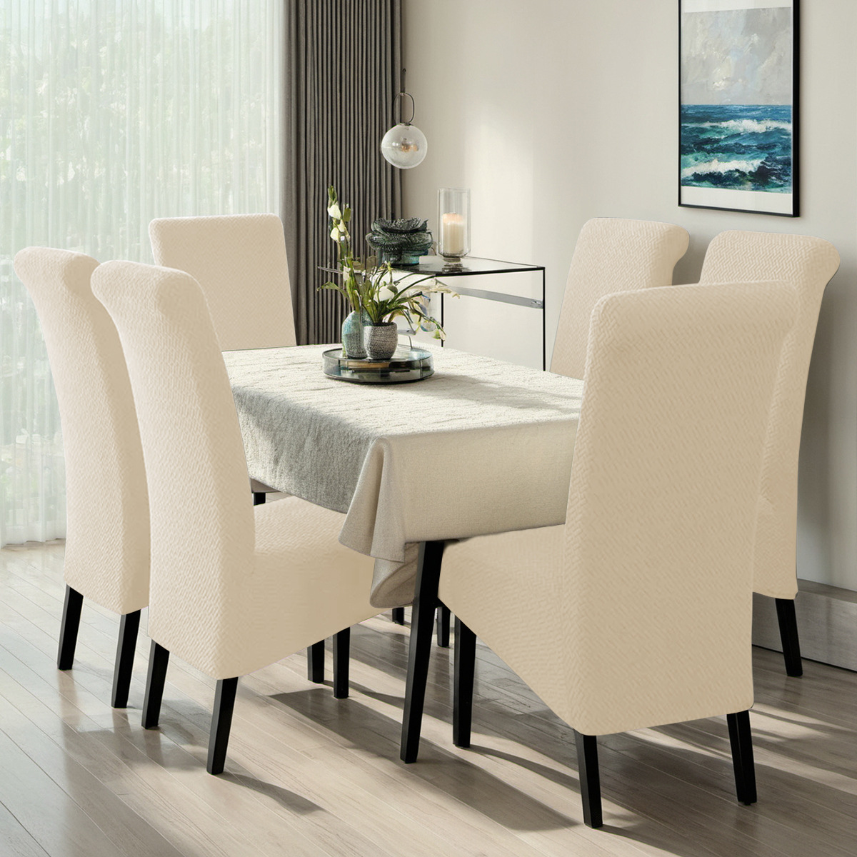 Cubierta de silla elástica en forma de T transfronteriza, cubierta de silla de respaldo alto, tabla de comedor casera grande inclinada.