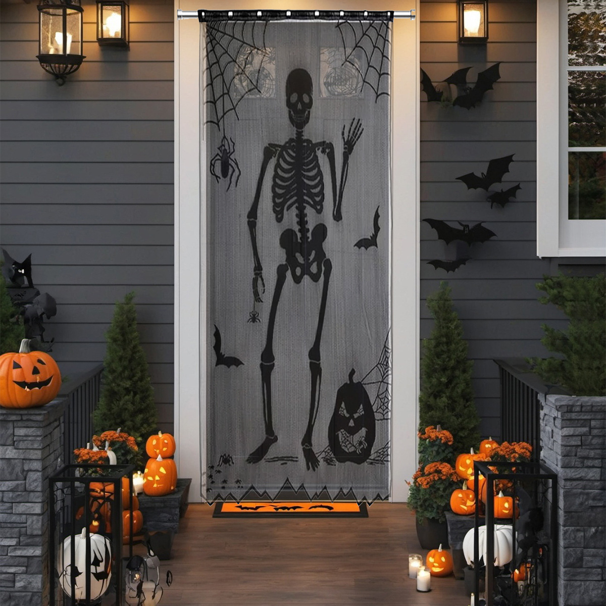 Nuevo estilo europeo y americano cortina de encaje de Halloween Amazon cortina decoración festiva TEMU en stock