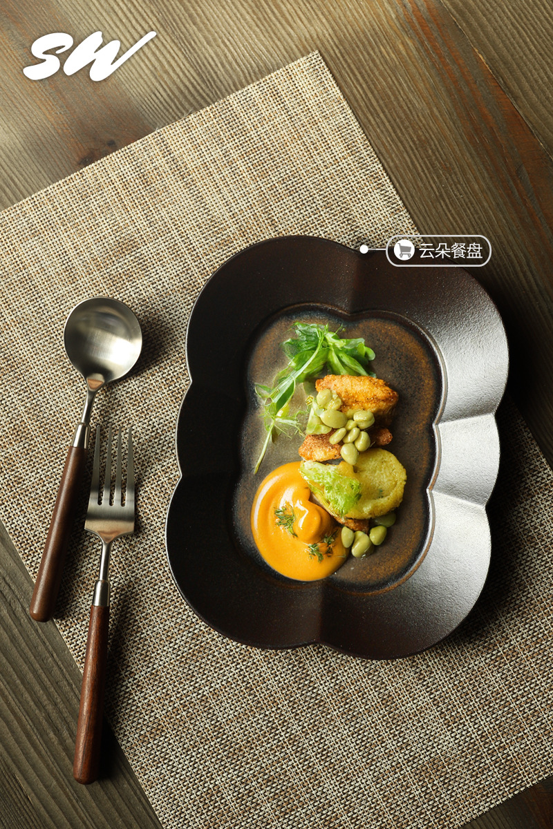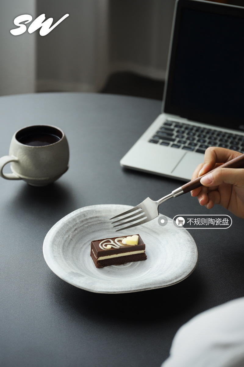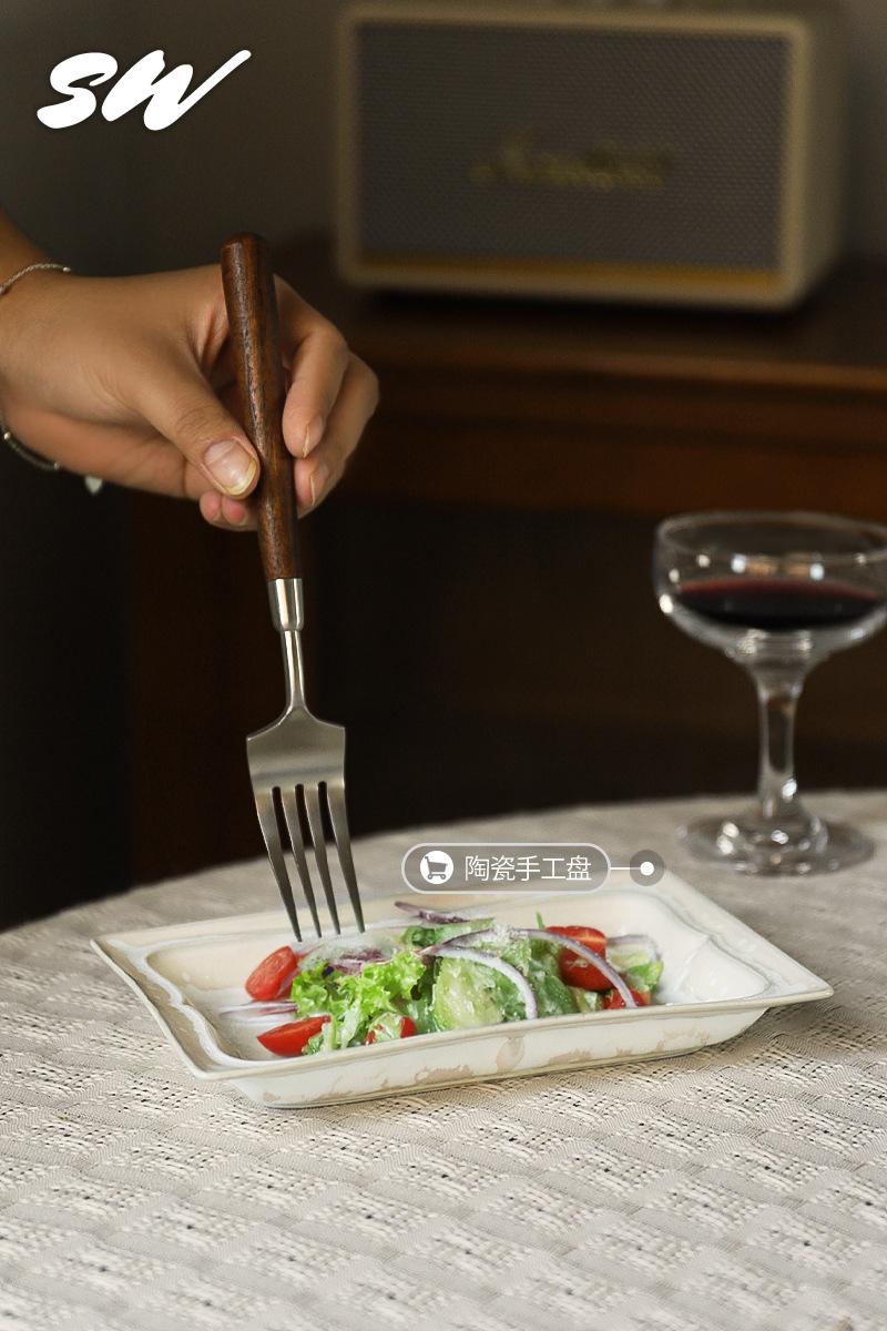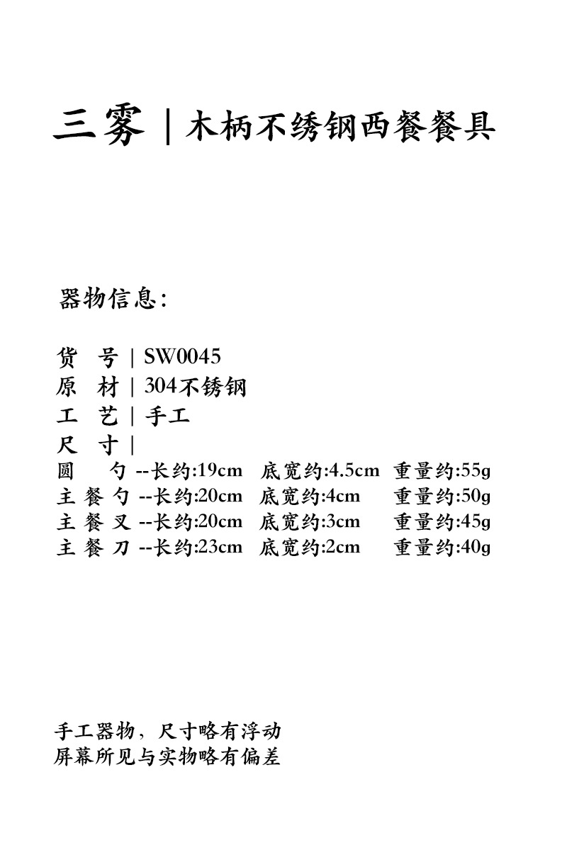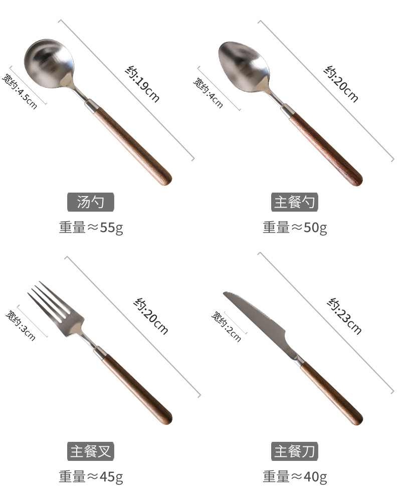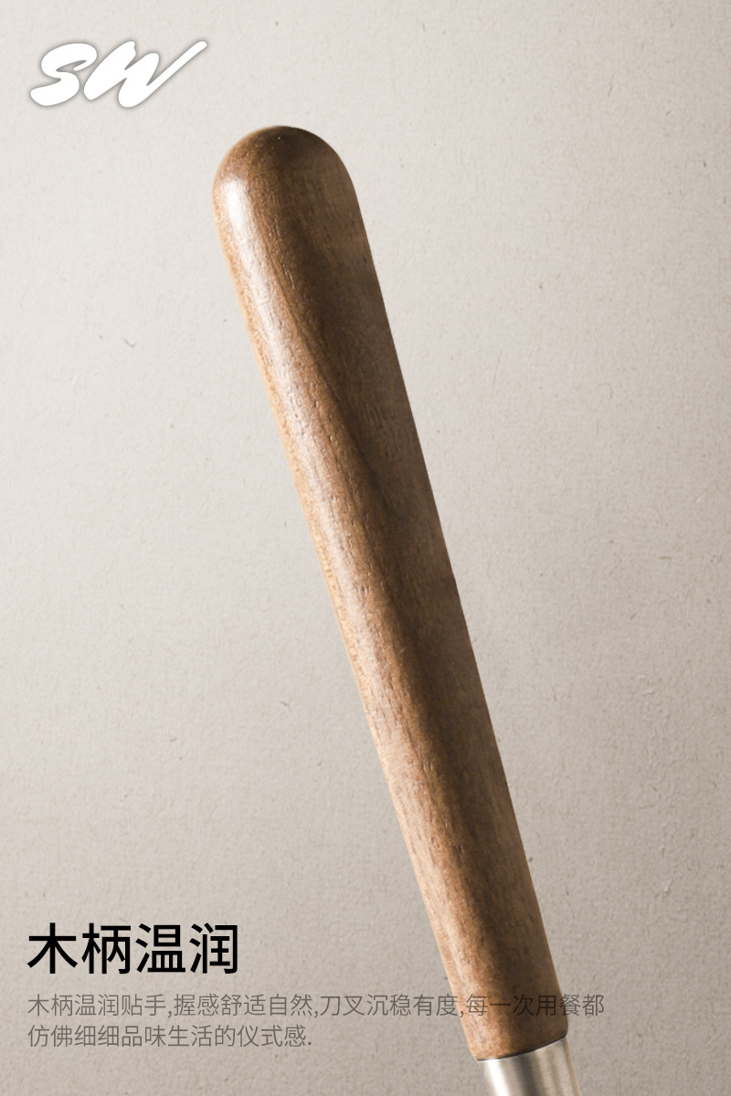 Tres nieblas retro cubiertos de madera sólida de nuez filete cuchillo y tenedor de postre cucharas de acero inoxidable cubiertos de comida occidental refinado