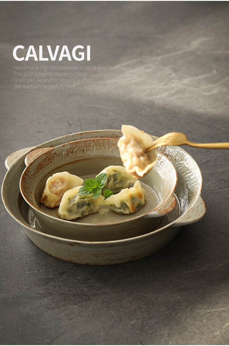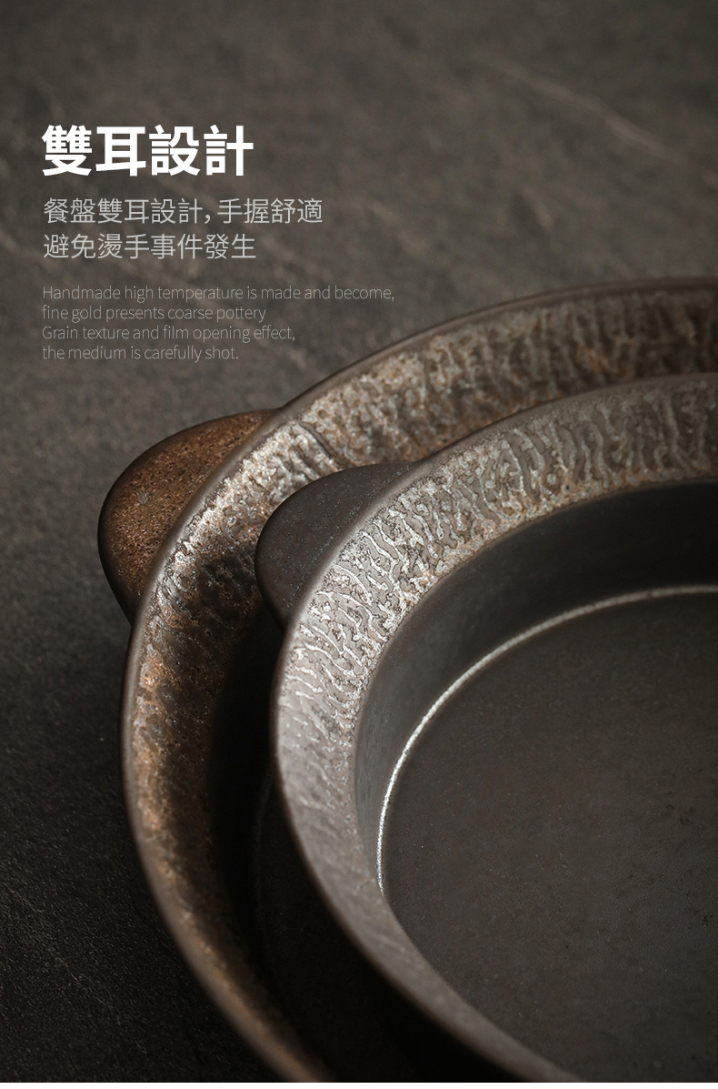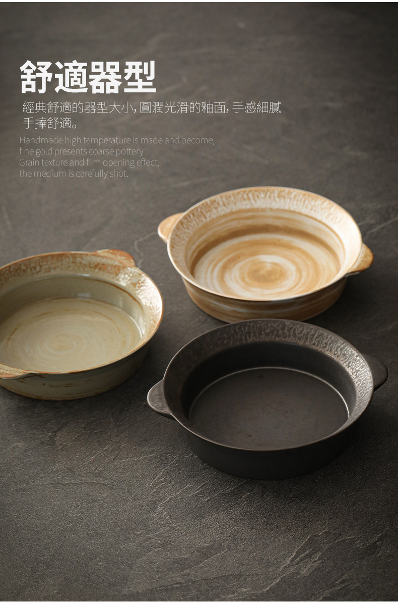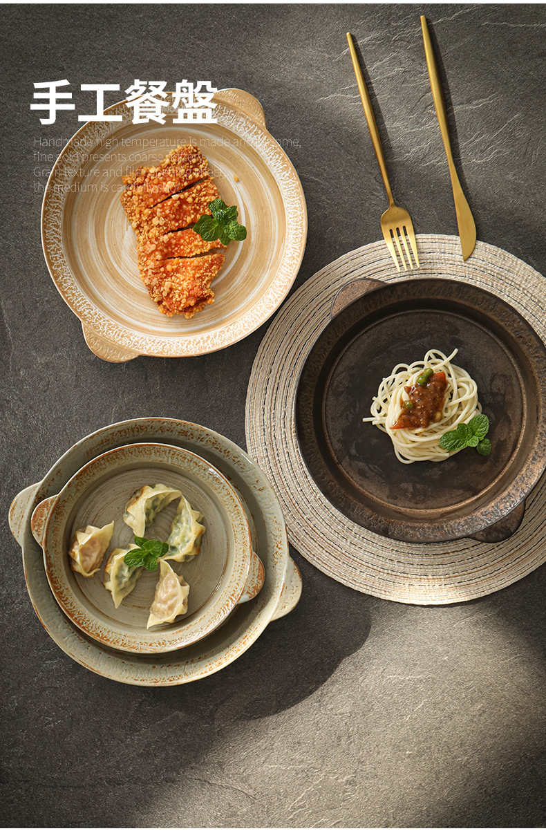 Logotipo personalizado Snacks de cerámica gruesa Plato de frutas Plato de postre Plato de oreja de gato Plato retro binaural Cerámica Kung Fu Juego de té