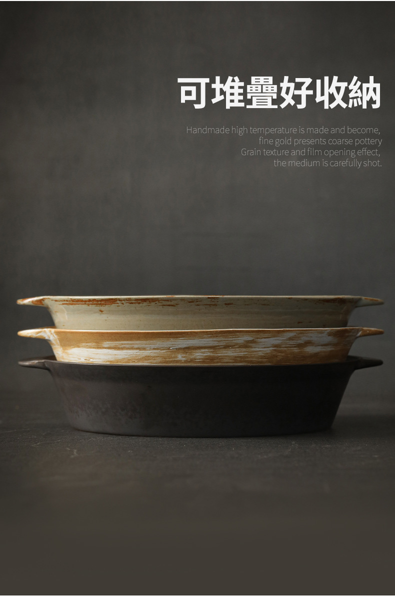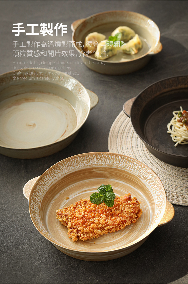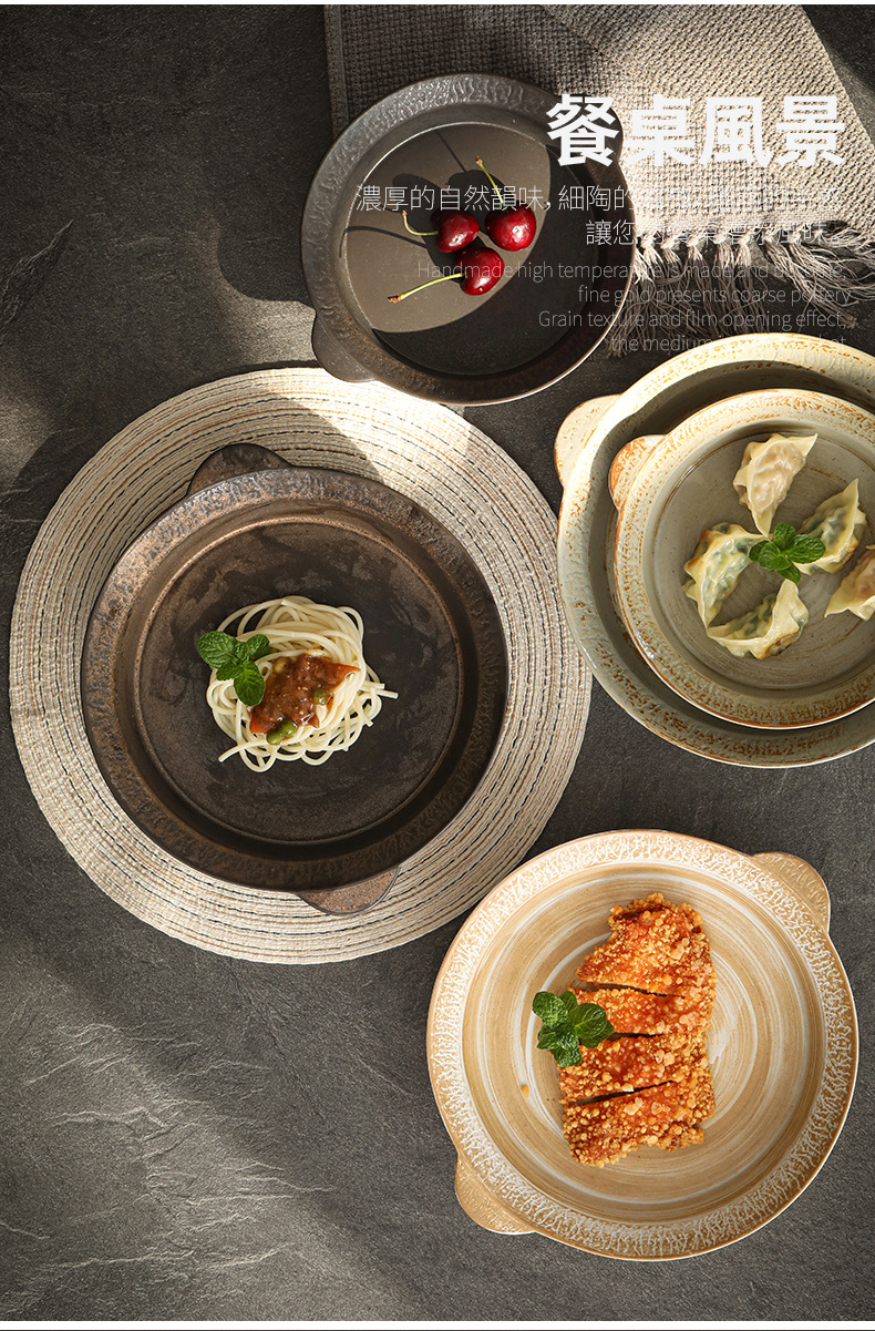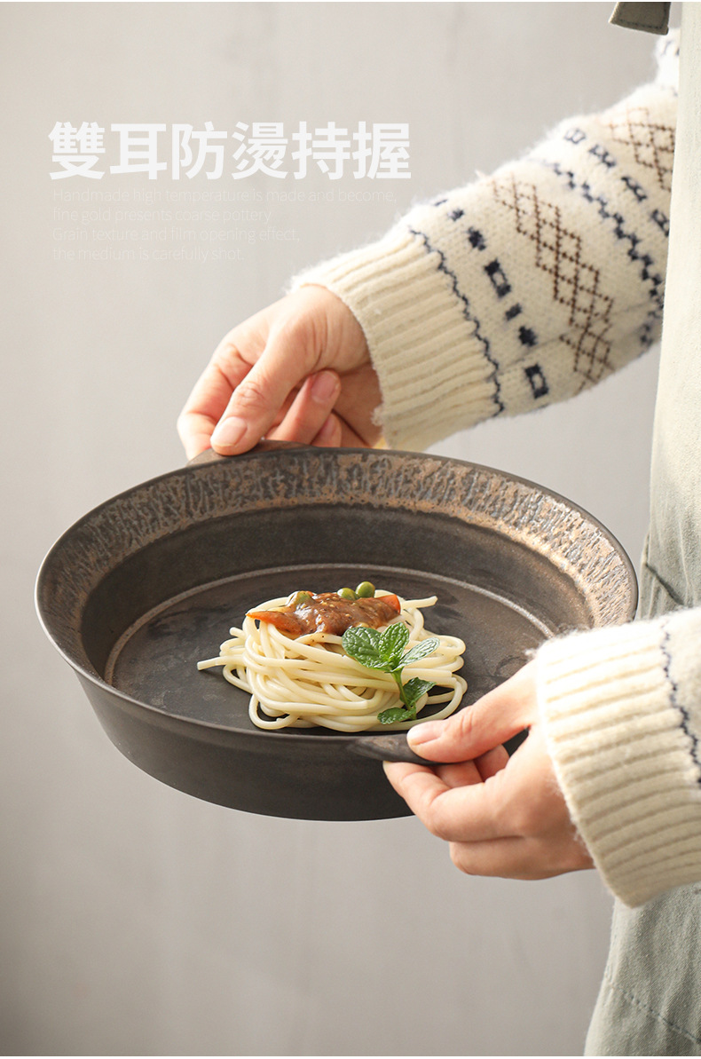 Logotipo personalizado Snacks de cerámica gruesa Plato de frutas Plato de postre Plato de oreja de gato Plato retro binaural Cerámica Kung Fu Juego de té