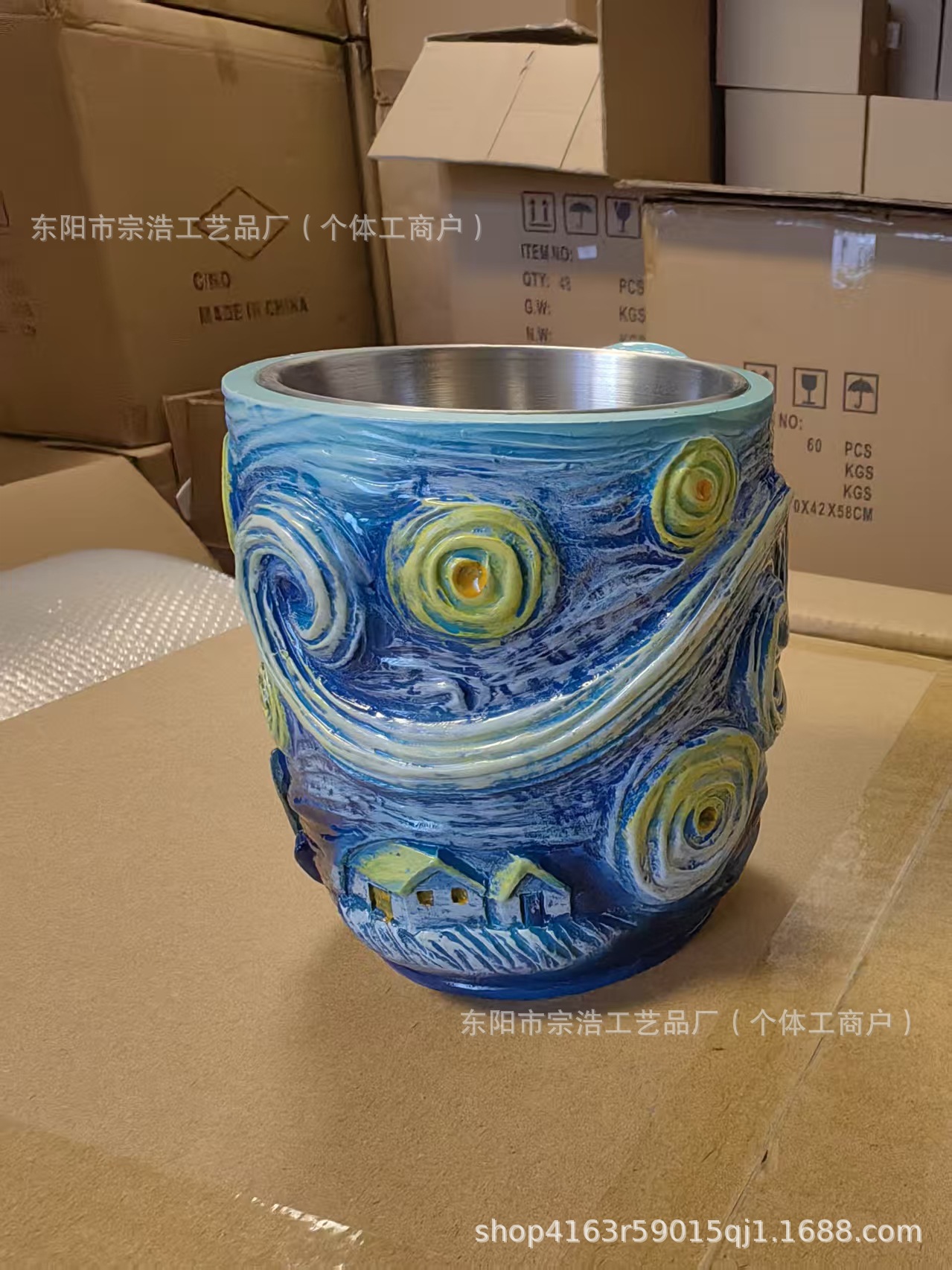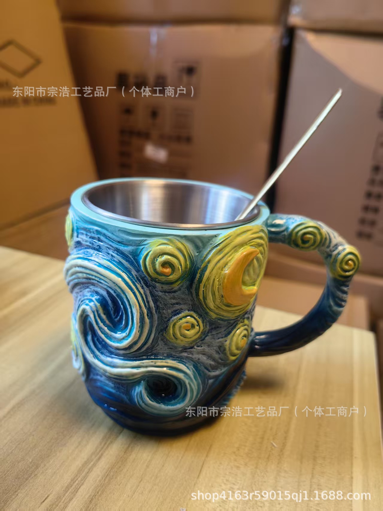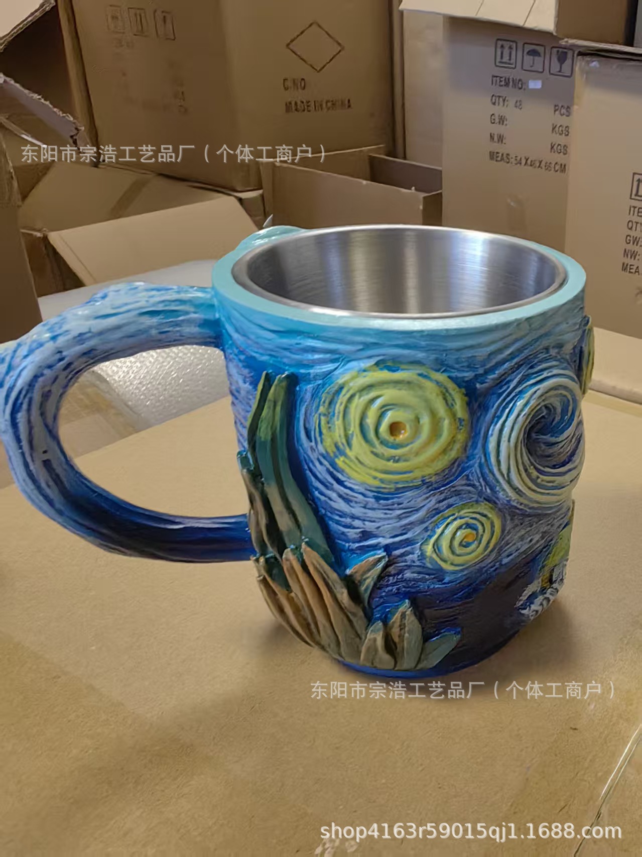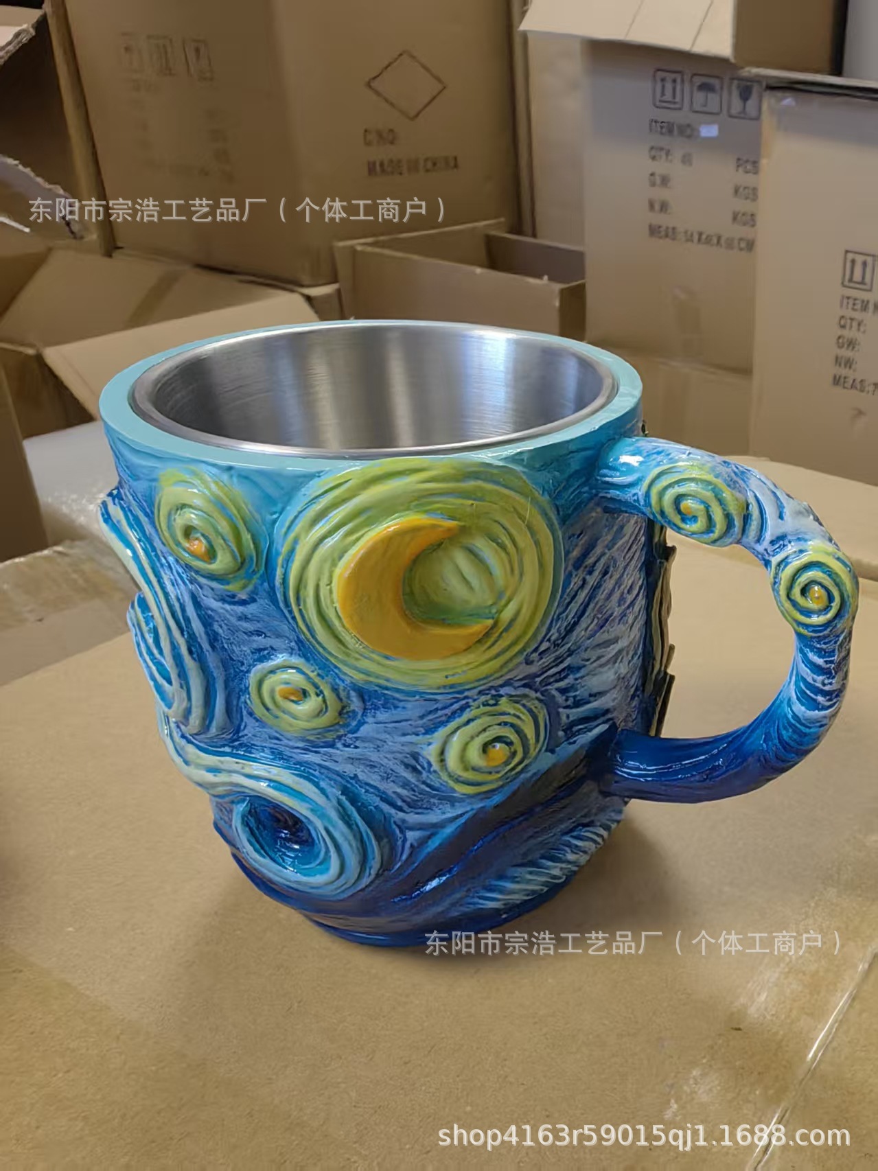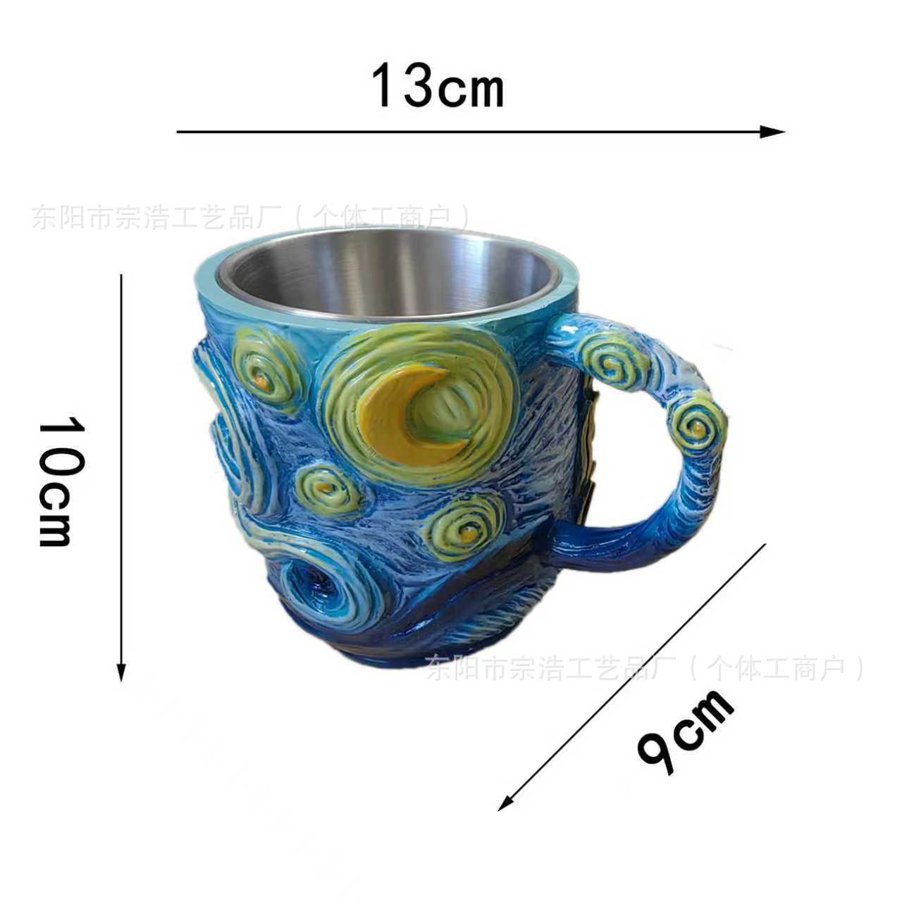 Nuevo transfronterizo pintado a mano Van Gogh taza de resina creativa estrella girasol taza de café flor de cola decoración para el hogar
