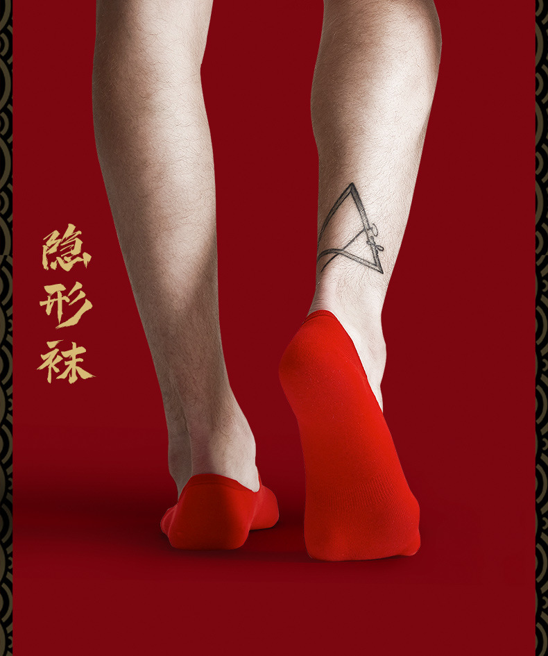 Calcetines rojos de hombre, calcetines bordadas rojas, calcetines de barco, calcetines de algodón, calcetines de pareja, calcetines de boda, calcetines de Fu