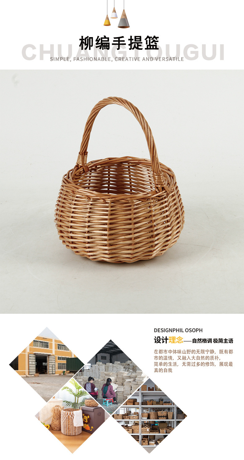 Cesta de flores de paja tejida de caña tejida azul portátil florista de boda bolsa de flores secas tejida a mano cestas de embalaje al por mayor maceta de flores