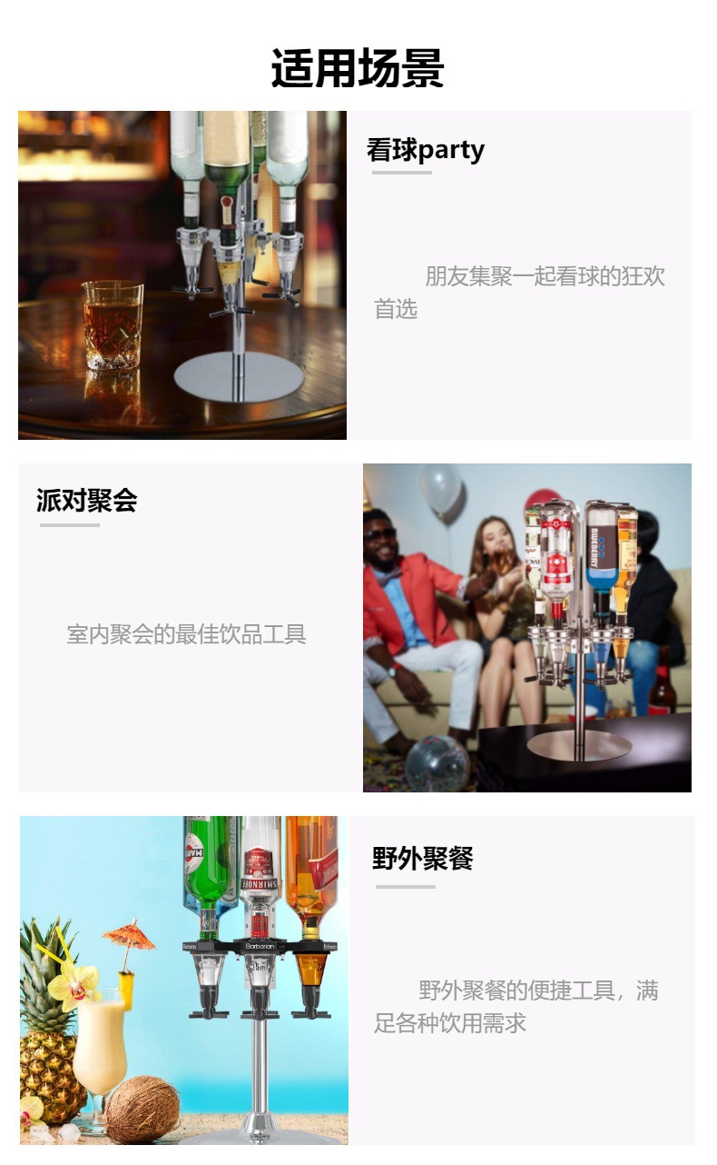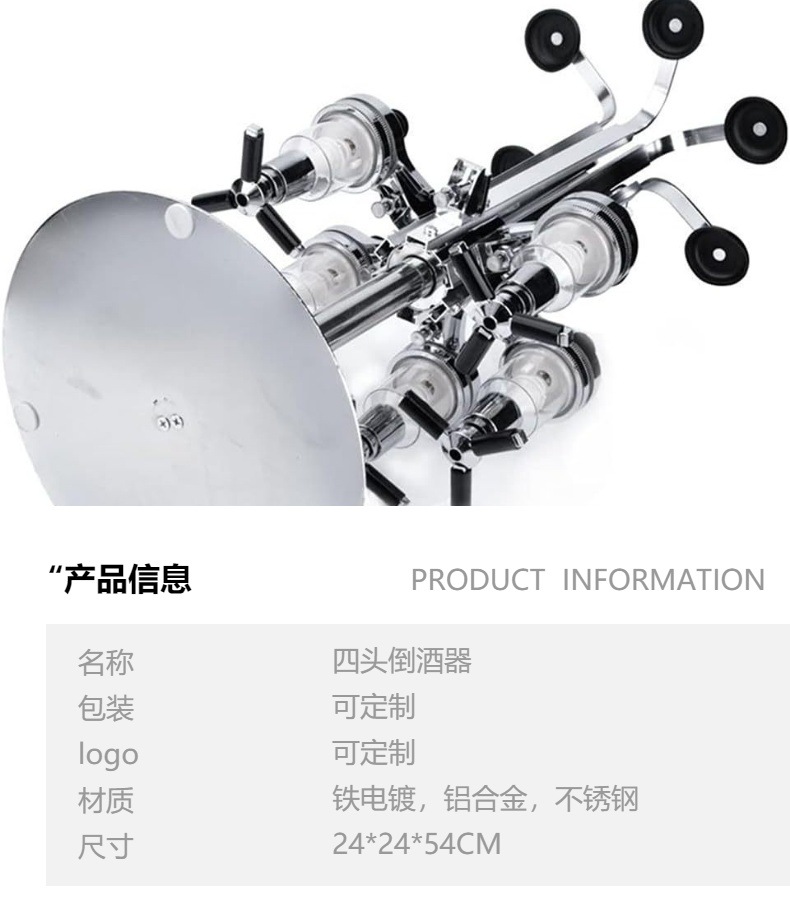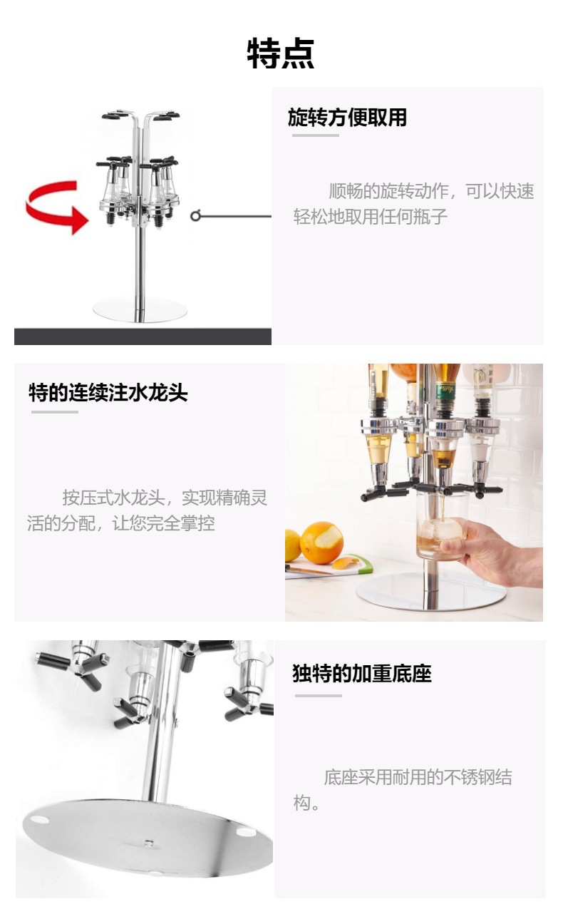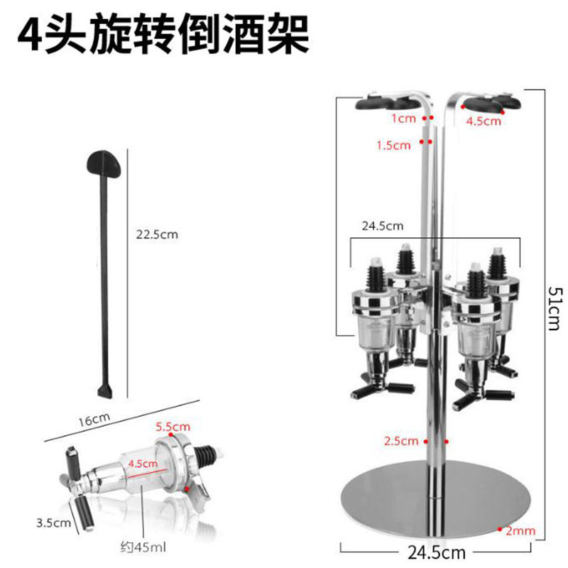 Dispartidor de vino tinto de cuatro extremos, estante de vertido giratorio de vino de cuatro extremos, dispensador cuantitativo de vino de cuatro extremos, herramienta de mezcla de cóctel giratoria