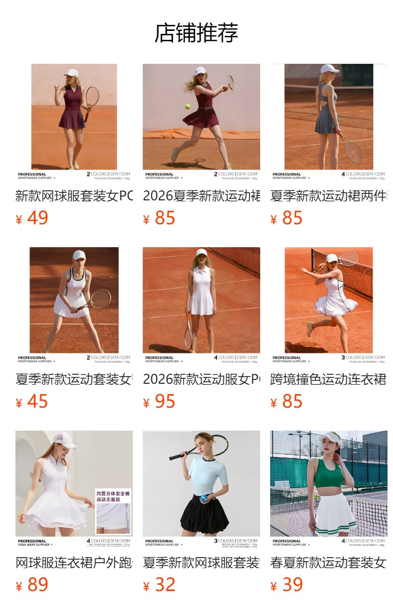 2026 verano transfronterizo nuevo vestido deportivo cojín de pecho anti-luz golf bádminton tenis vestido