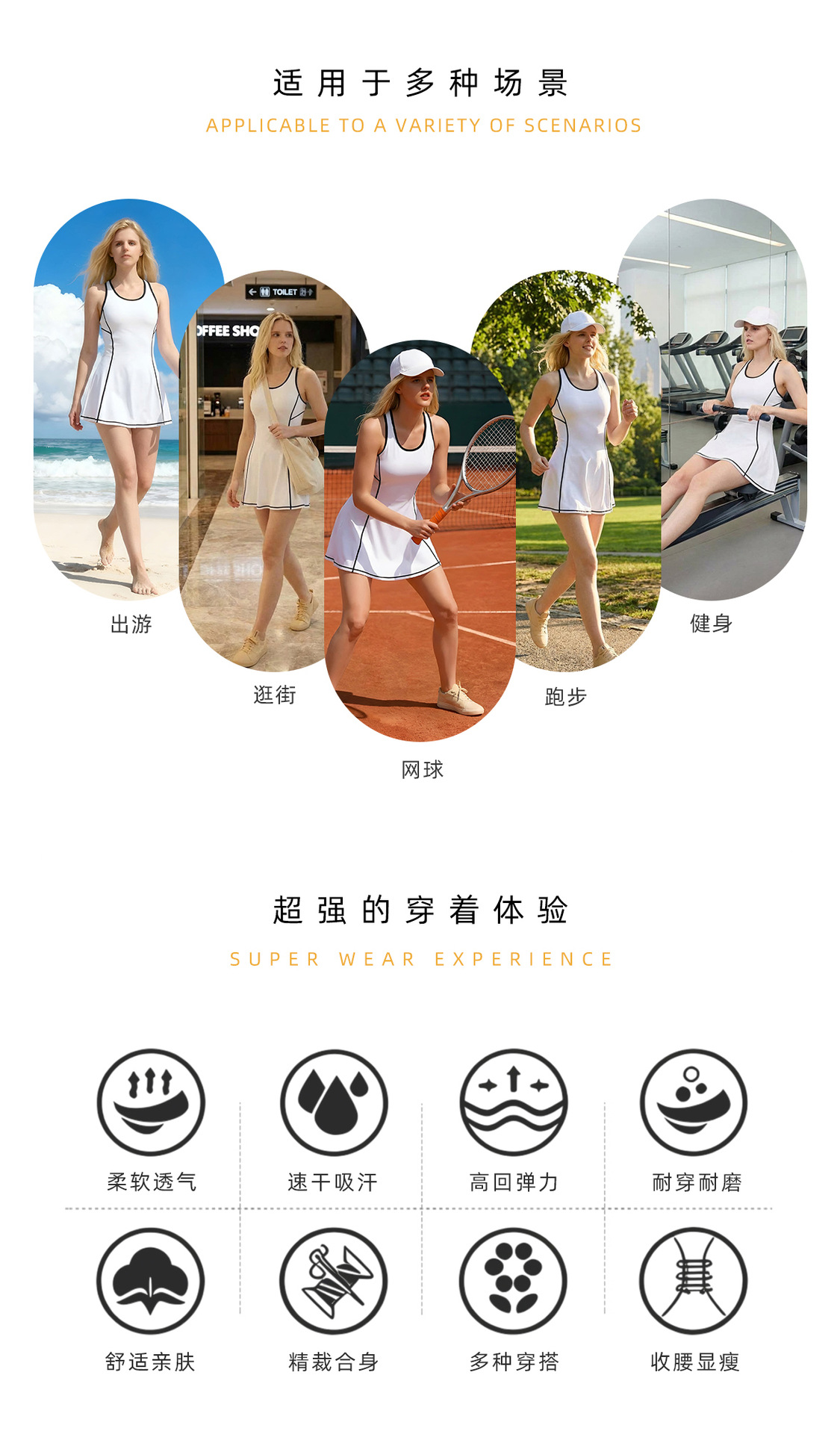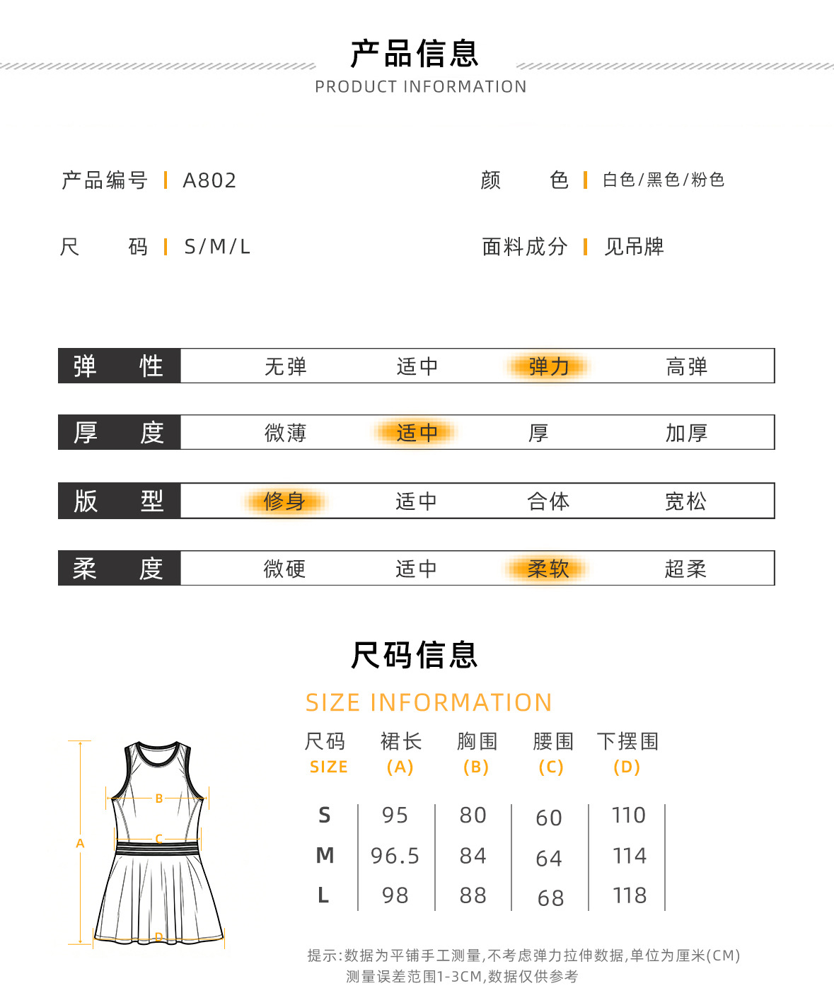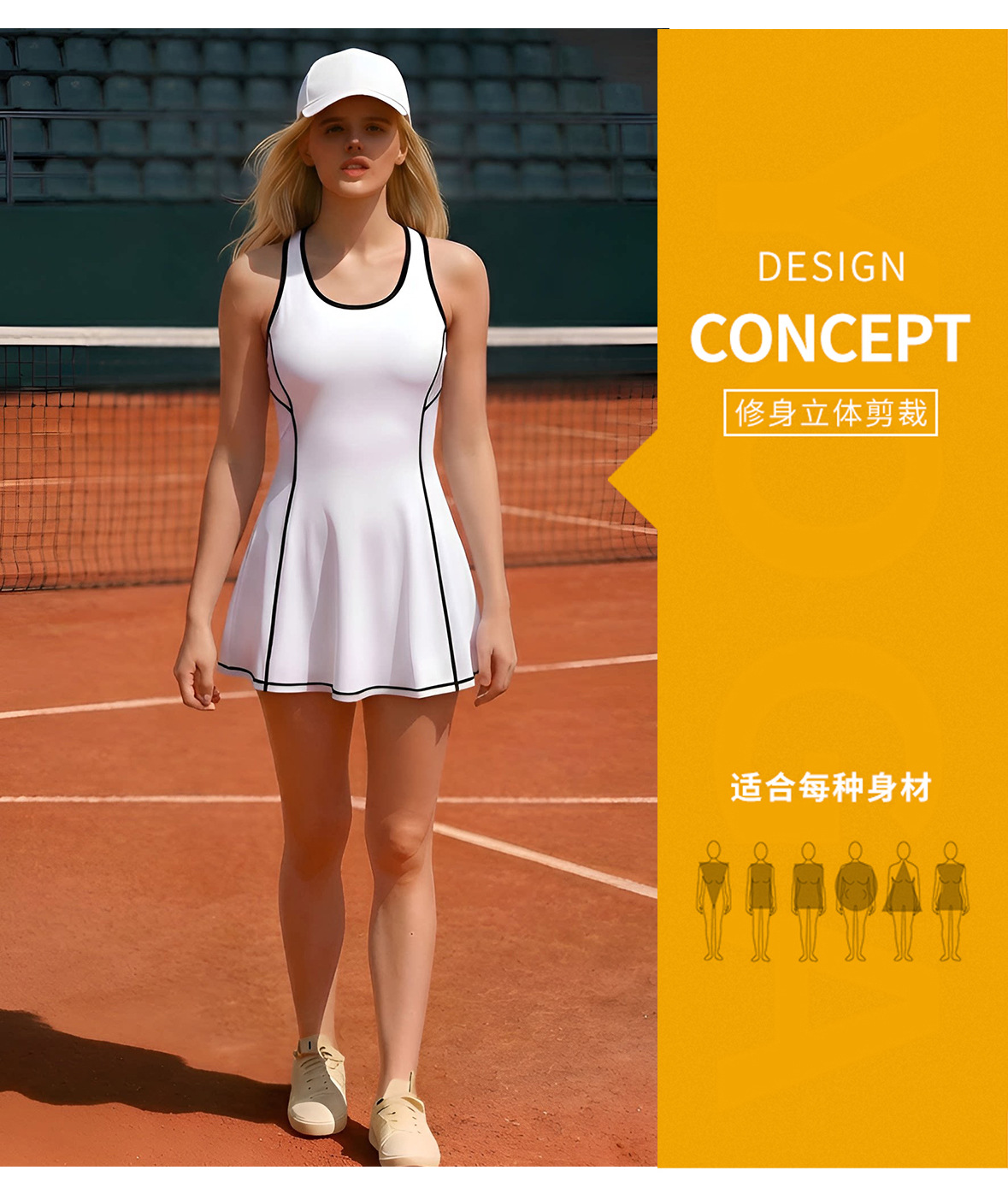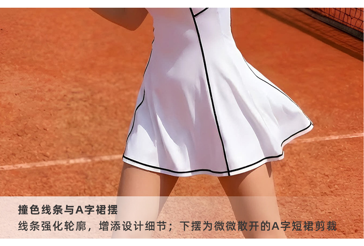 Vestido deportivo de color transfronterizo de verano sin mangas en forma de I cintura delgada A falda de tenis de golf