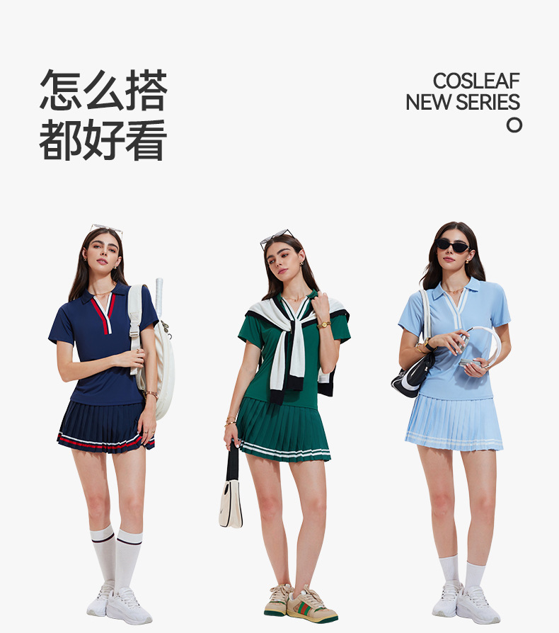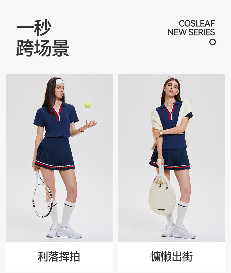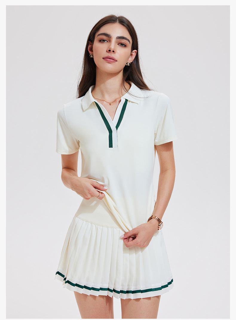 Trajes deportivos transfronterizos con solapa en V, mangas cortas falsas de dos piezas, falda corta, tenis de verano, ropa de ejercicio de secado rápido