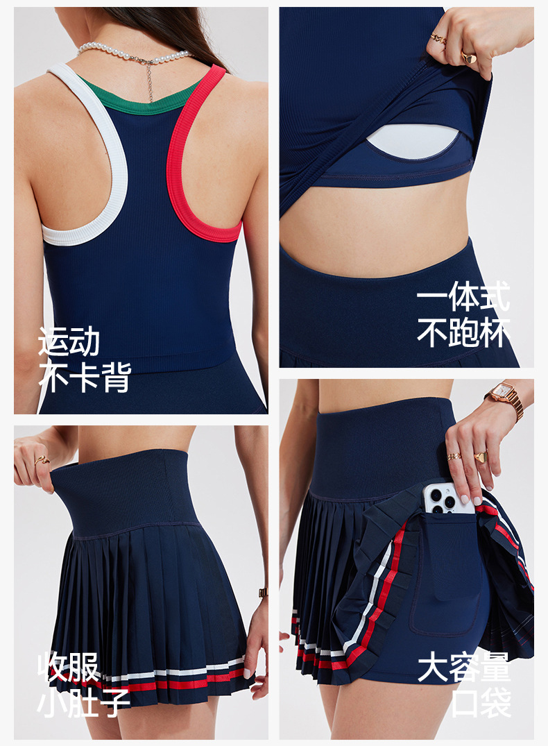 Nuevo conjunto de ropa de tenis de moda en una sola pieza de chaleco chaleco de tensión de color contraste ropa deportiva de yoga al por mayor