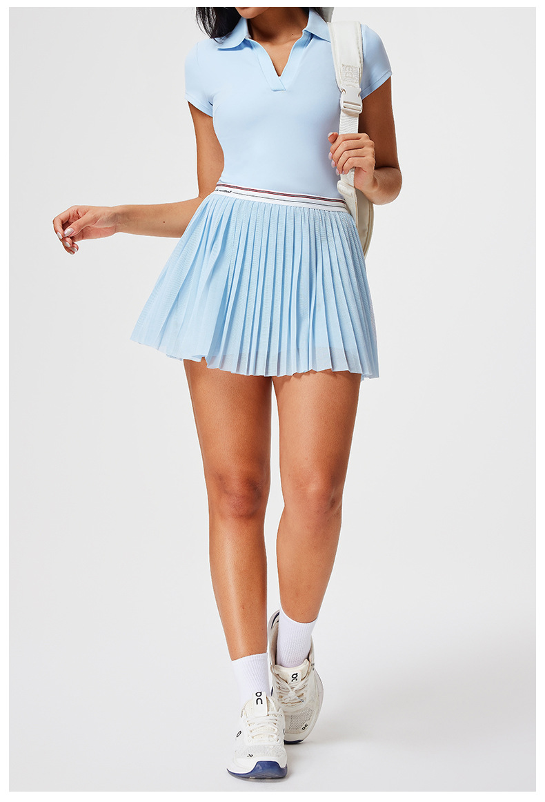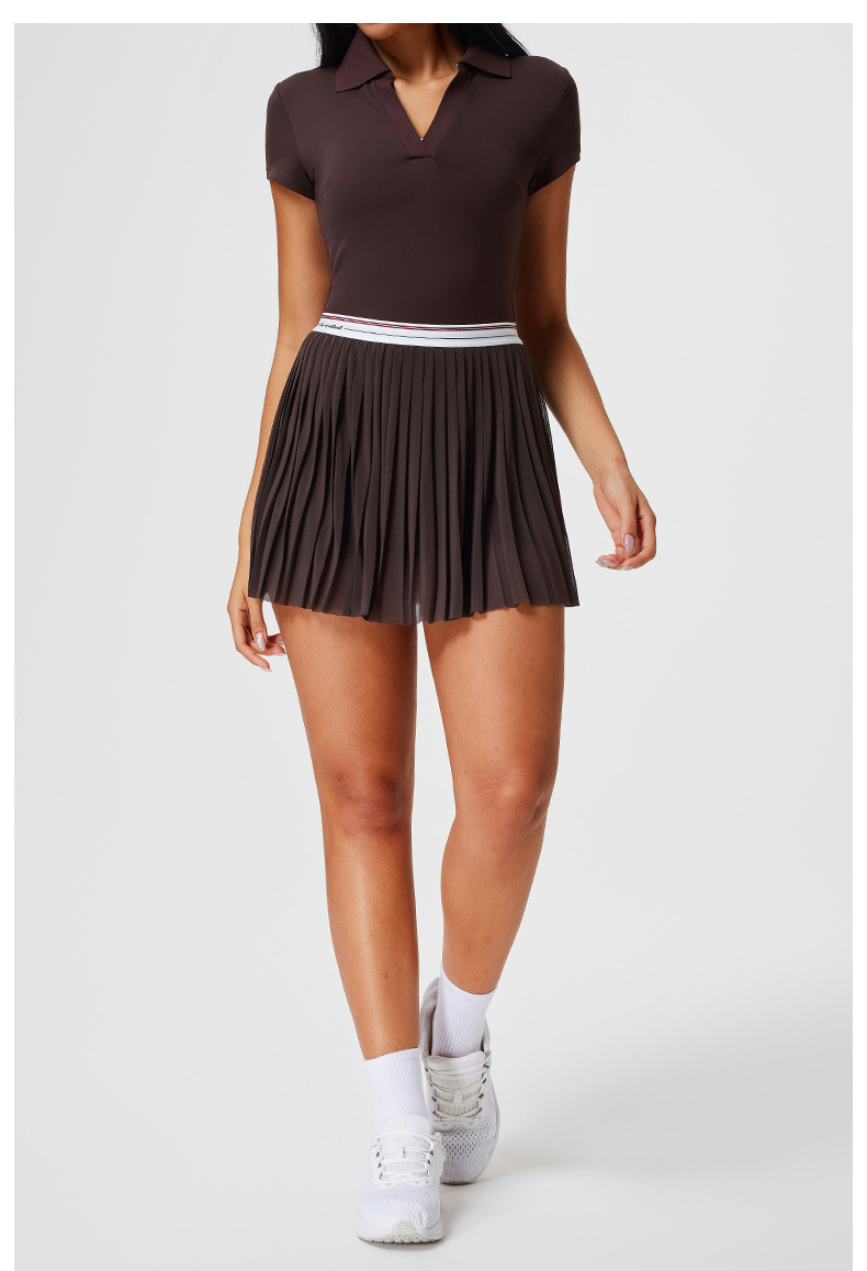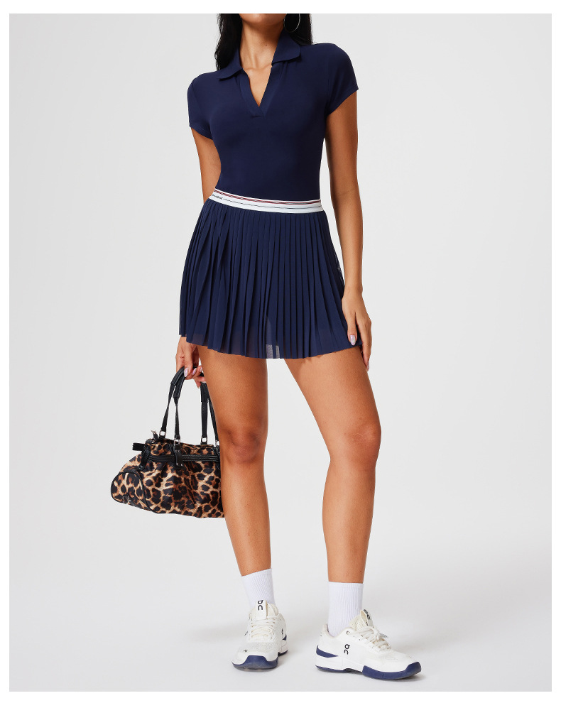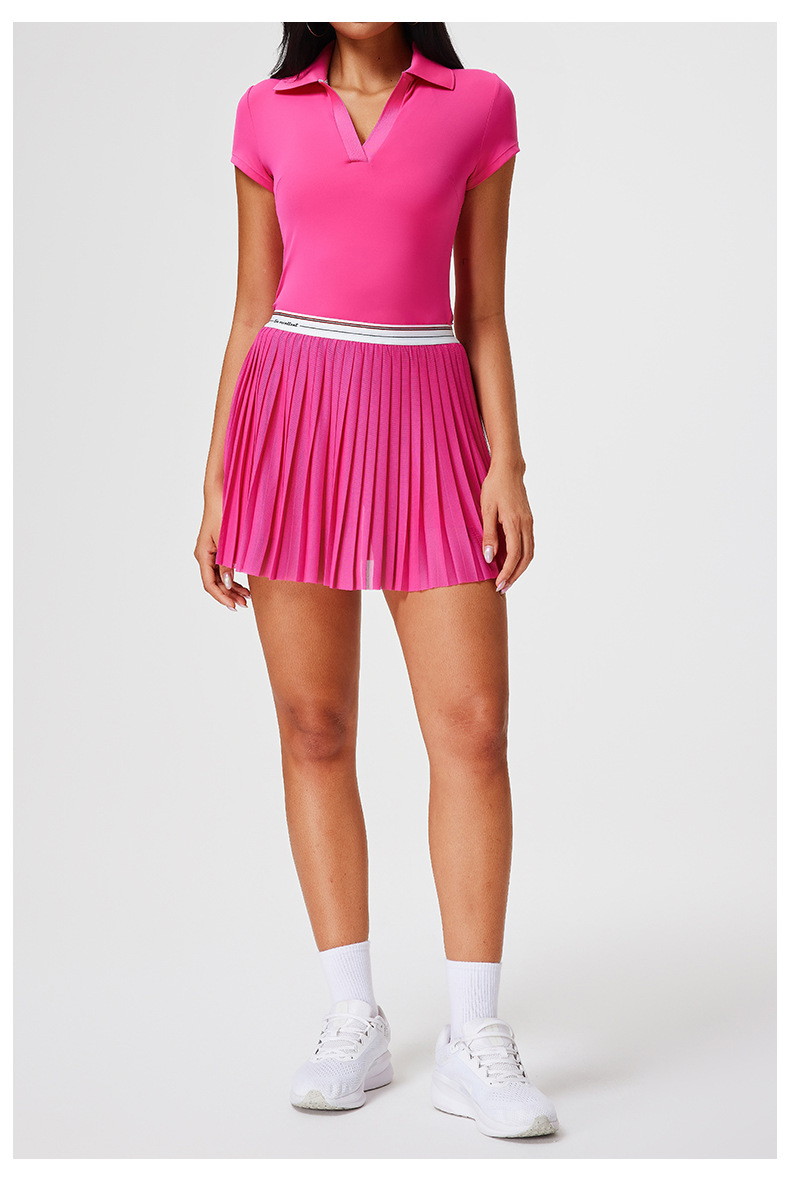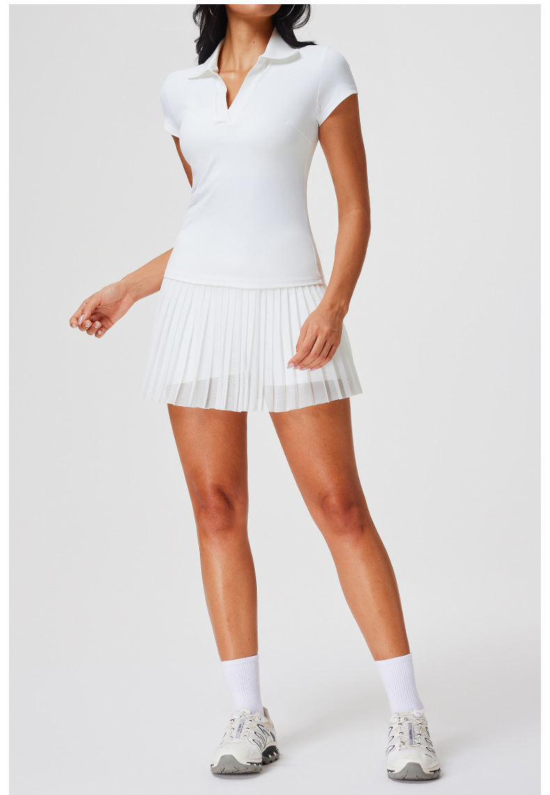 Traje deportivo transfronterizo, ropa de secado rápido para mujer, solapa con cuello en V, pantalones de falda delgada de manga corta, ropa de tenis de temperamento de verano