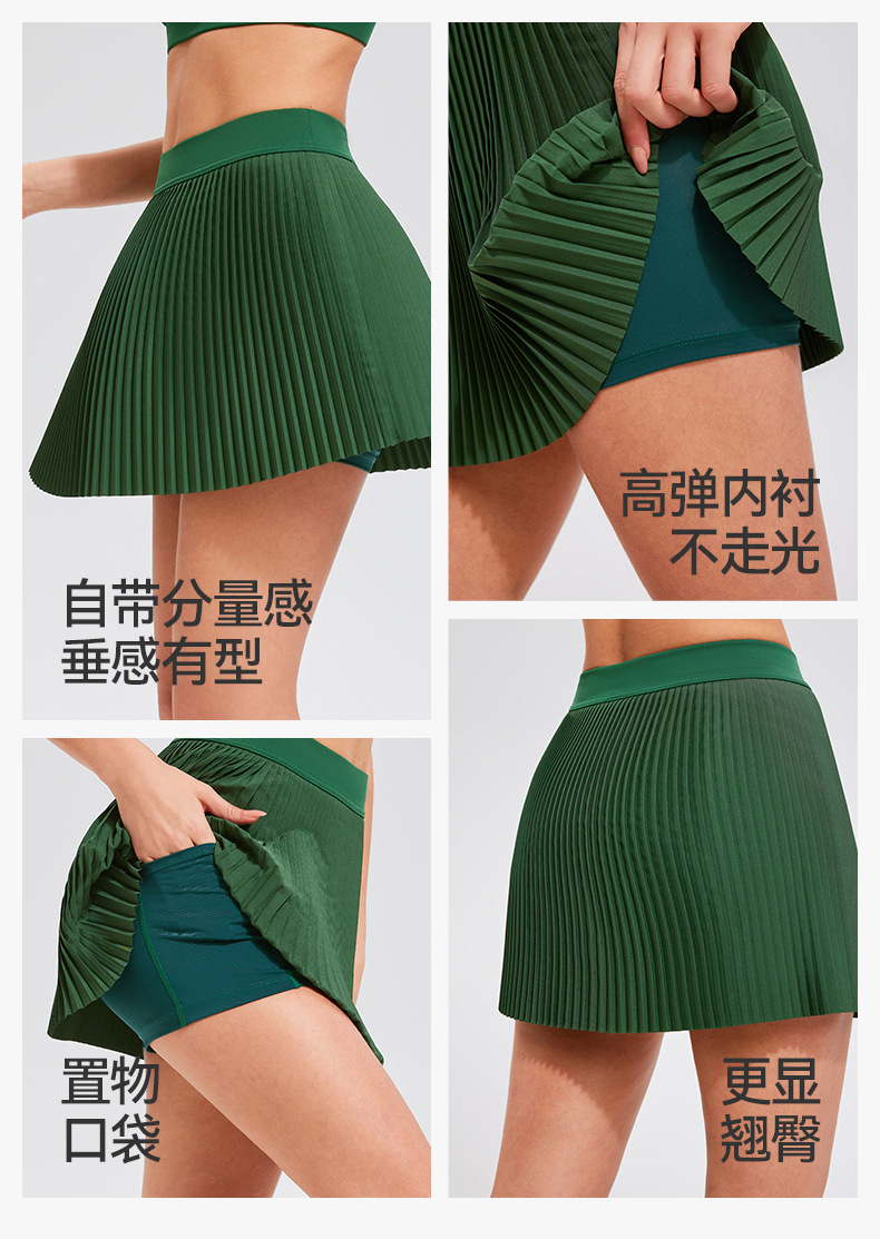 Pantalones de falda de moda de verano, ocio al aire libre, forro de seguridad todo fósforo, falda deportiva de tenis de secado rápido plisado antideslumbrante
